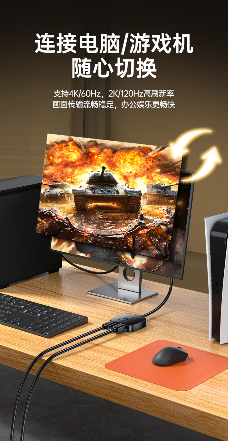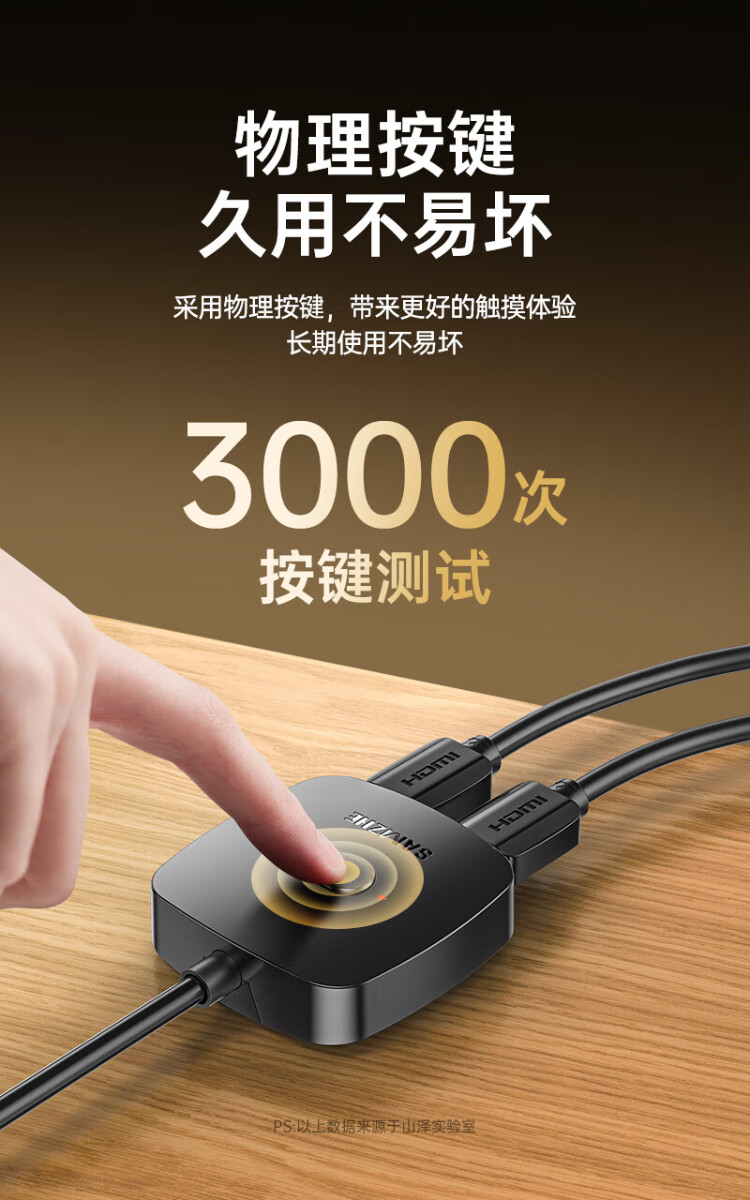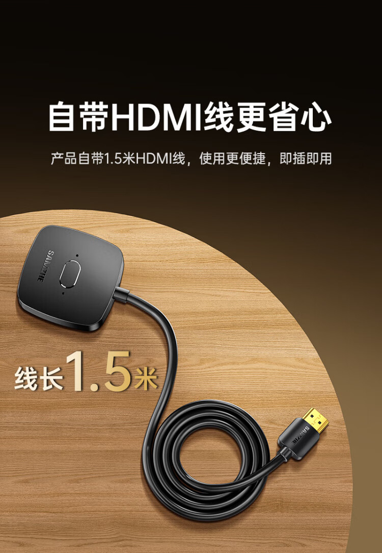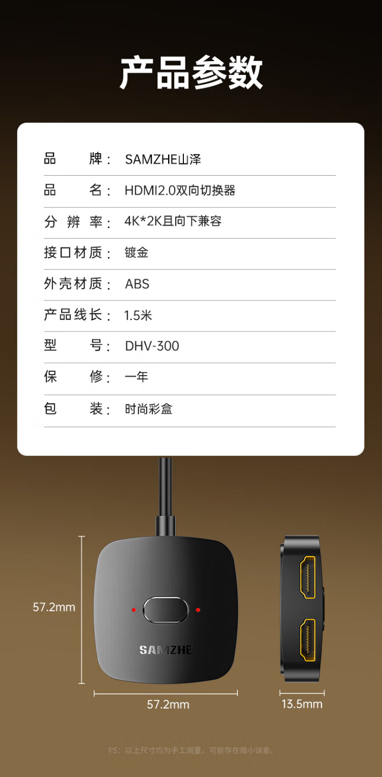 山泽HDMI一拖二双向切换器二进一出4K60Hz一进二高清1分2出笔记本电脑主机共享显示器电视分屏DHV-300