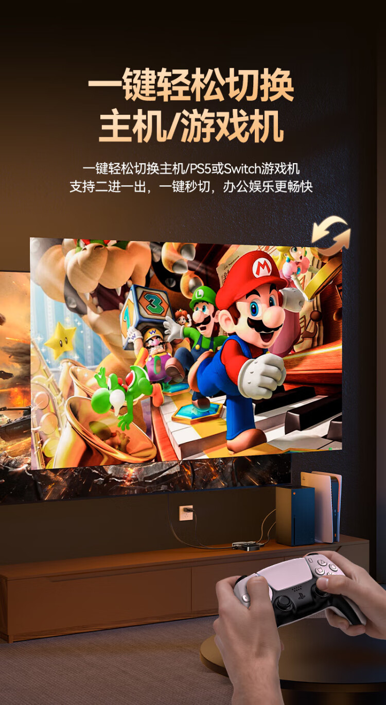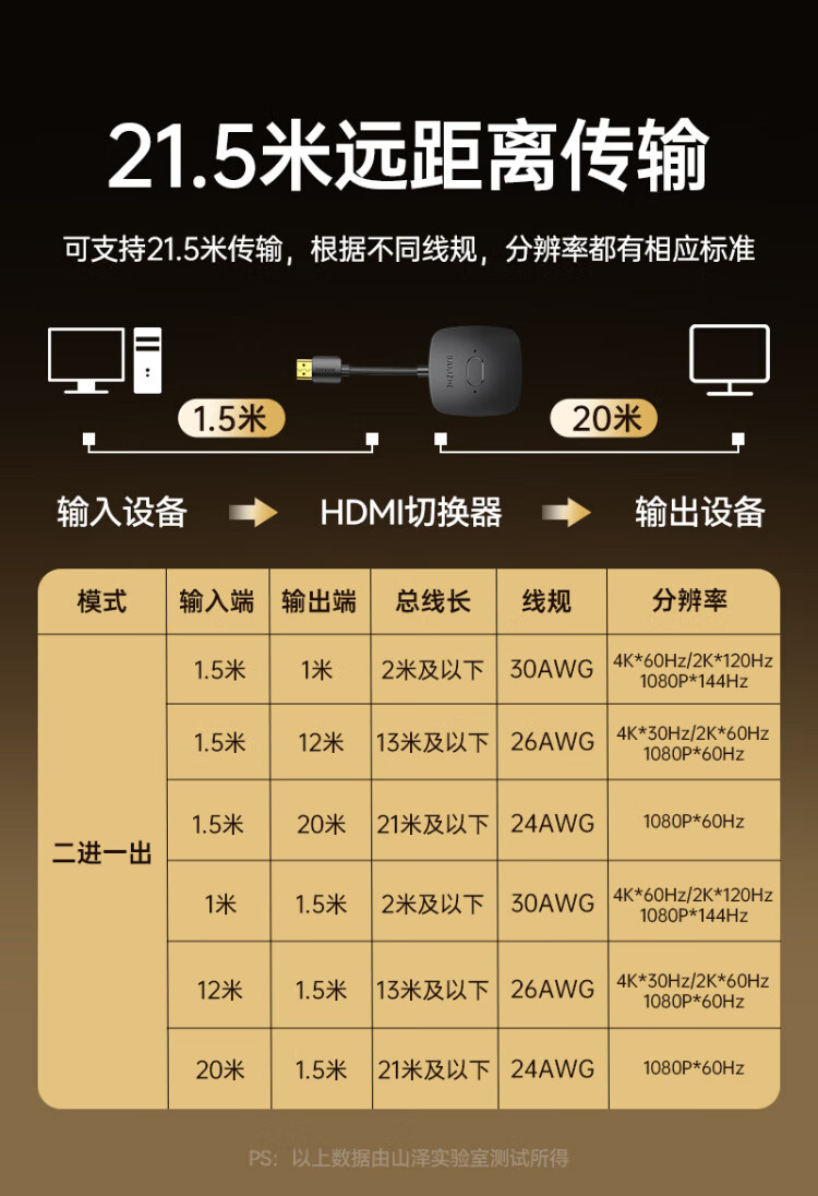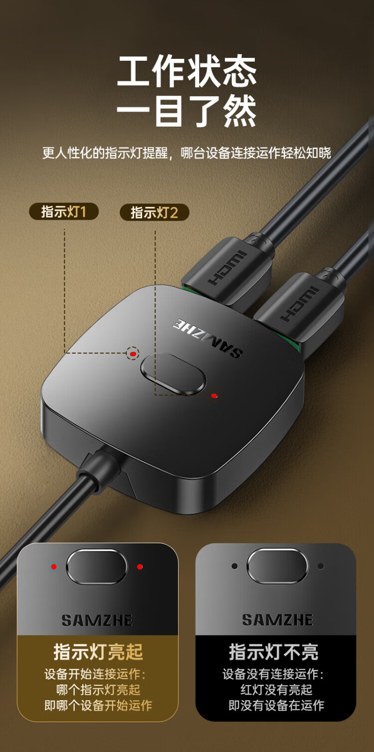 山泽HDMI一拖二双向切换器二进一出4K60Hz一进二高清1分2出笔记本电脑主机共享显示器电视分屏DHV-300