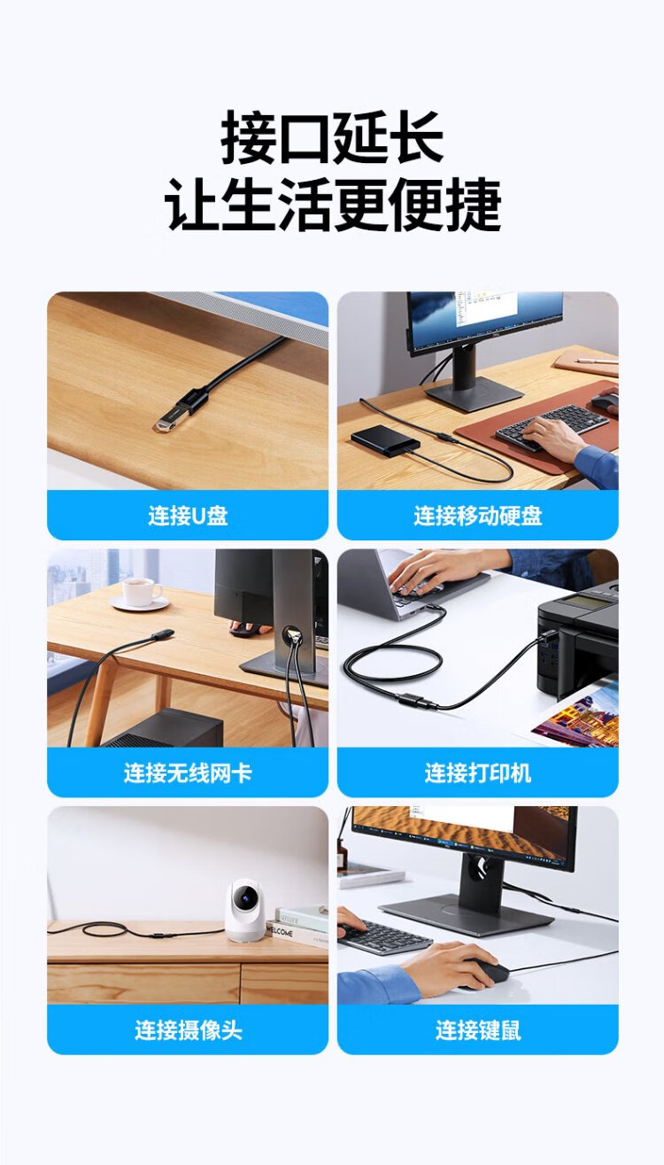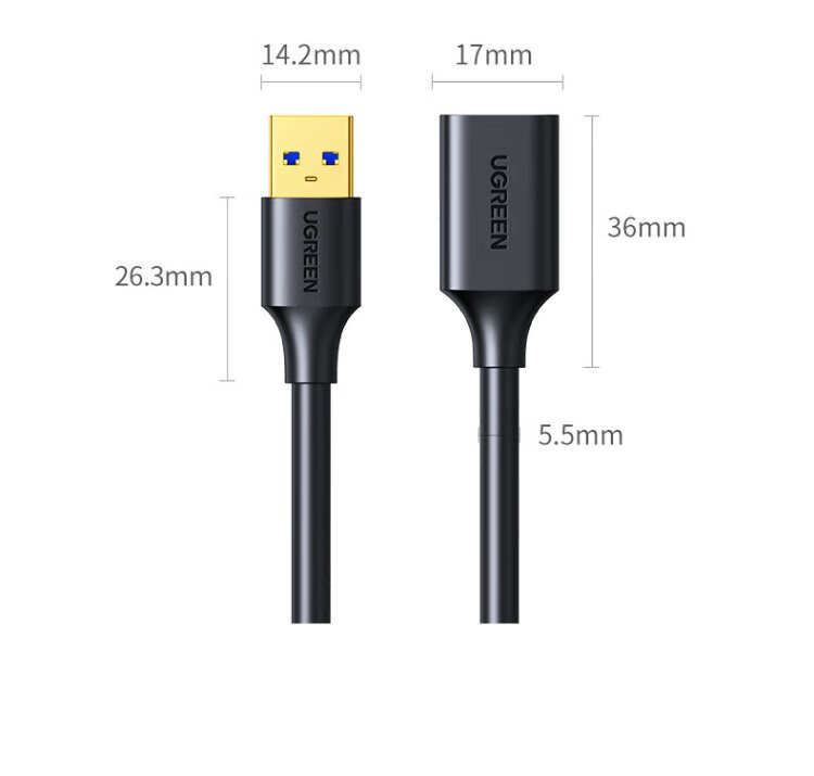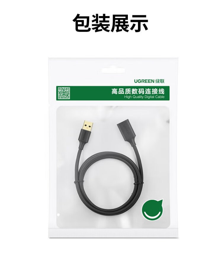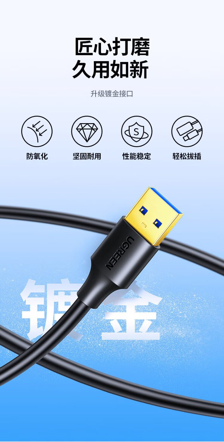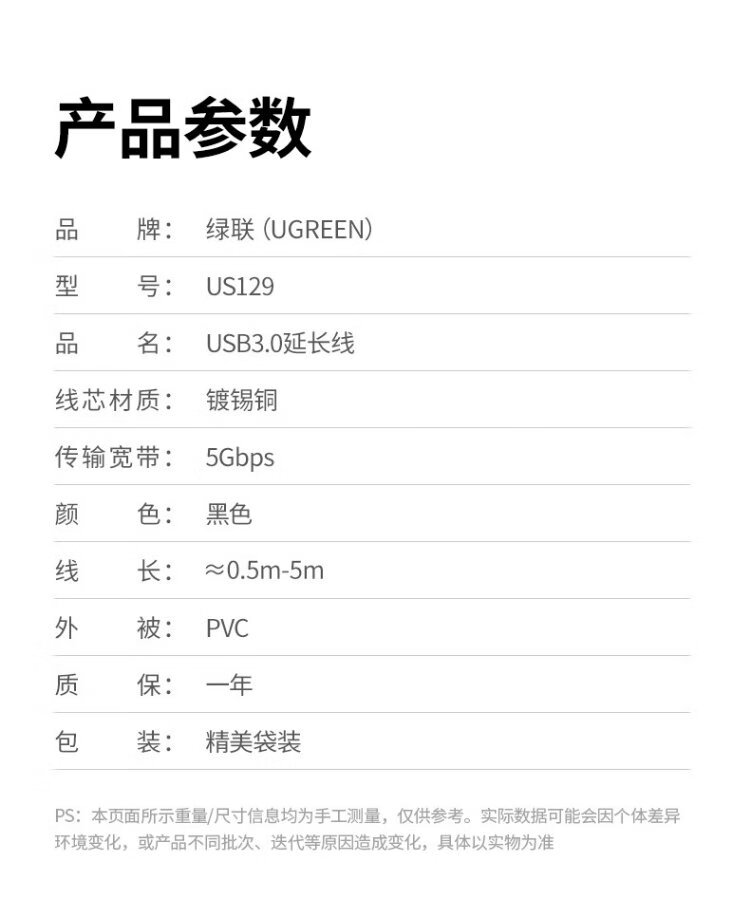 绿联USB3.0延长线公对母数据连接线电视电脑主机硬盘U盘鼠标键盘打印机扩展线加长转接线0.5米 30125