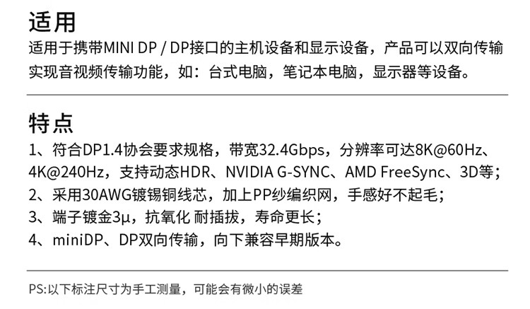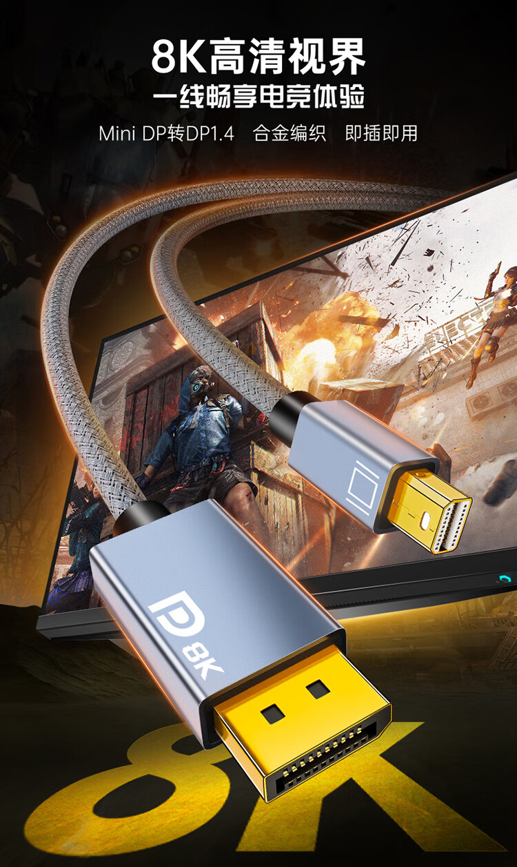 ULT-unite优籁特MiniDP转DP1.4迷你高清转接线8K60Hz高刷360Hz电竞级视频转换器苹果微软笔记本接显示器1米