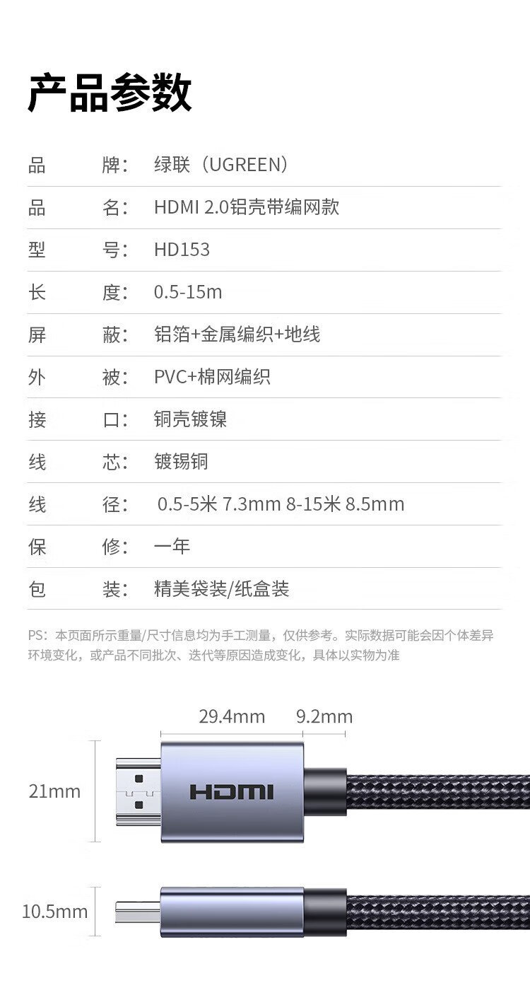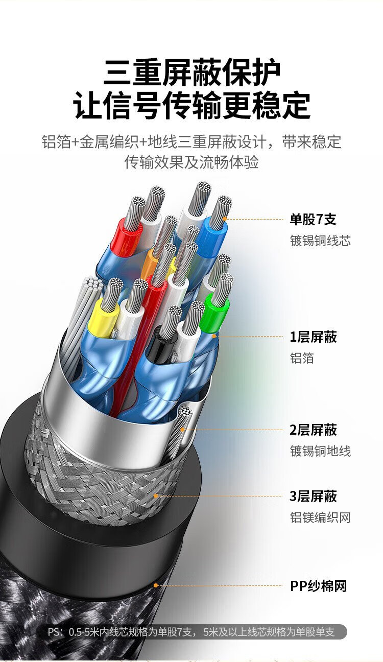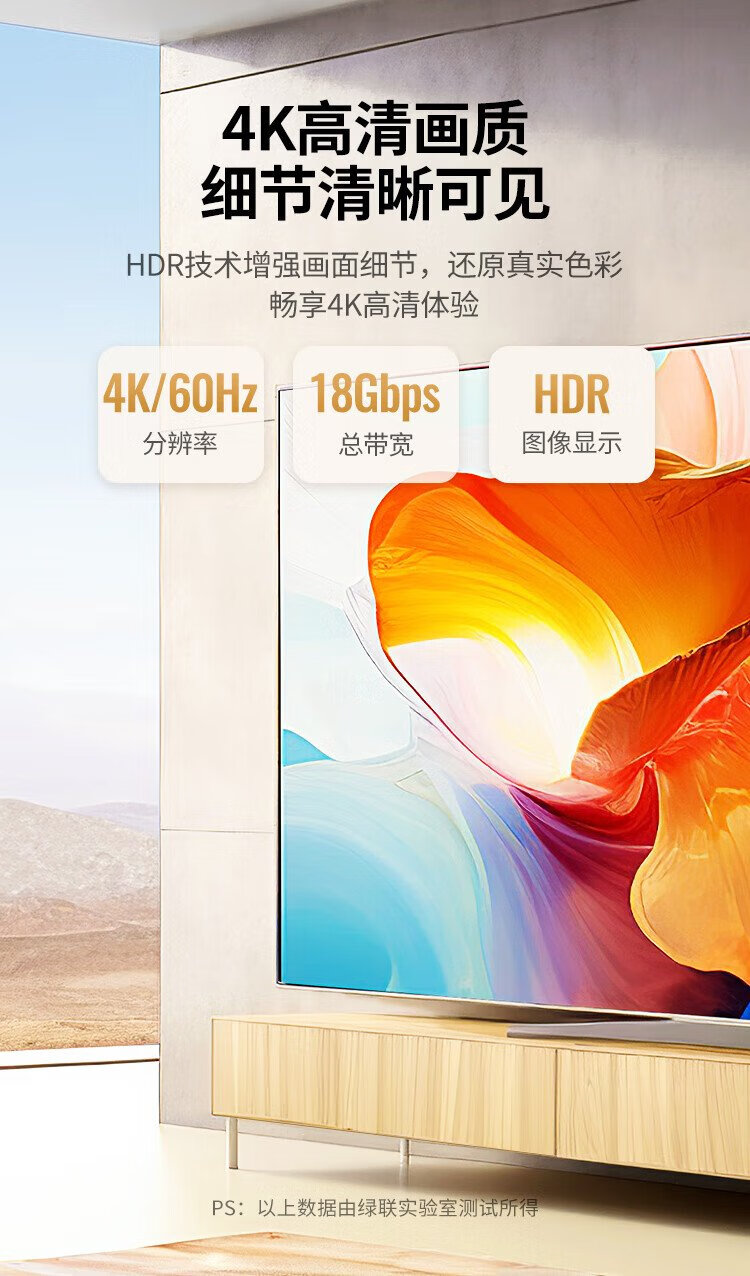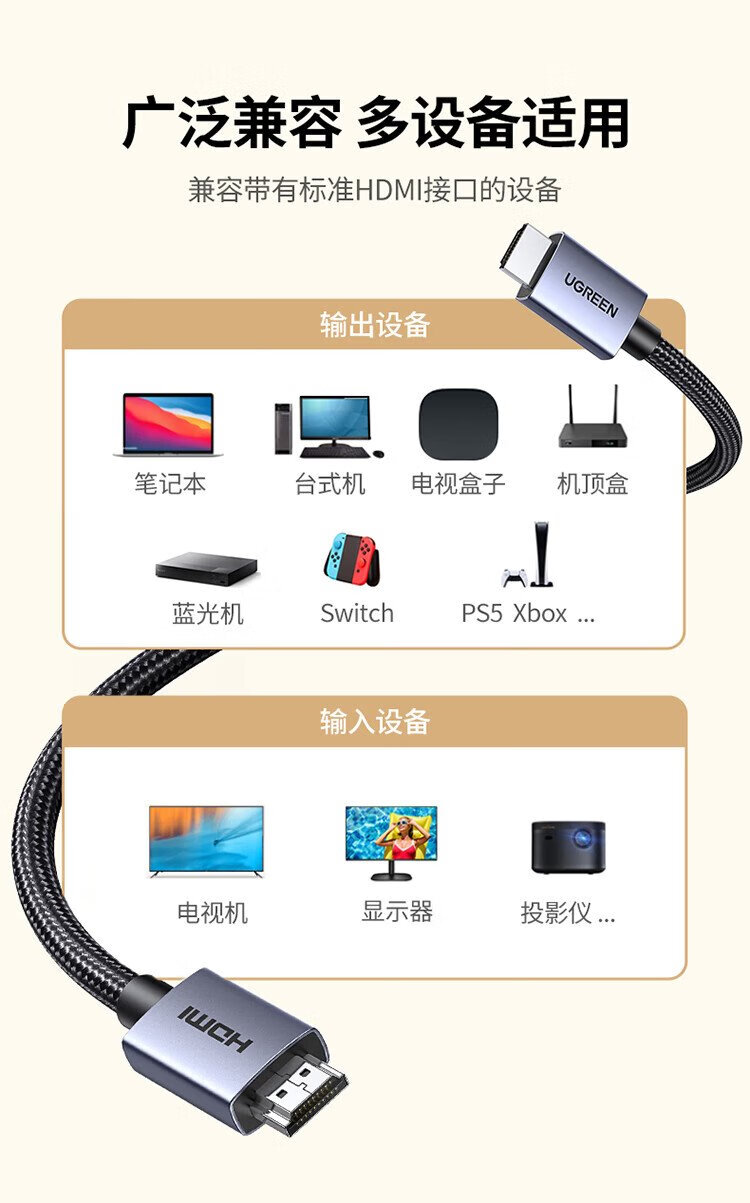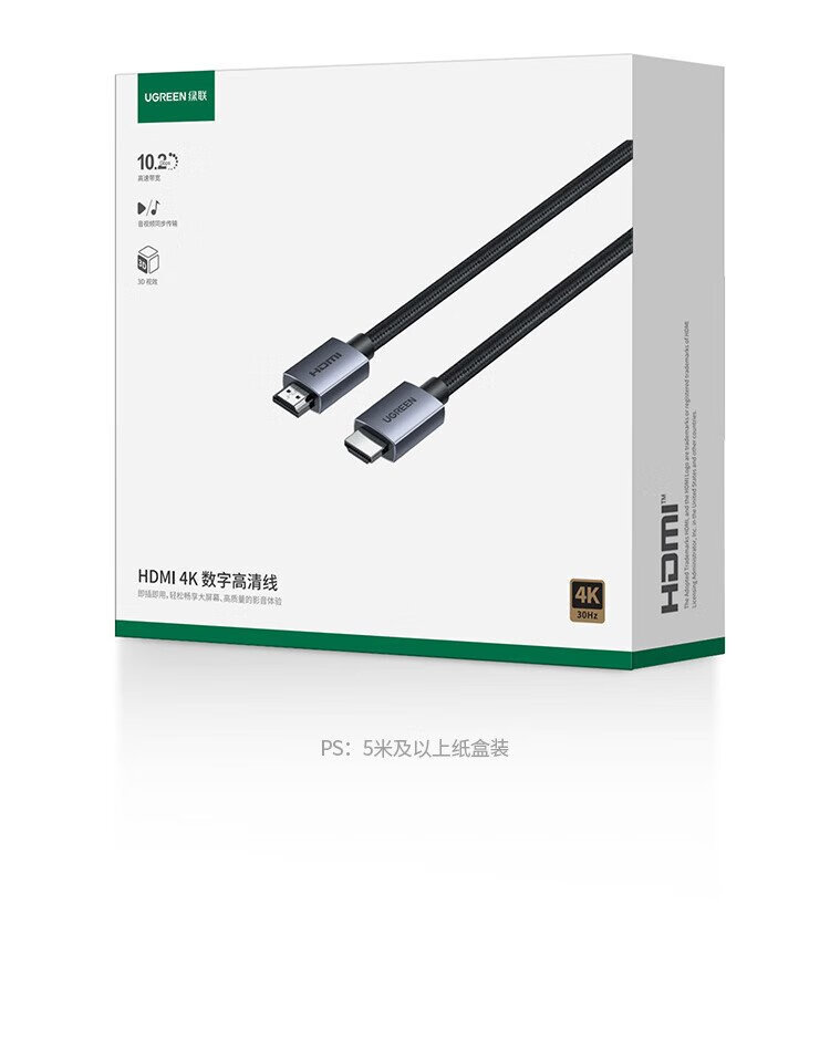 绿联HDMI线 4k数字高清线 3D视频线 笔记本电脑电视盒子连接电视投影仪显示器数据连接线5米25301