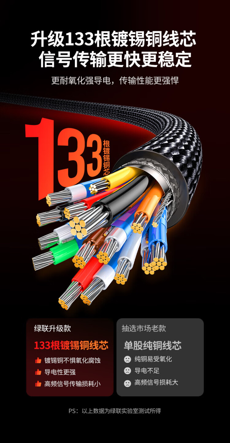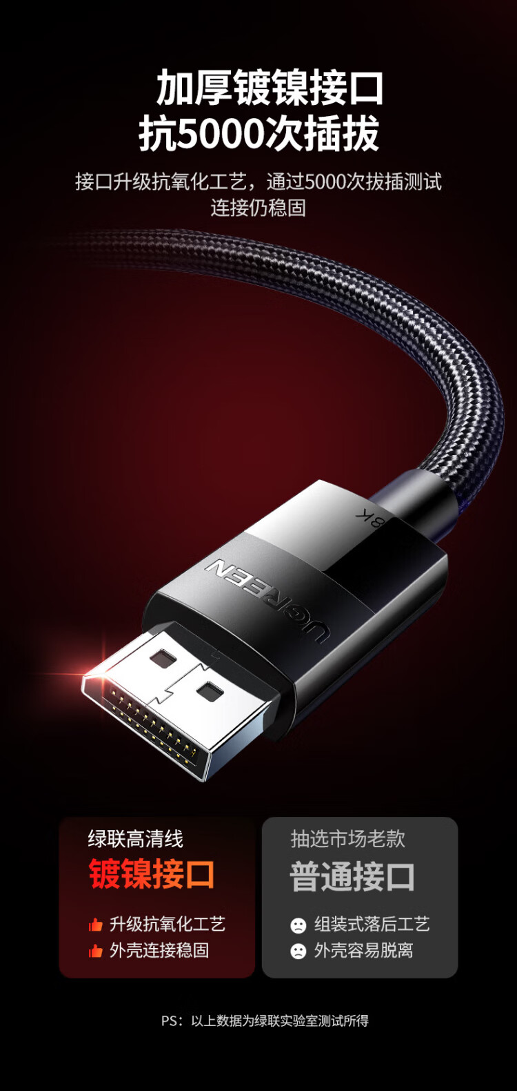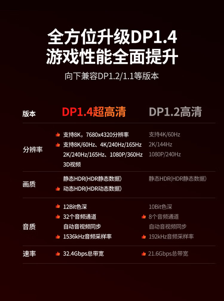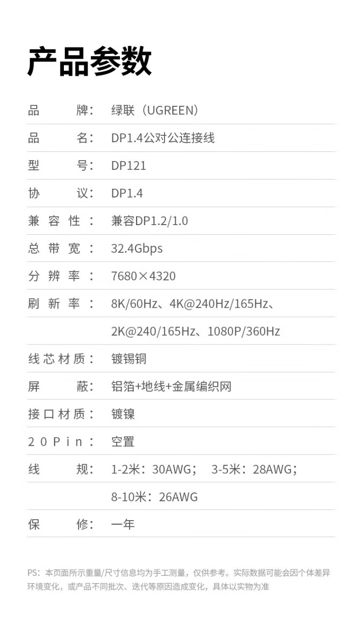 绿联DP线1.4版8K高清4K/2K240HzDisplayPort 适用电脑显卡接显示器电竞视频连接线3米兼容DP1.2 25956