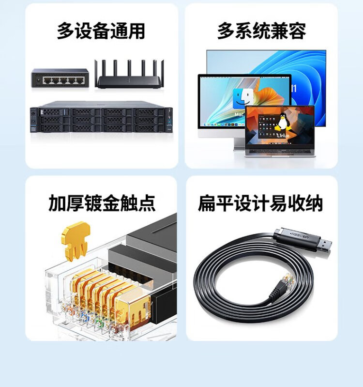 绿联Console调试线USB转RJ45控制串口交换机配置线转换线适用华为腾达TP-LINK小米路由器 1.5米 50773