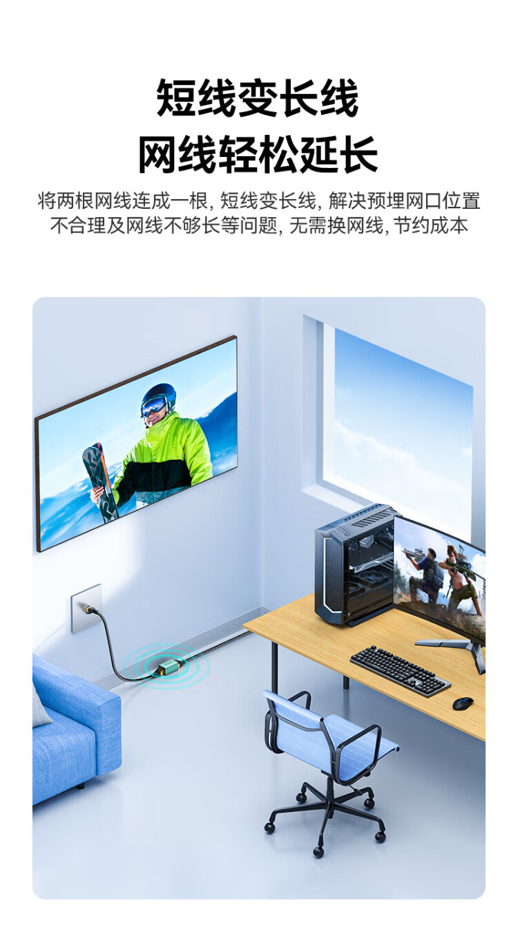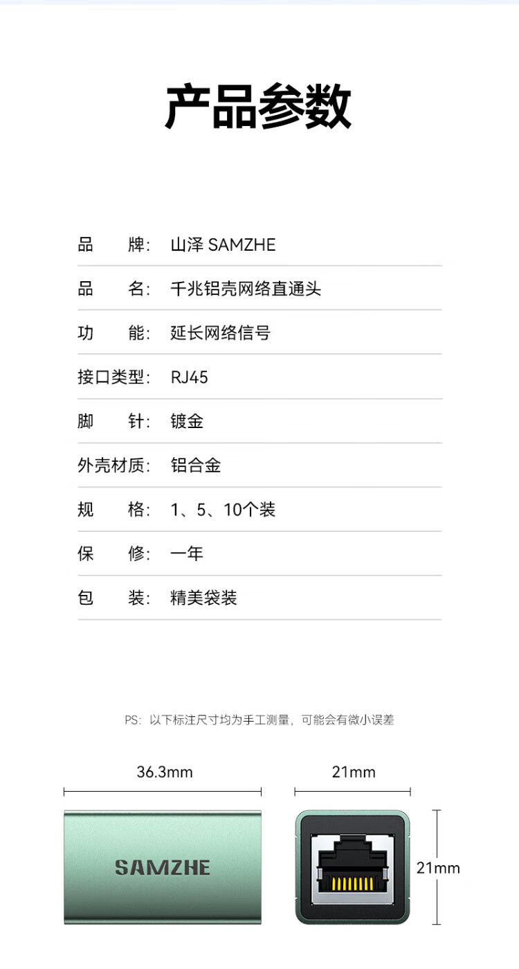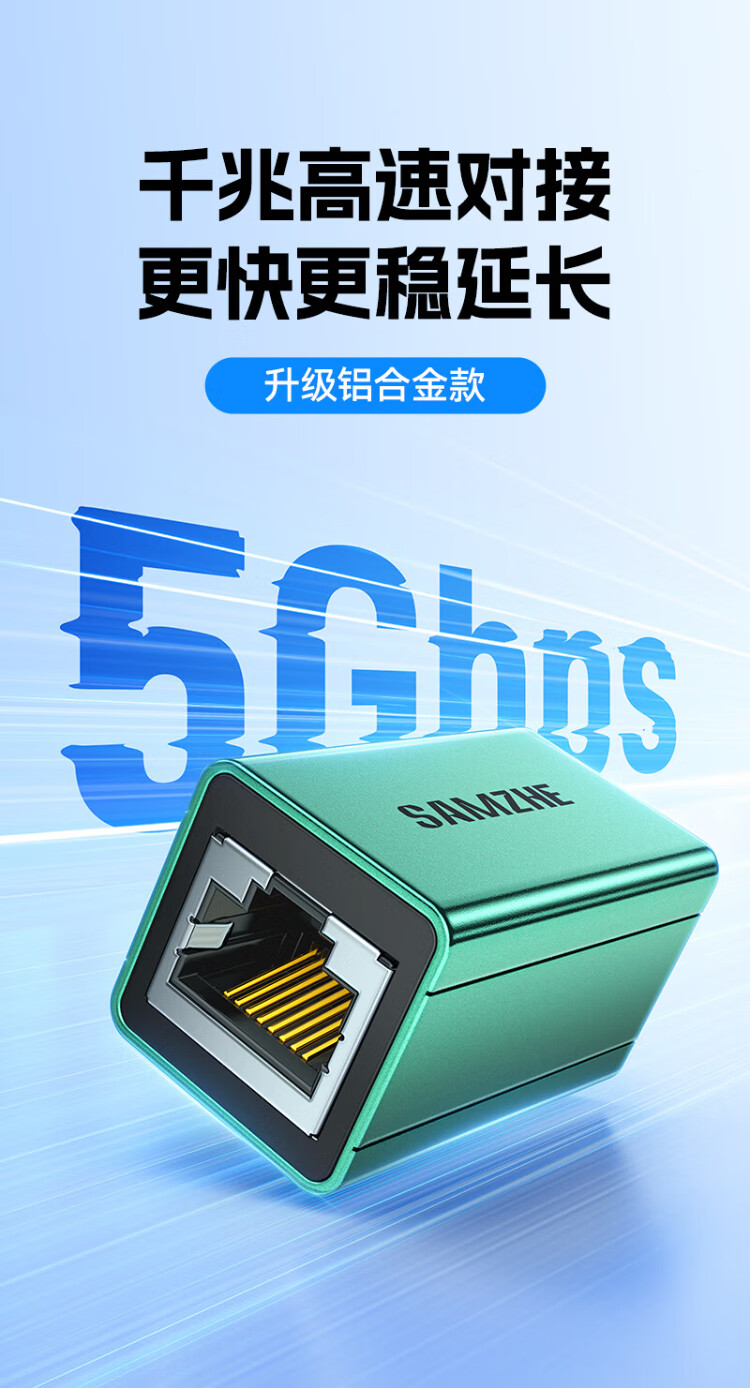 山泽千兆网线转接头对接头 千兆高网速网络延长器连接器 RJ45网口直通头水晶头模块适用5/6类网线