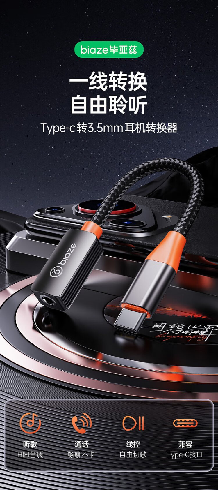 毕亚兹 苹果17/16/15耳机转接头 Type-C转3.5mm音频转接头USB-C耳机转换器 小米/华为Mate/P50安卓手机