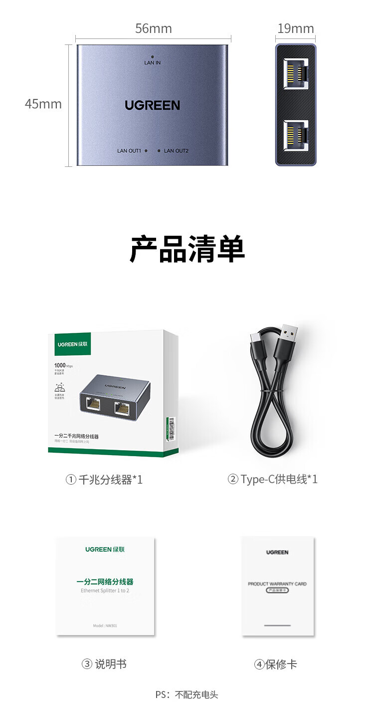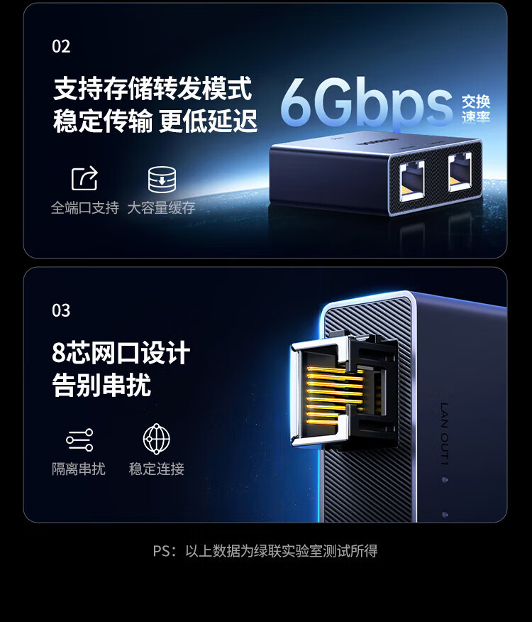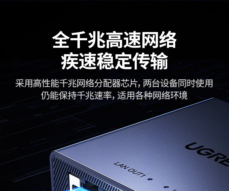 绿联 网线分线器一拖二 千兆网络扩展器上网转接头转换器 RJ45双网口延长器直通头宽带接口分接器35598