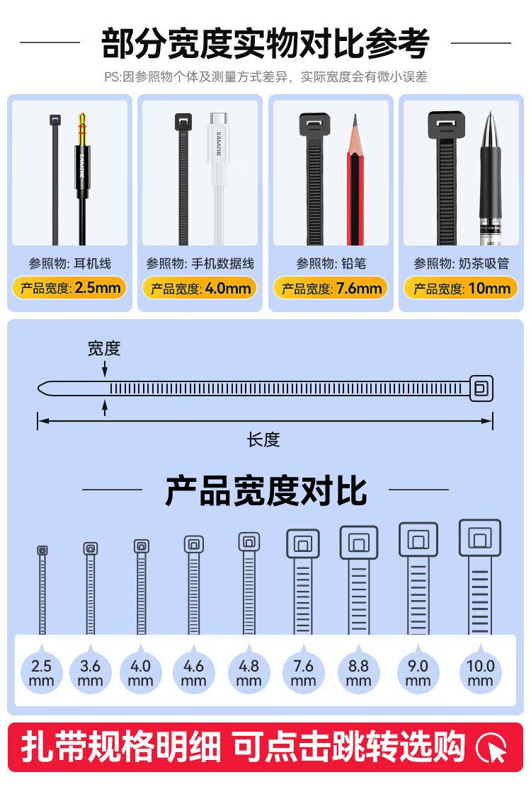 山泽自锁式尼龙扎带小号 2.5*100mm 电脑装机 园艺理线带束线带绑带 黑50根/包ZD-67