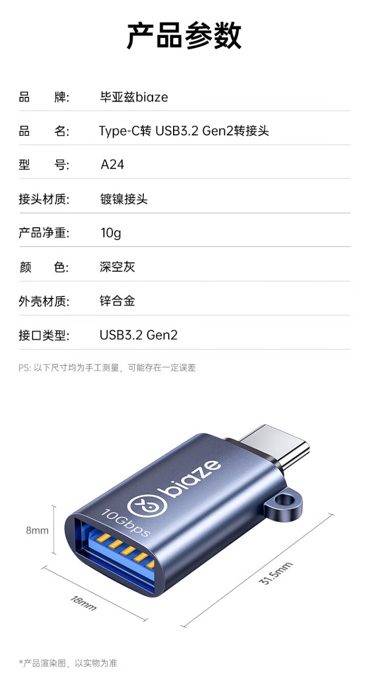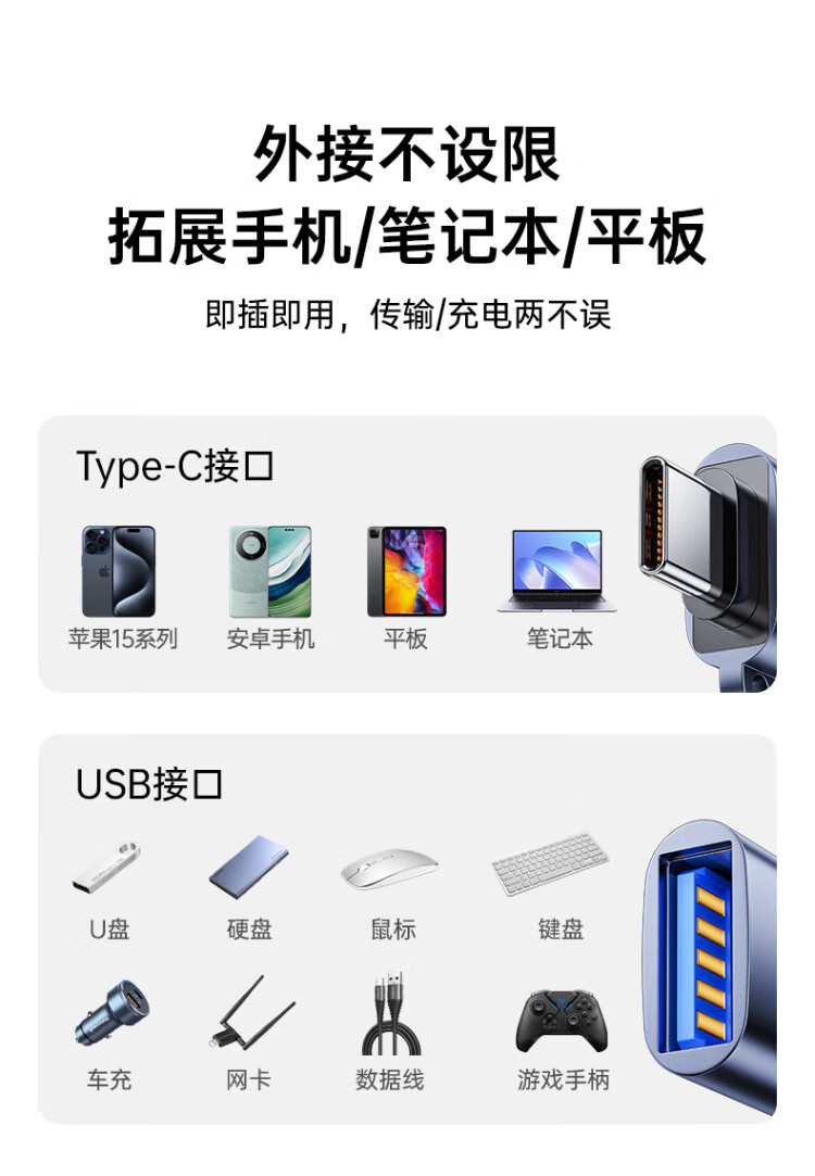 毕亚兹 Type-C转接头USB3.2苹果17/16/15安卓华为手机OTG/10G数据转换头线连接U盘平板耳机键鼠车载充电
