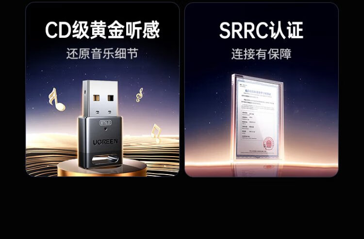 绿联USB蓝牙适配器6.0接收器免驱 适用键盘鼠标耳机音响手柄 PC电脑台式机外置蓝牙模块无线蓝牙发射器