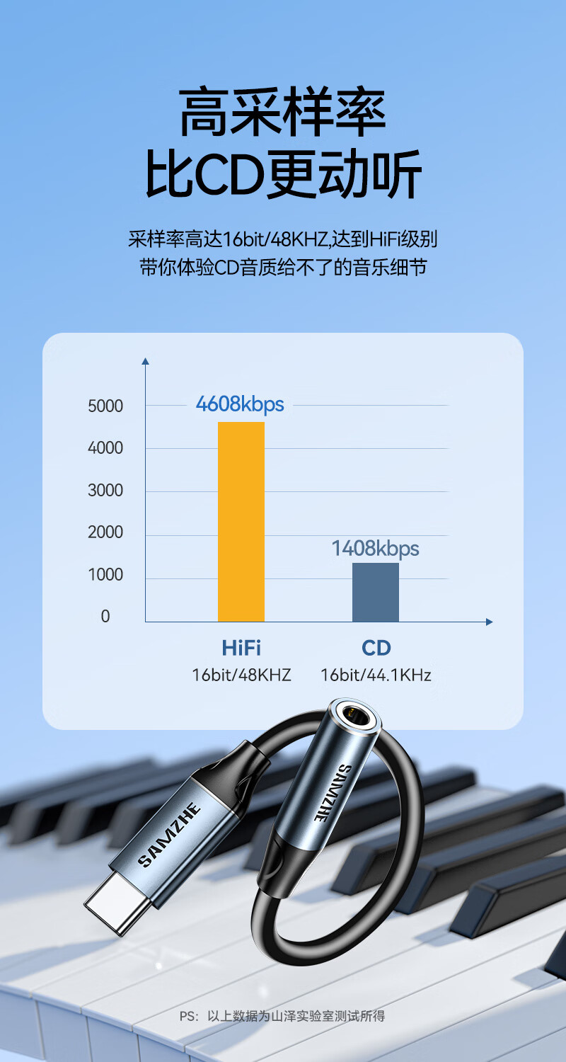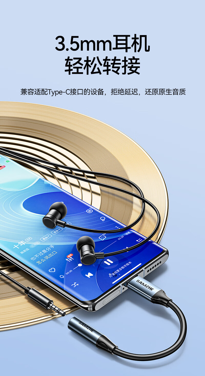 山泽Type-C耳机转接头 3.5mm耳机音频线 DAC解码耳机转换器 适用iPhone17/16/15华为三星小米手机TY301
