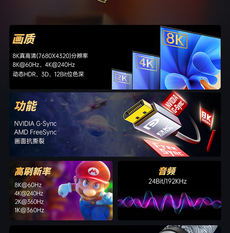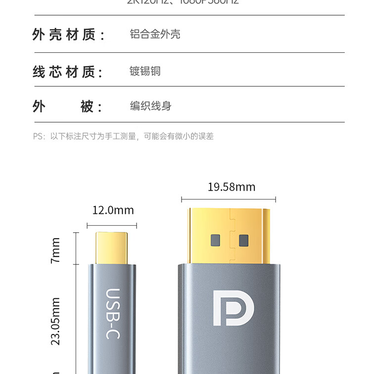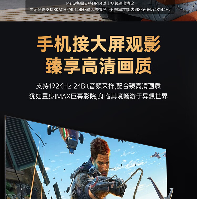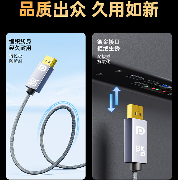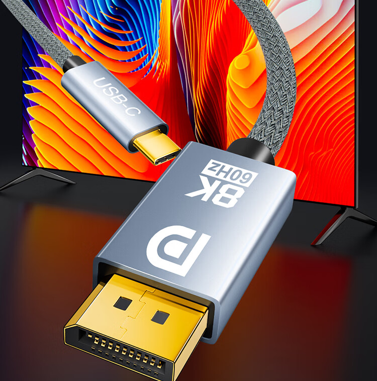 ULT-unite Typ-C auf DP1.4 Adapterkabel 165 Hz kompatibel mit Thunderbolt 4 externem Display 8K HD Konverter High Brush Videoprojektion 1 Meter-8K@60/2K@240Hz DP1.4
