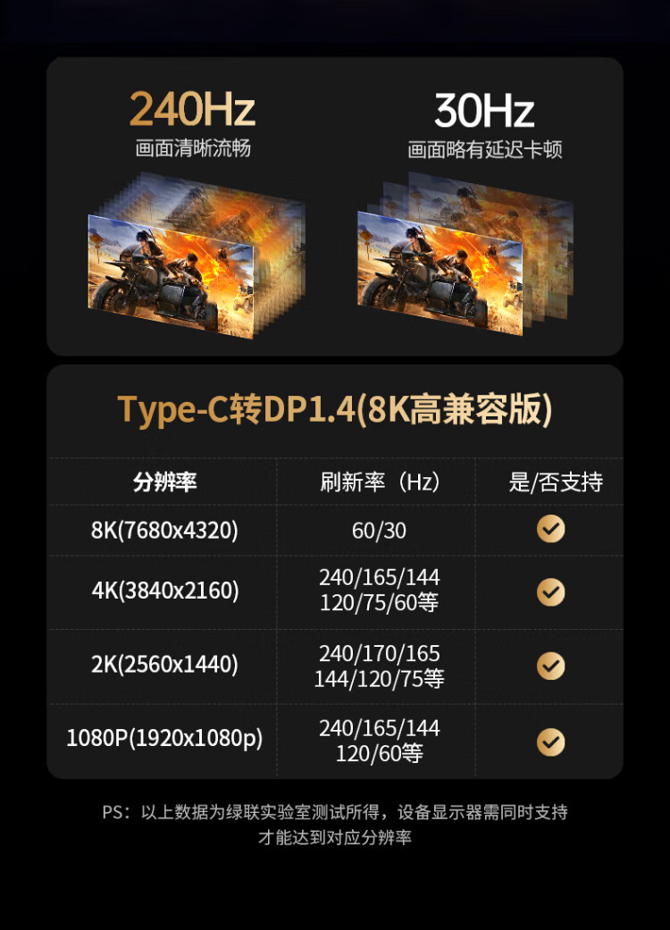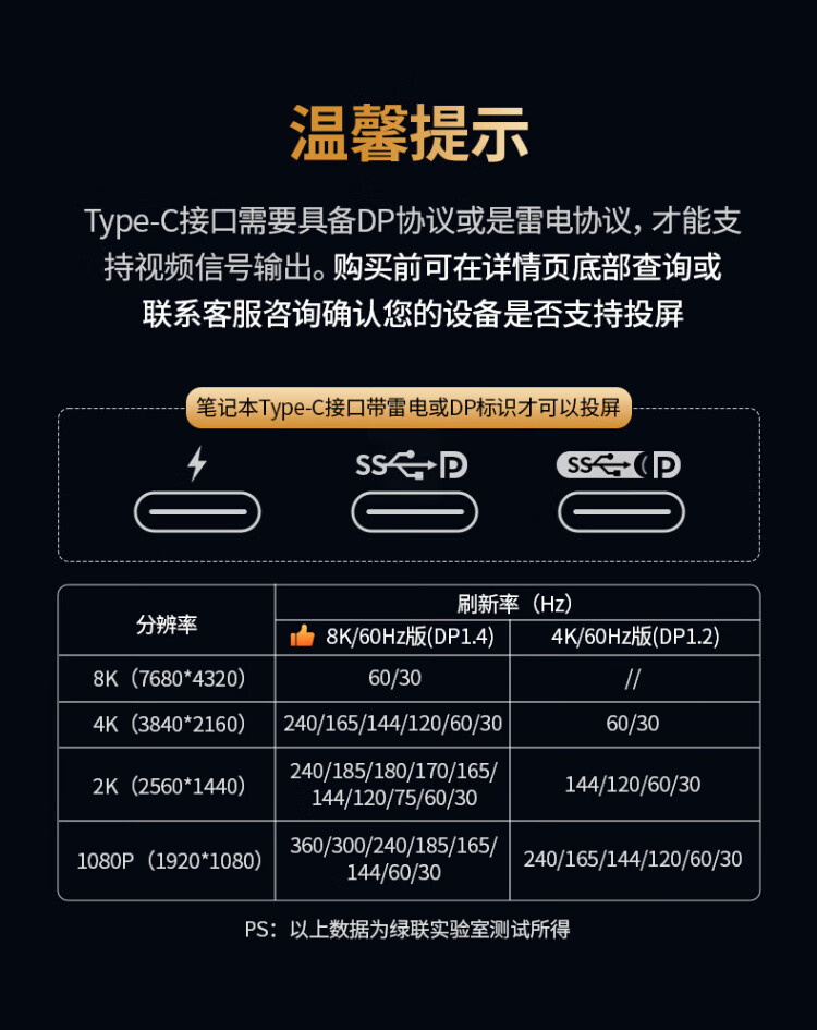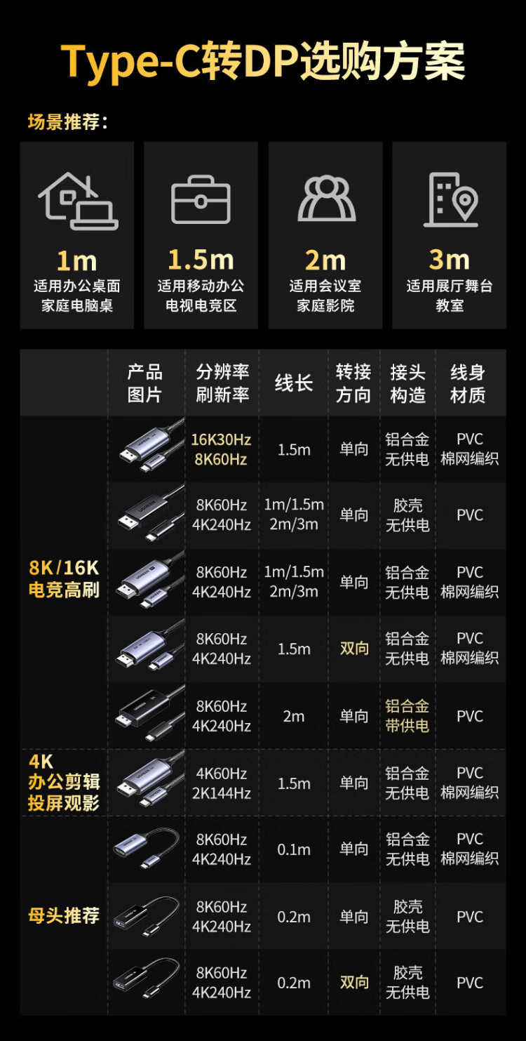 Greenlink Typ-C-zu-DP1.4-Adapter, Projektionsbildschirm-Konverterkabel 8K60Hz 4K240Hz, geeignet für IPhone Macmini iPad Air Laptop 8K60Hz, heiß verkauft, 1,5 Meter