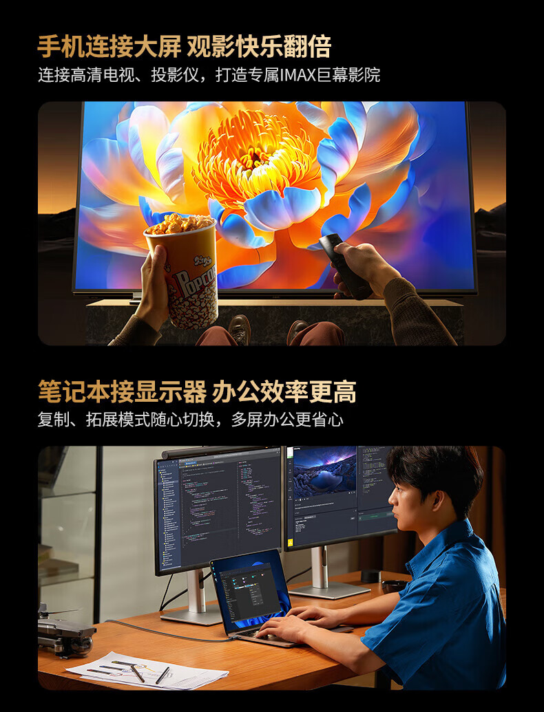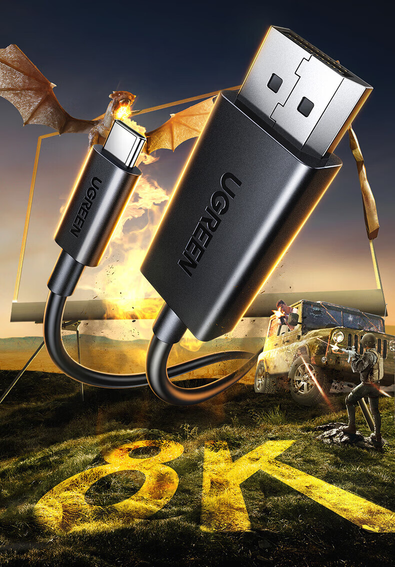 Greenlink Typ-C auf DP1.4 Adapter Projektionsbildschirm Konverterkabel 8K60Hz 4K240Hz geeignet für IPhone Macmini iPad Air Laptop 1 Meter einfach schwarz 8K60Hz DP1.4 DP
