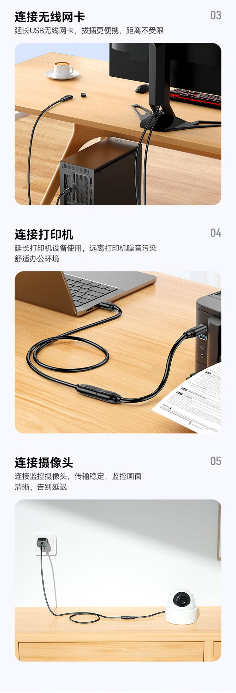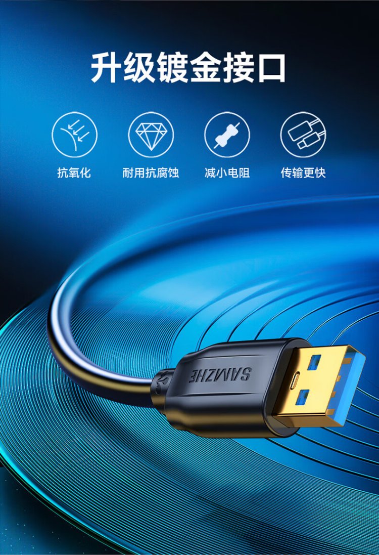 山泽usb3.0延长线2米 公对母电视u盘鼠标键盘扩展线电脑硬盘数据连接加长线打印机分线器转接线UK-020