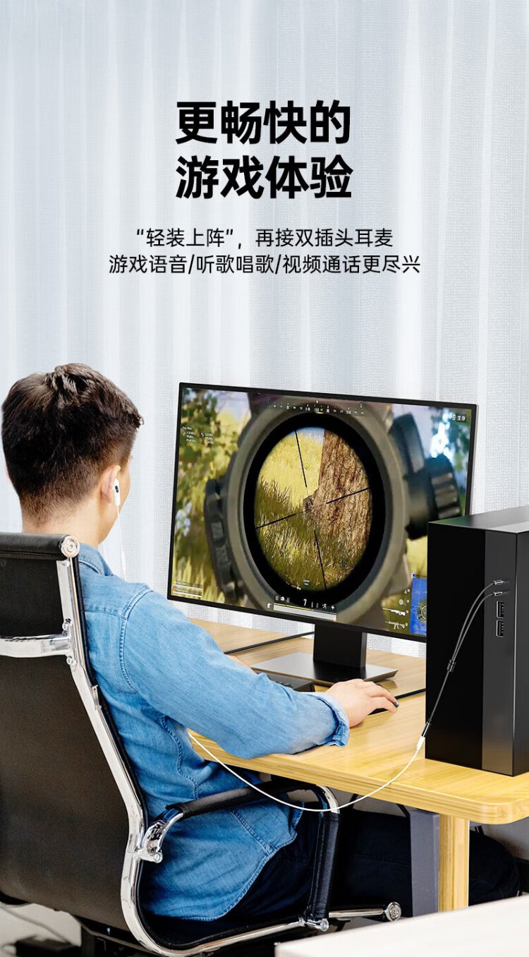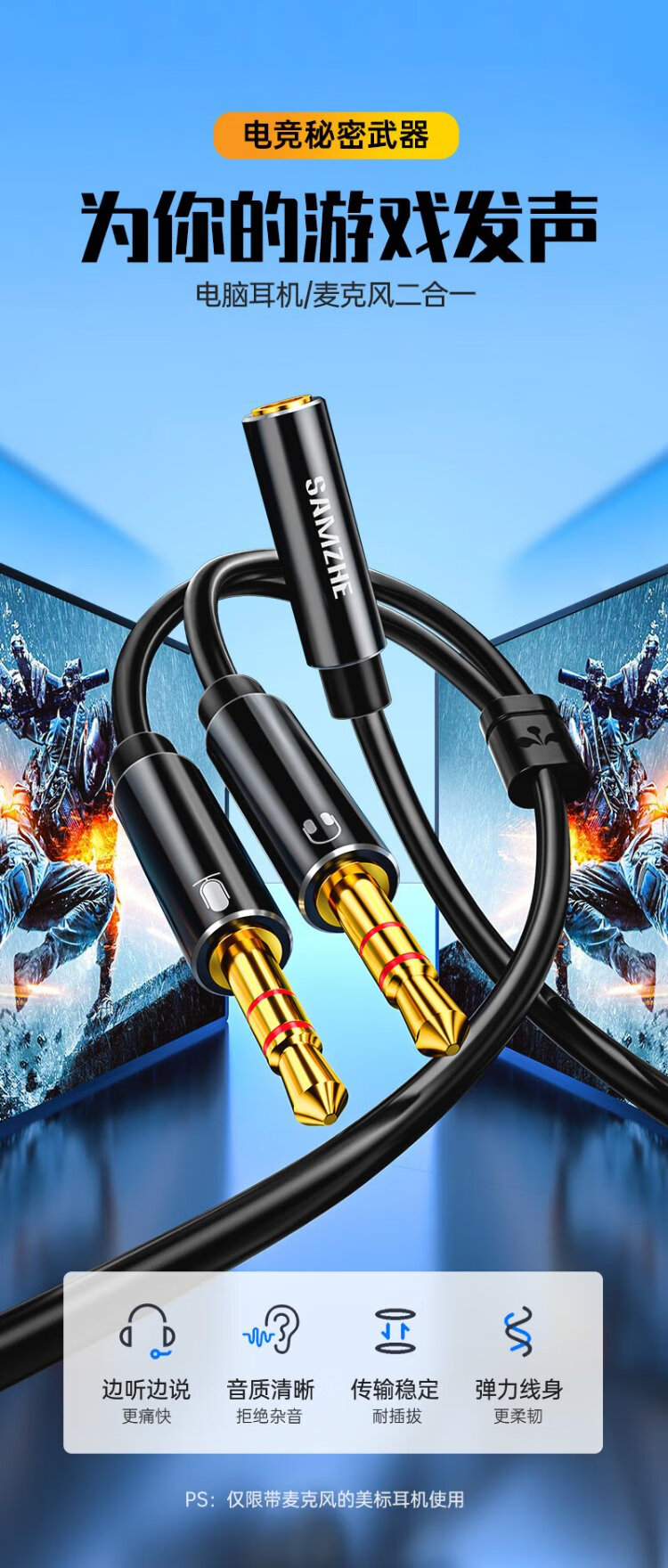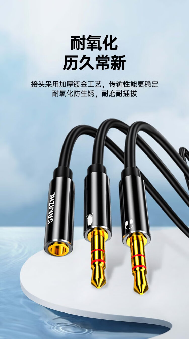 山泽 耳机麦克风二合一转接线 电脑耳机转换线3.5mm 手机耳机音频一分二电脑转接头 黑0.25米YP-400