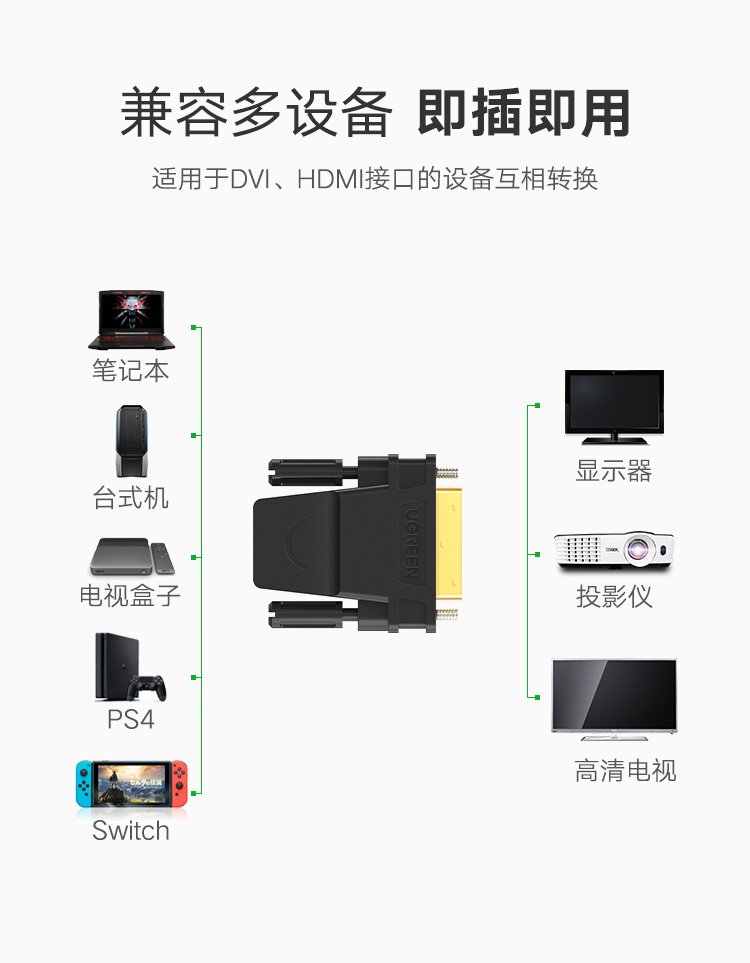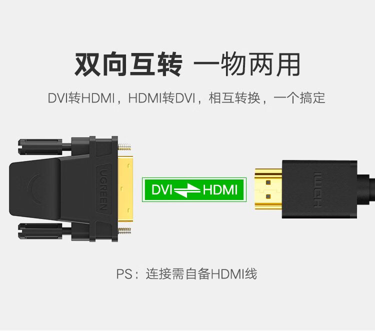 绿联DVI公转HDMI母转接头 DVI24+1/DVI-D转HDMI高清转换DVI延长线适用台式电脑显卡接电视显示器 20124
