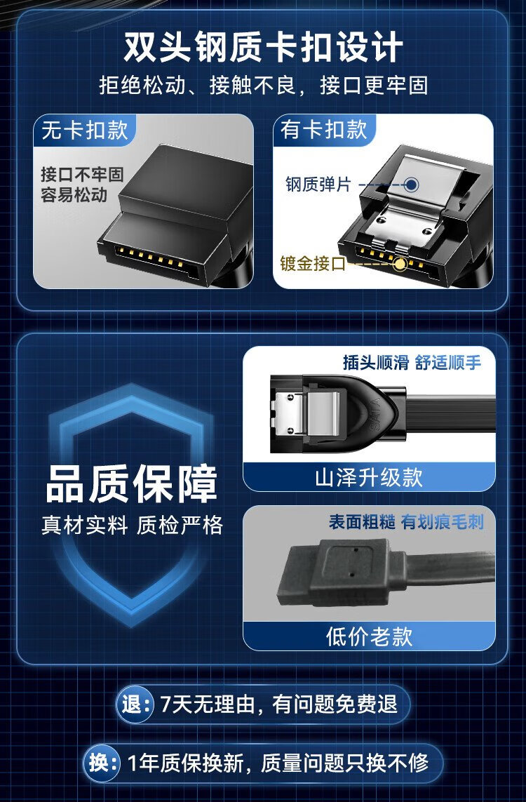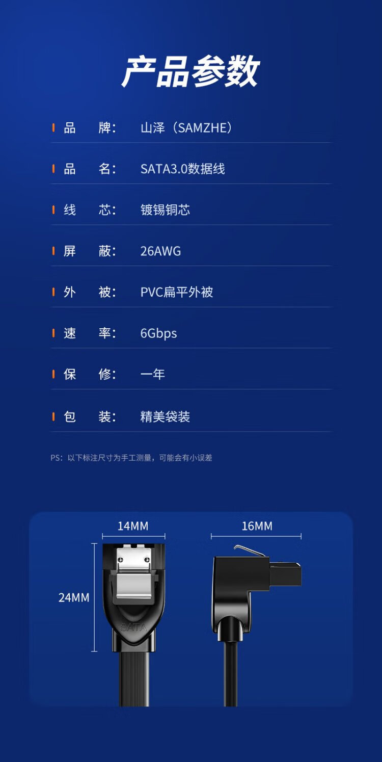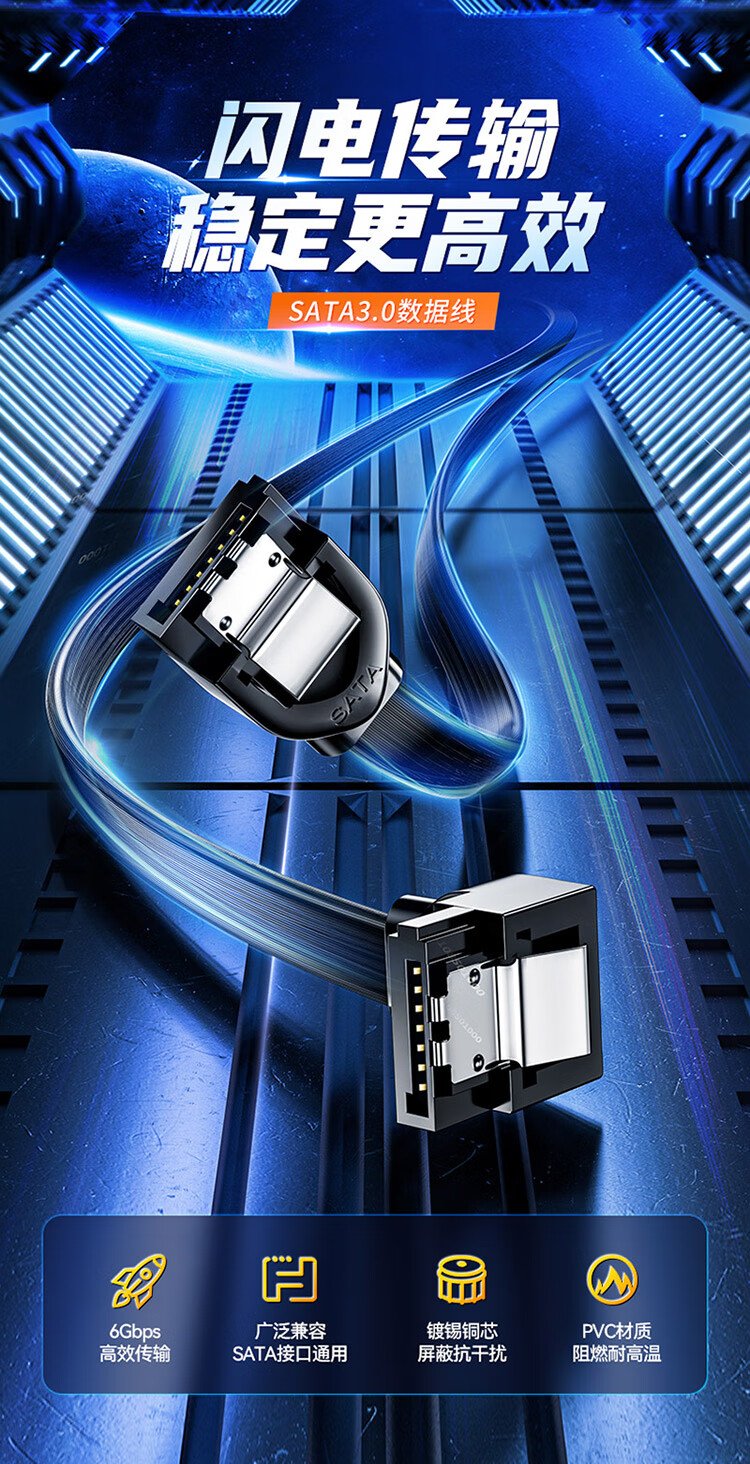山泽 高速SATA3.0硬盘数据线 外接固态机械硬盘连接线 光驱串口线电源双通道转换线 直头0.5米 ZDZ05