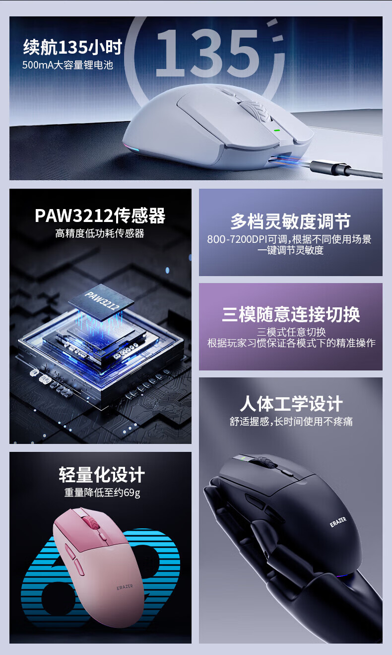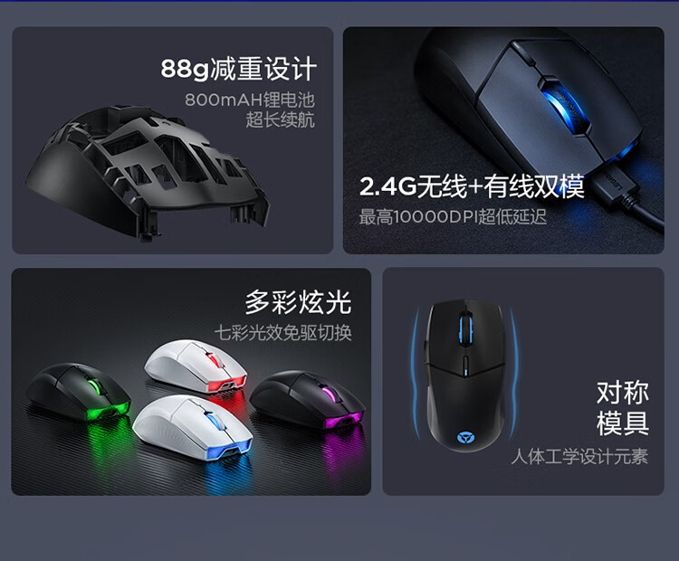 Lenovo Savior R/Y9000/P/Y7000/P/X Игровая мышь для киберспорта Перезаряжаемая RGB-подсветка с низкой задержкой Игра LOL Chicken CF PlayerUnknown’s Battlegrounds Периферийная мышь Savior M500 Двухрежимная мышь — черная беспроводная + проводная игровая мышь Savior