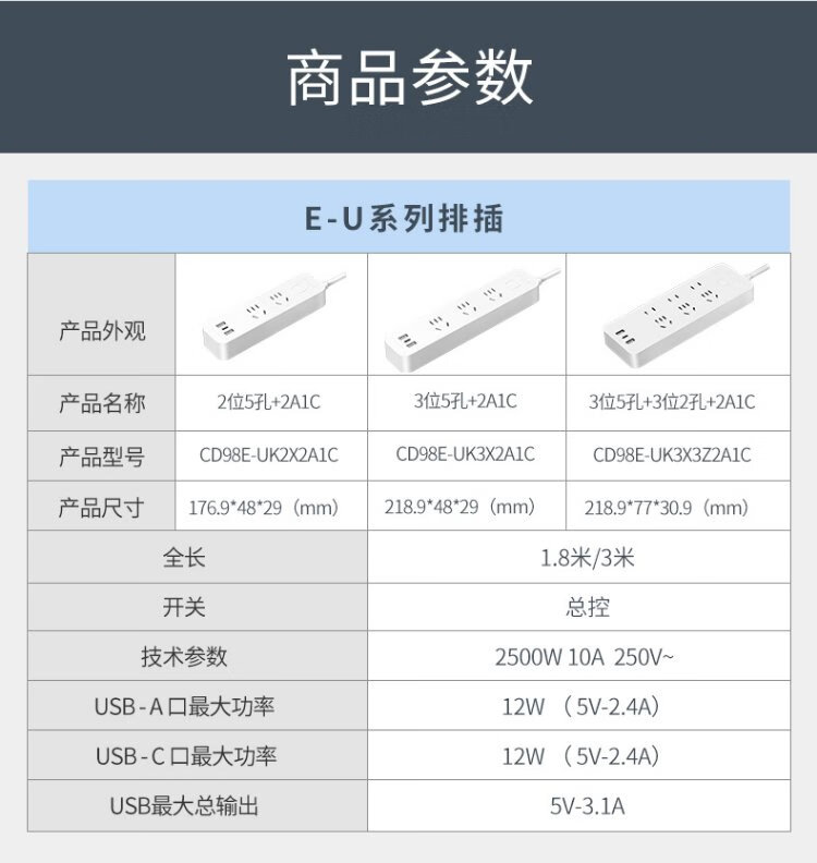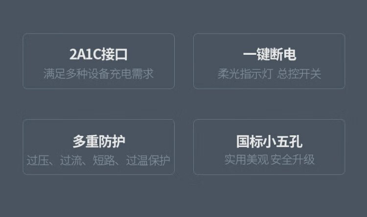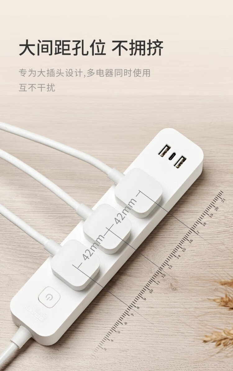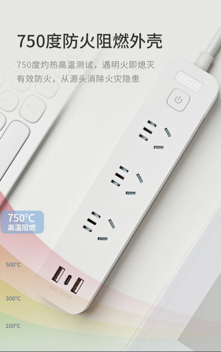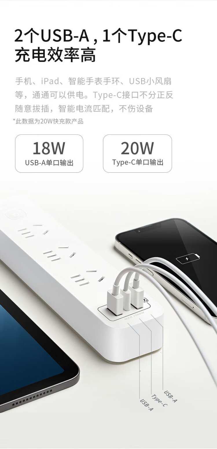 DELIXI USB socket plug strip/socket strip/socket strip/plug strip/plug strip Type-c port + USB port + 2 jacks total length 1.8 meters master control switch