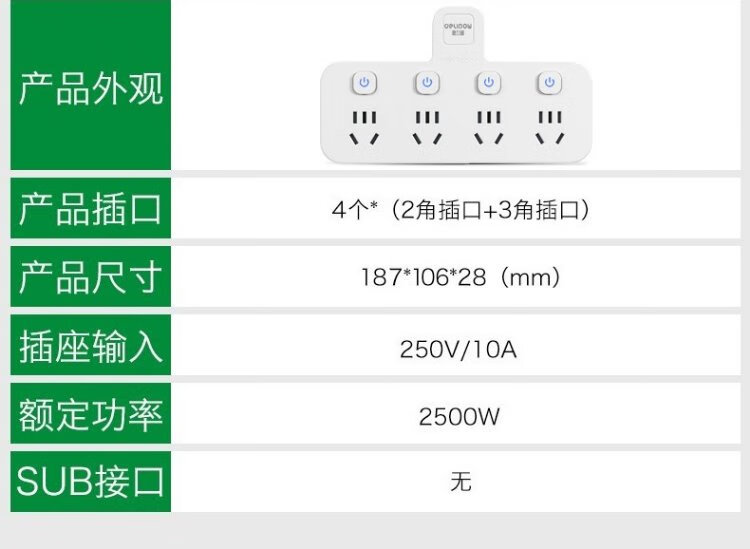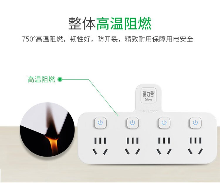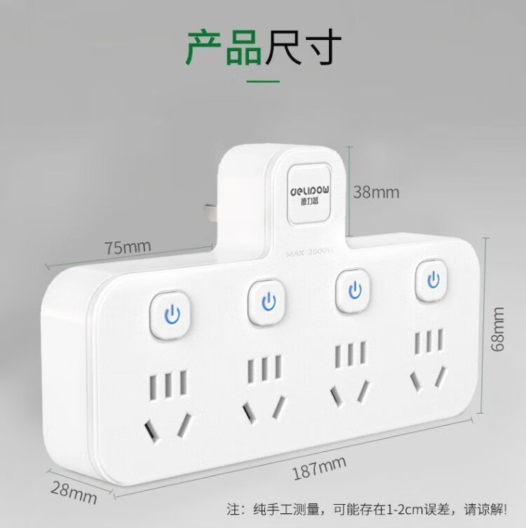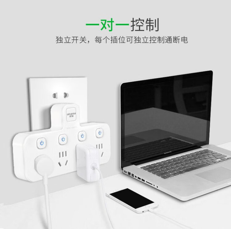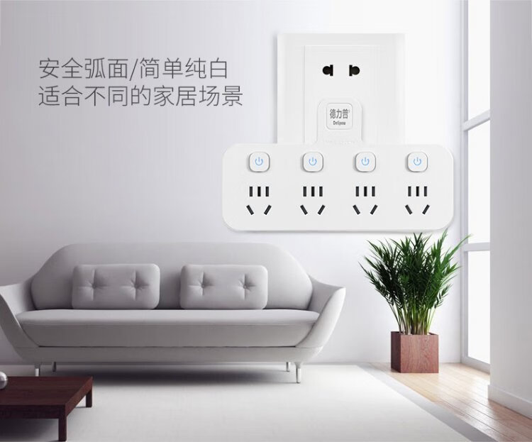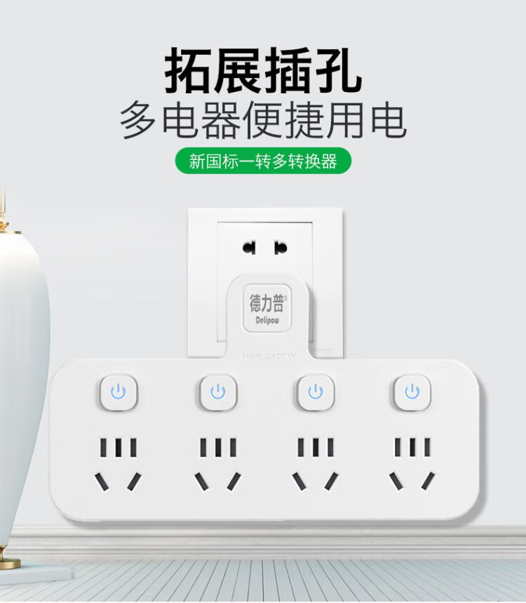 Delipow power strip, one-to-four multi-function socket, sub-control switch/socket converter/power strip/wireless plug