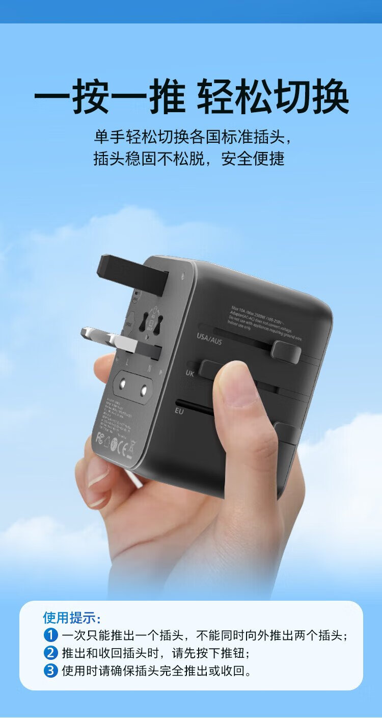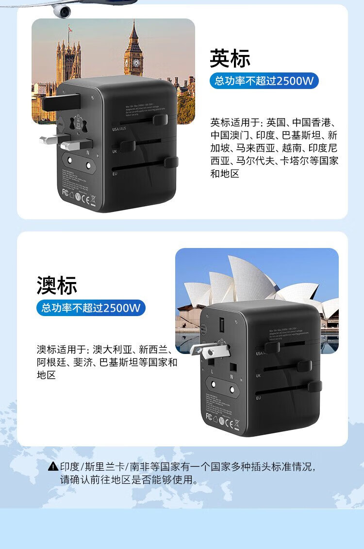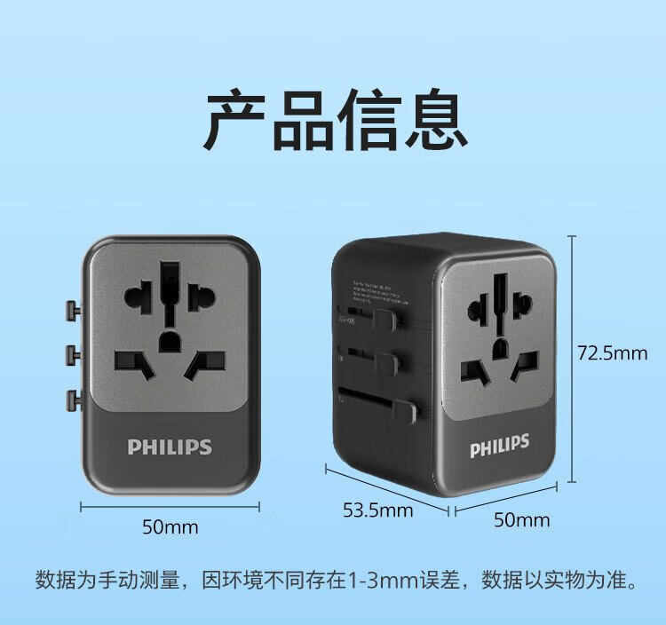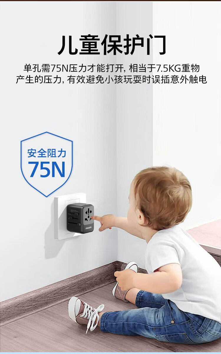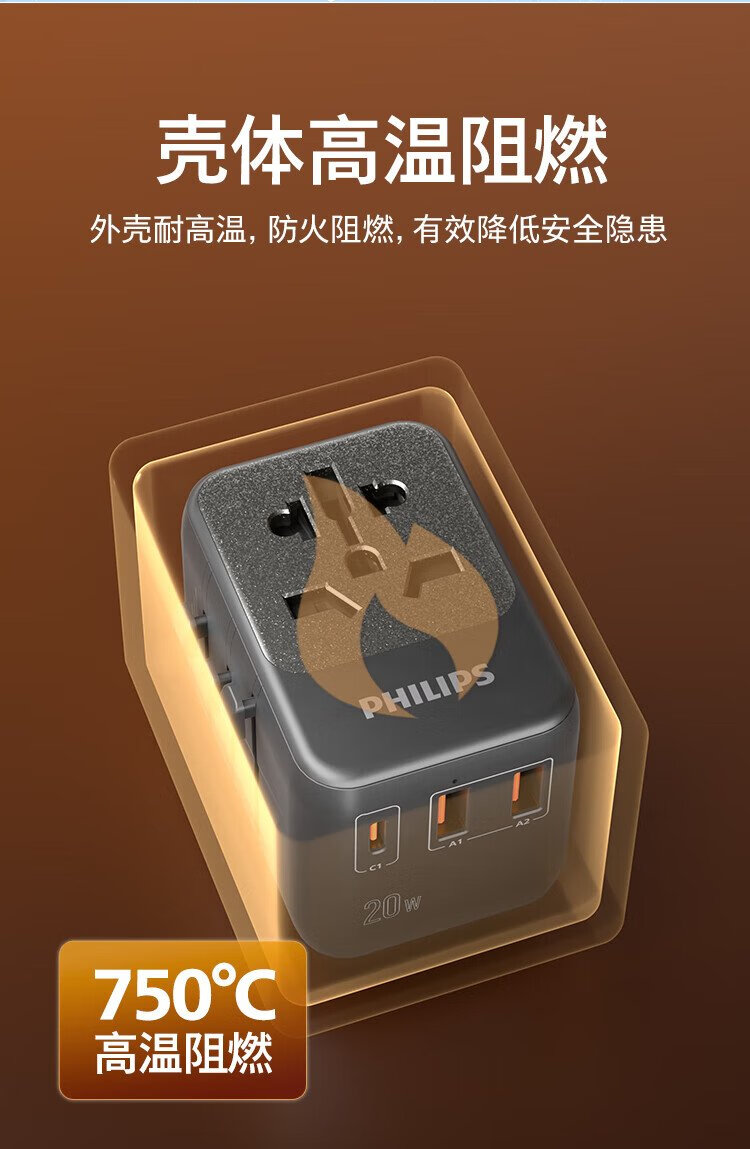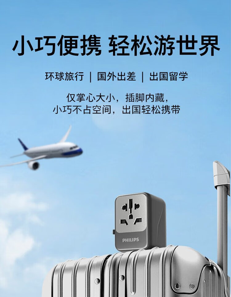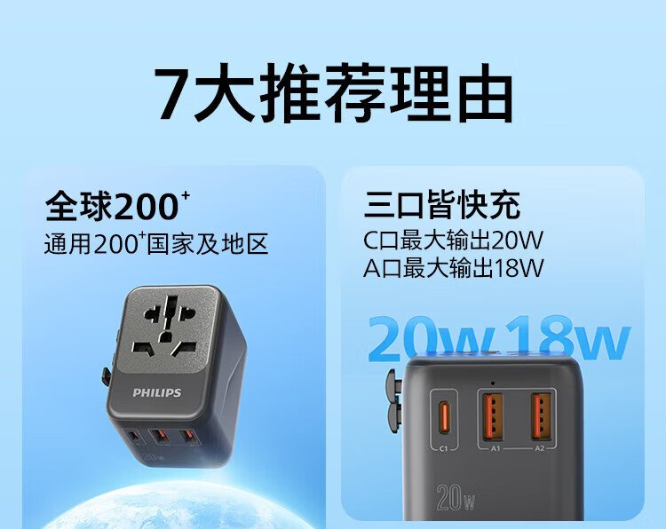 飞利浦(PHILIPS)20WPD快充 转换插头全球通用转换器国际旅行转换器 出国留学转换插头日韩港澳欧洲美标澳标英标