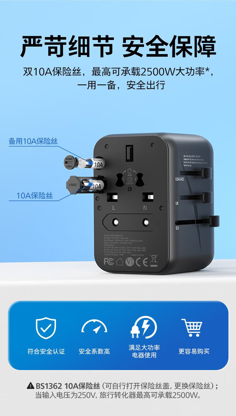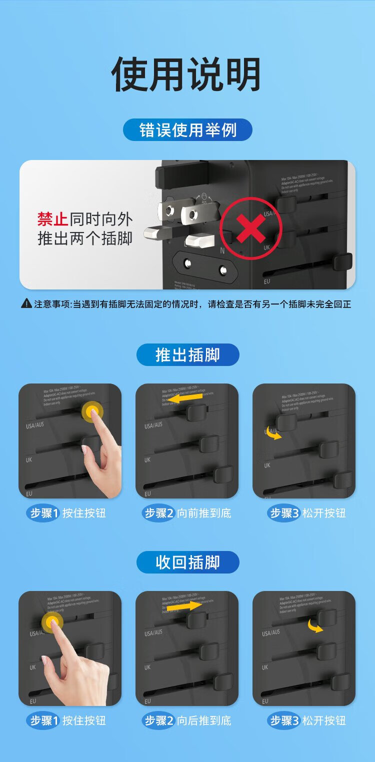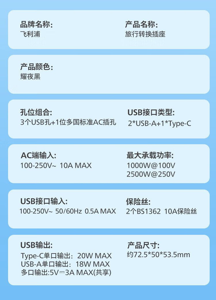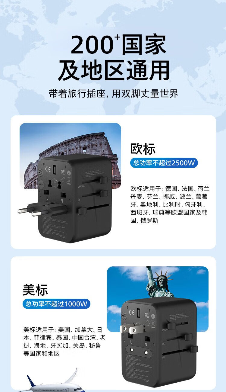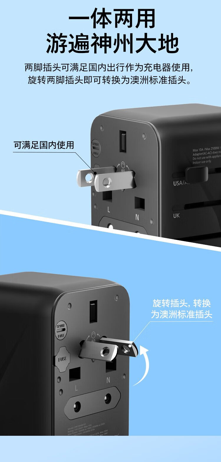 飞利浦(PHILIPS)20WPD快充 转换插头全球通用转换器国际旅行转换器 出国留学转换插头日韩港澳欧洲美标澳标英标