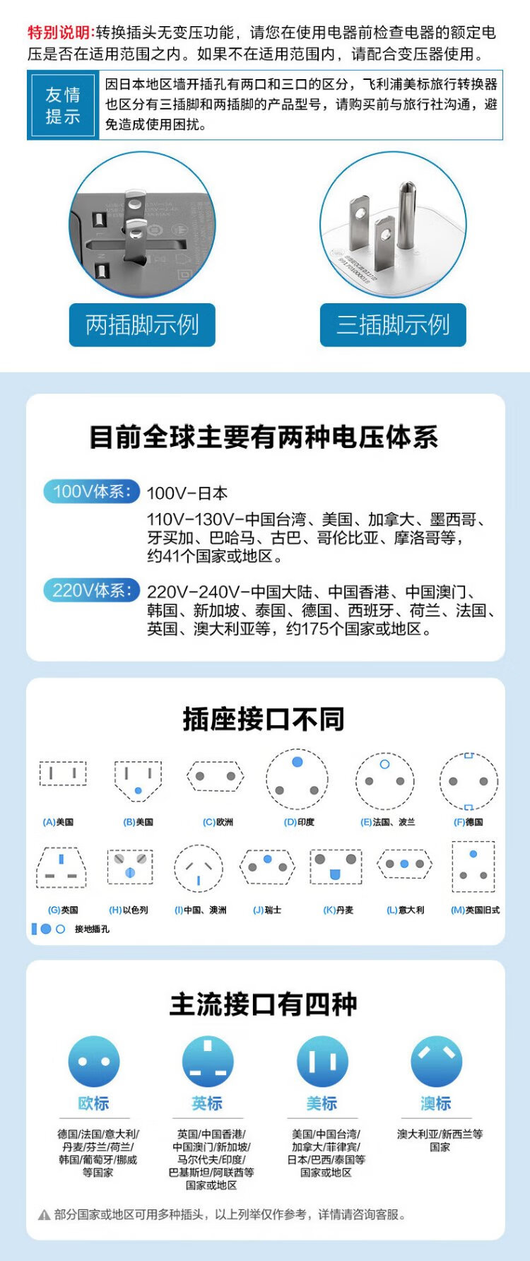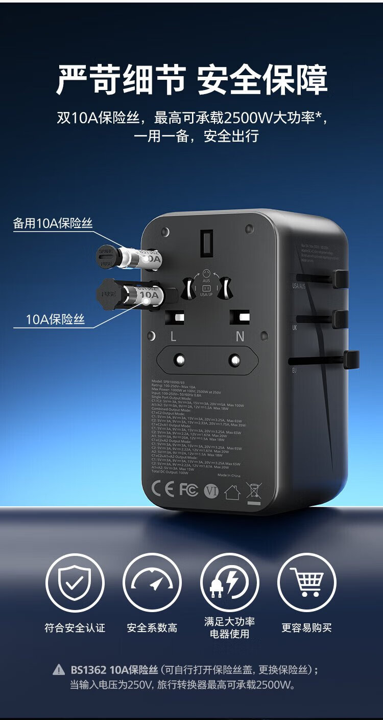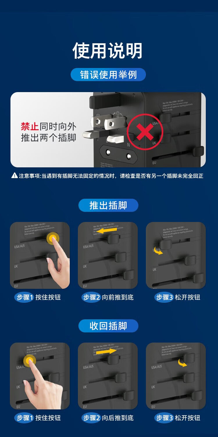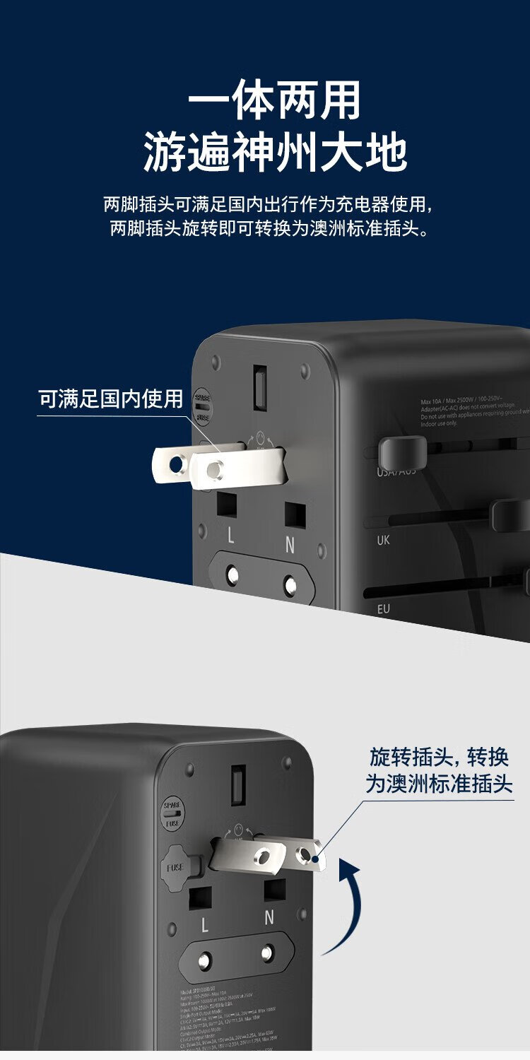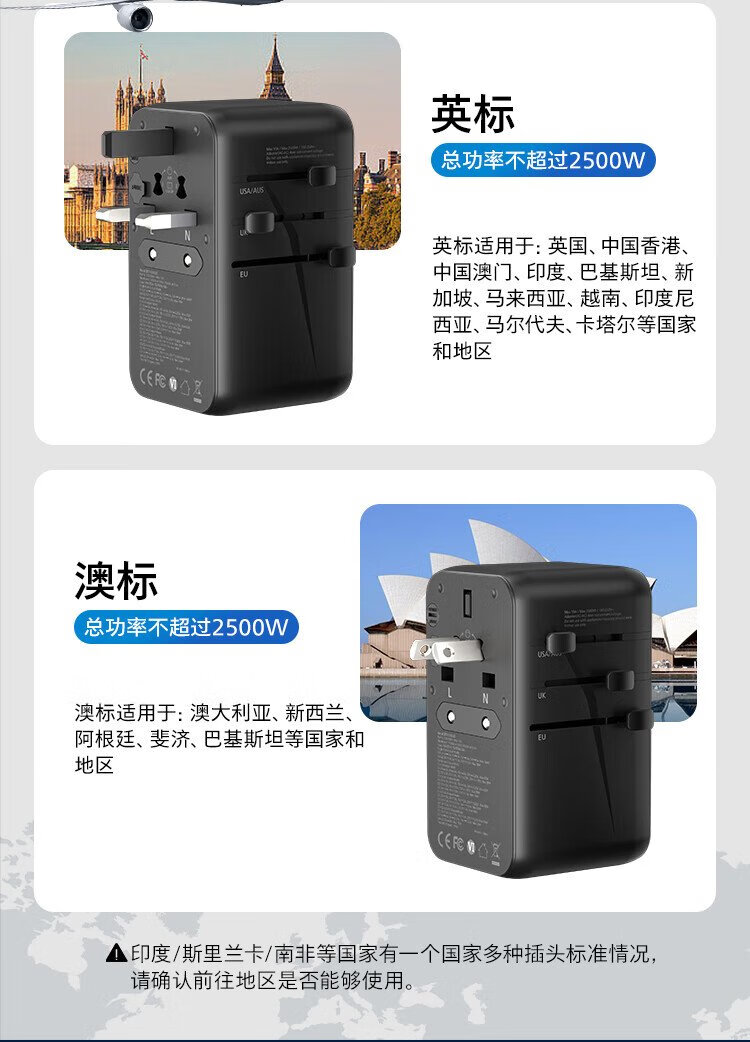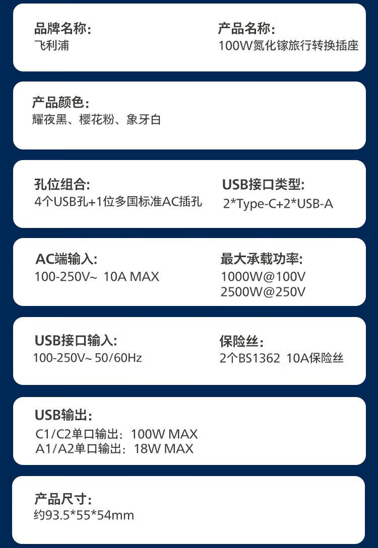 飞利浦(PHILIPS)转换插头留学多国旅行全球通用插头转换器氮化镓100WPD快充笔记本USB港澳日韩东南亚欧洲美澳英标