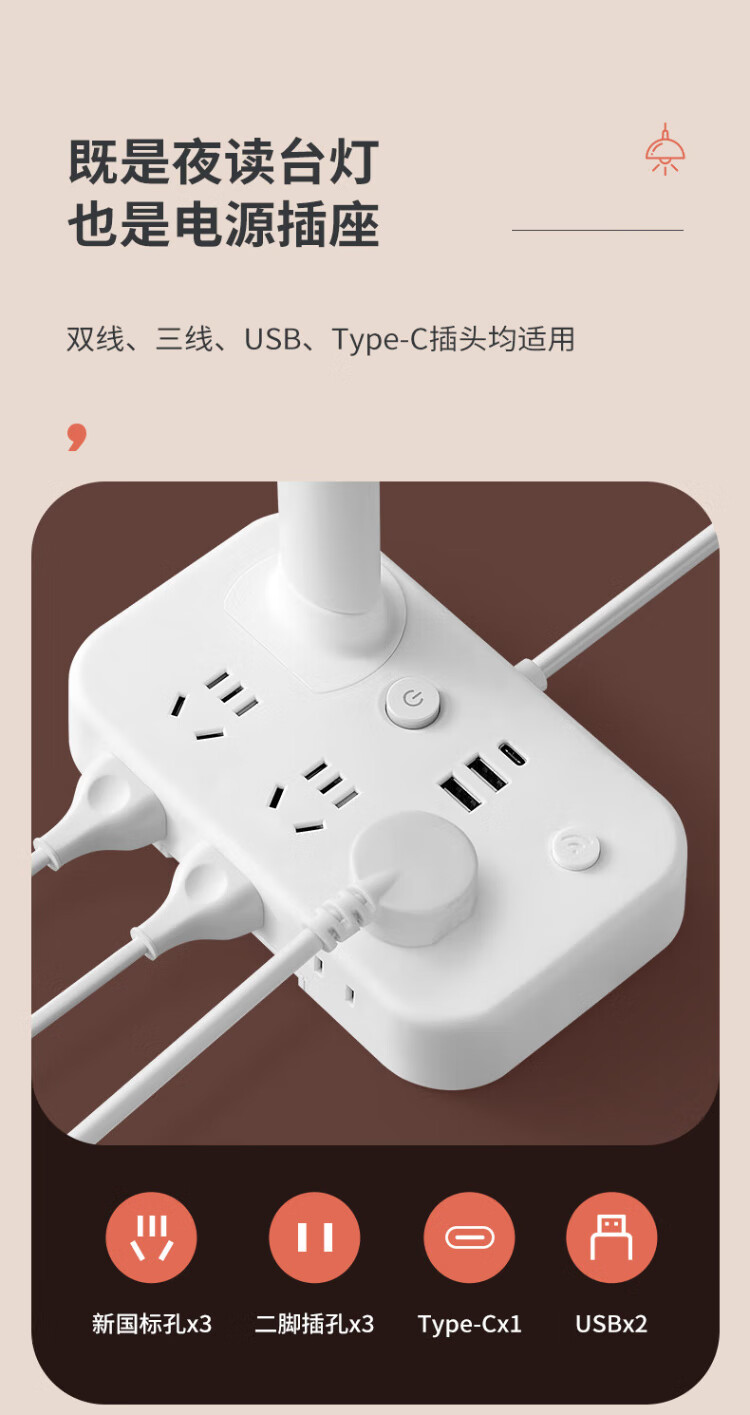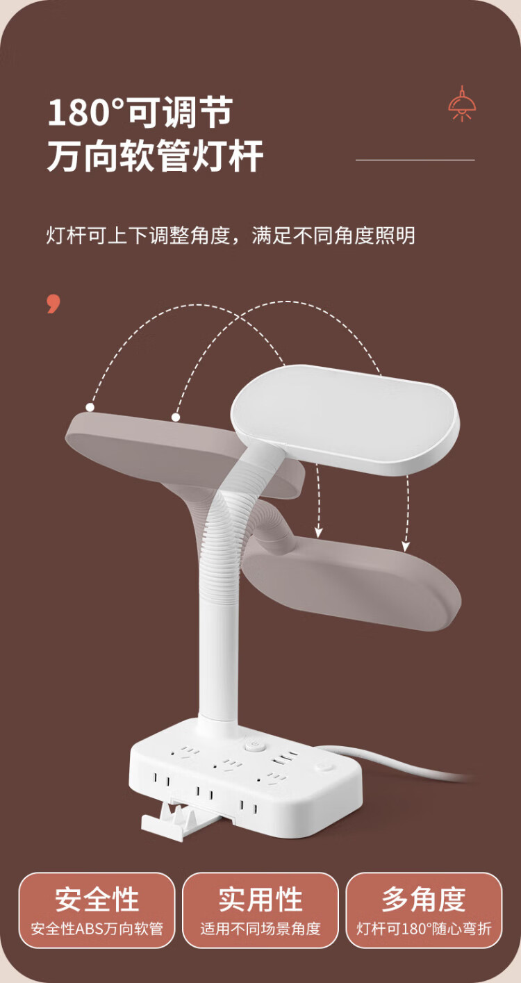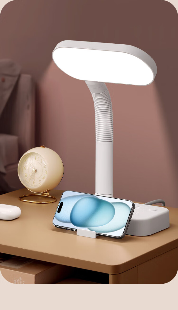 Sushi Helmo Allzweck-Lernbeleuchtung, LED-Tischlampe + Steckdose, Schüler-Lese-Dual-Modus, multifunktionale USB-Buchse 1,8 Meter, Aufladen am Schlafzimmerbett integriert