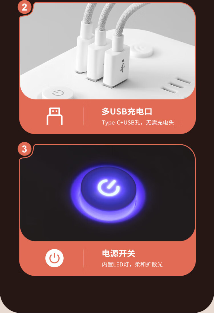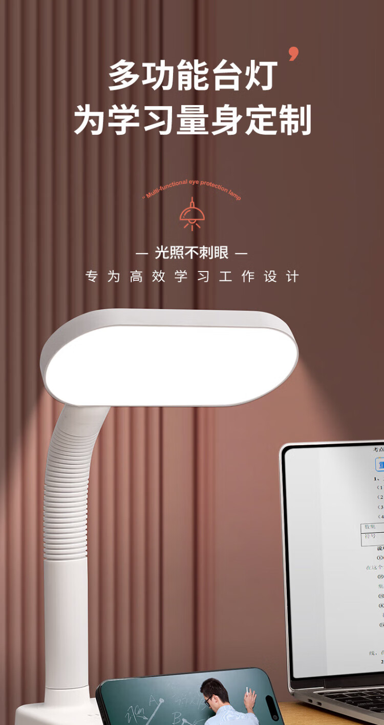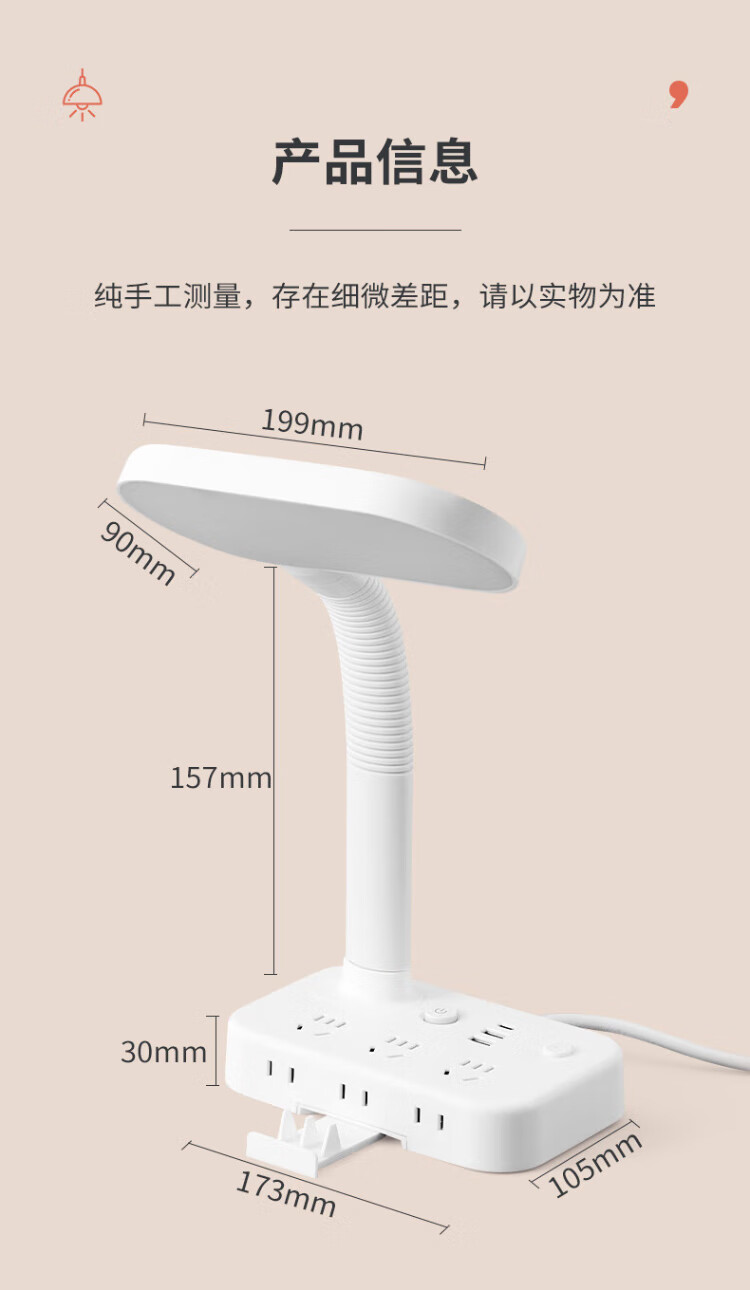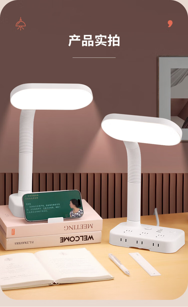 Sushi Helmo Allzweck-Lernbeleuchtung, LED-Tischlampe + Steckdose, Schüler-Lese-Dual-Modus, multifunktionale USB-Buchse 1,8 Meter, Aufladen am Schlafzimmerbett integriert