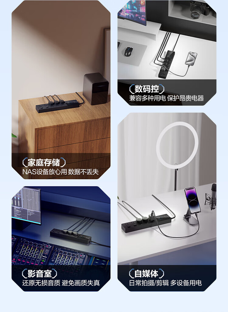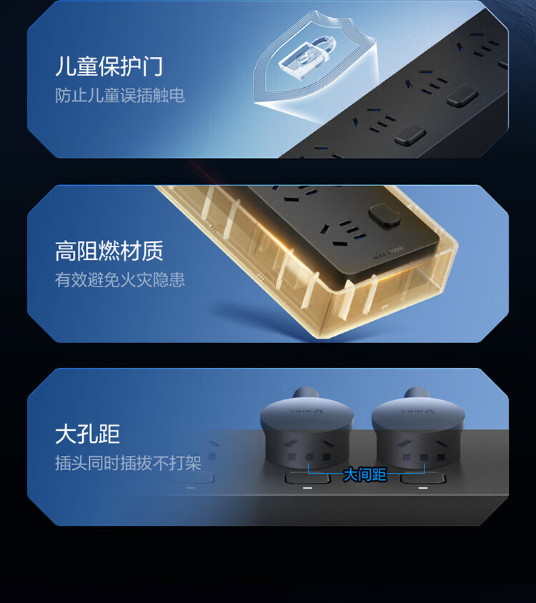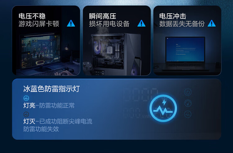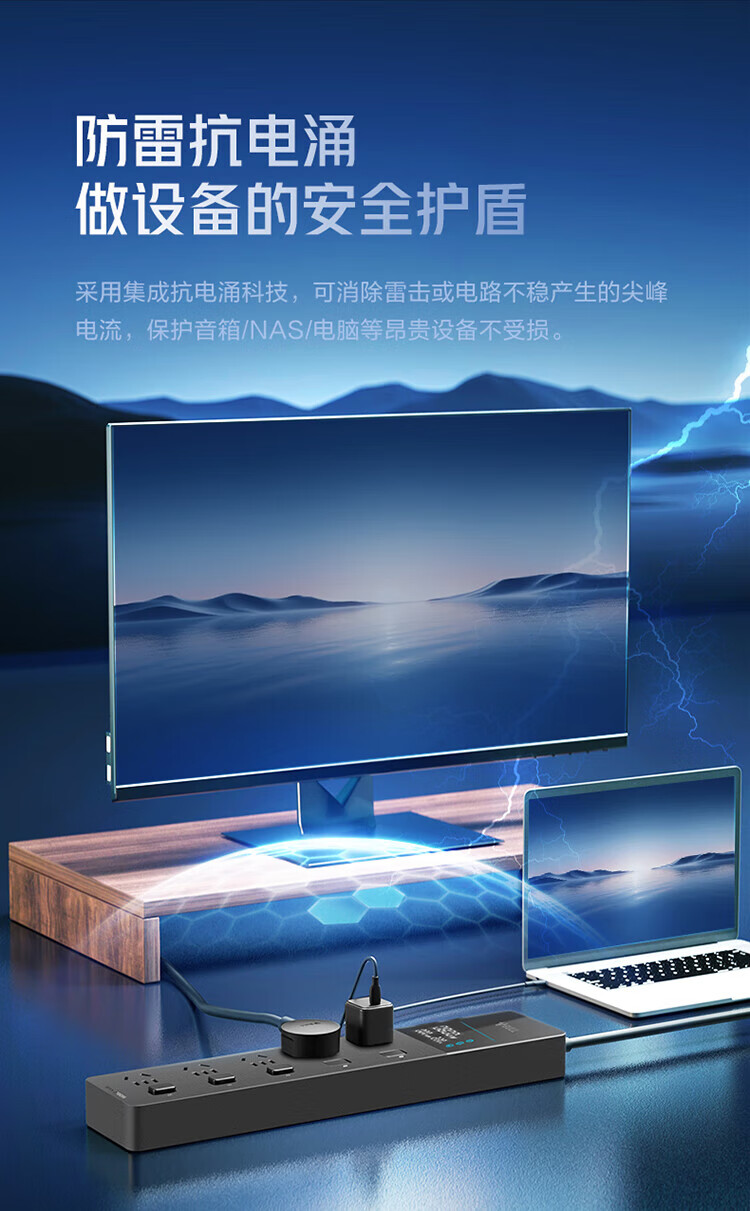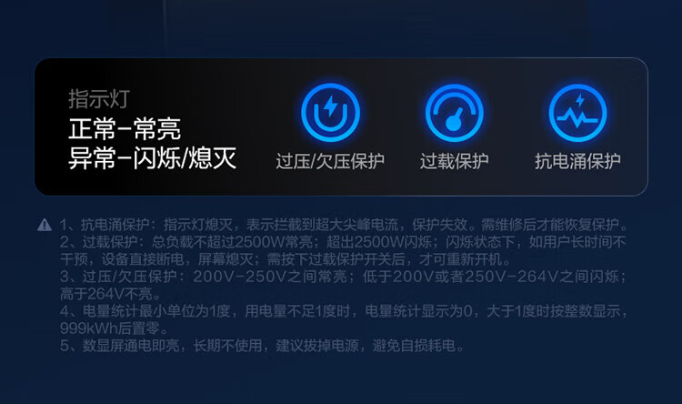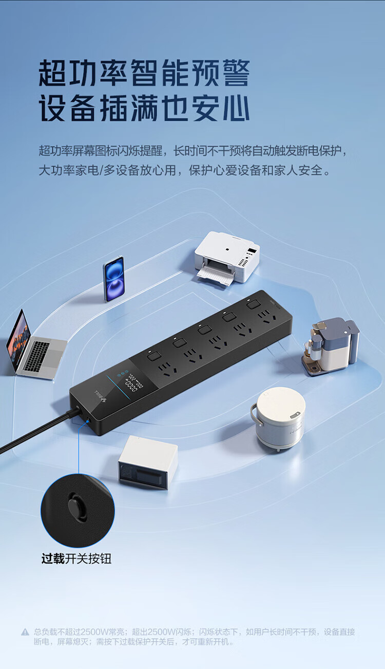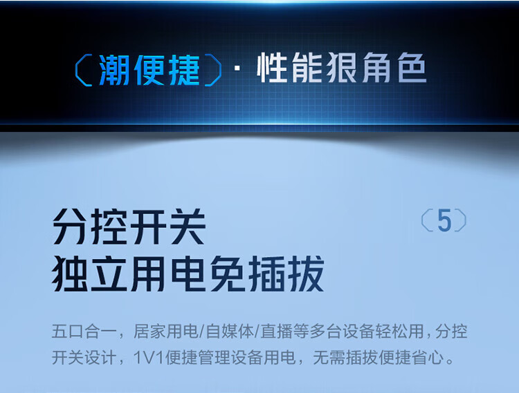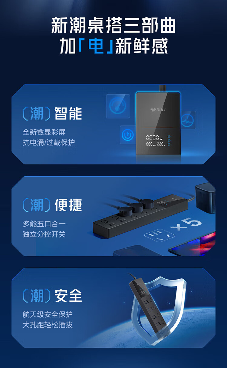 BULL intelligent digital display anti-surge and lightning protection overload protection socket/socket board/socket strip/socket strip/wiring board 5-position sub-control switch with total length of 1.8 meters GNV-UK105F