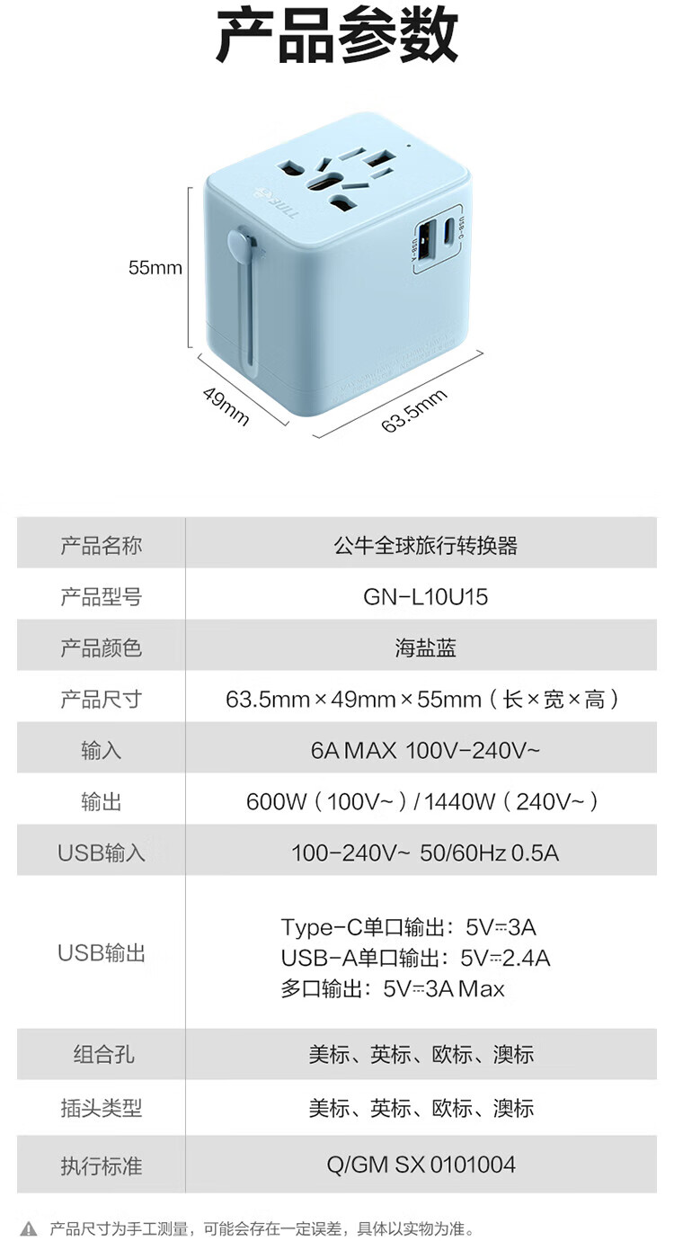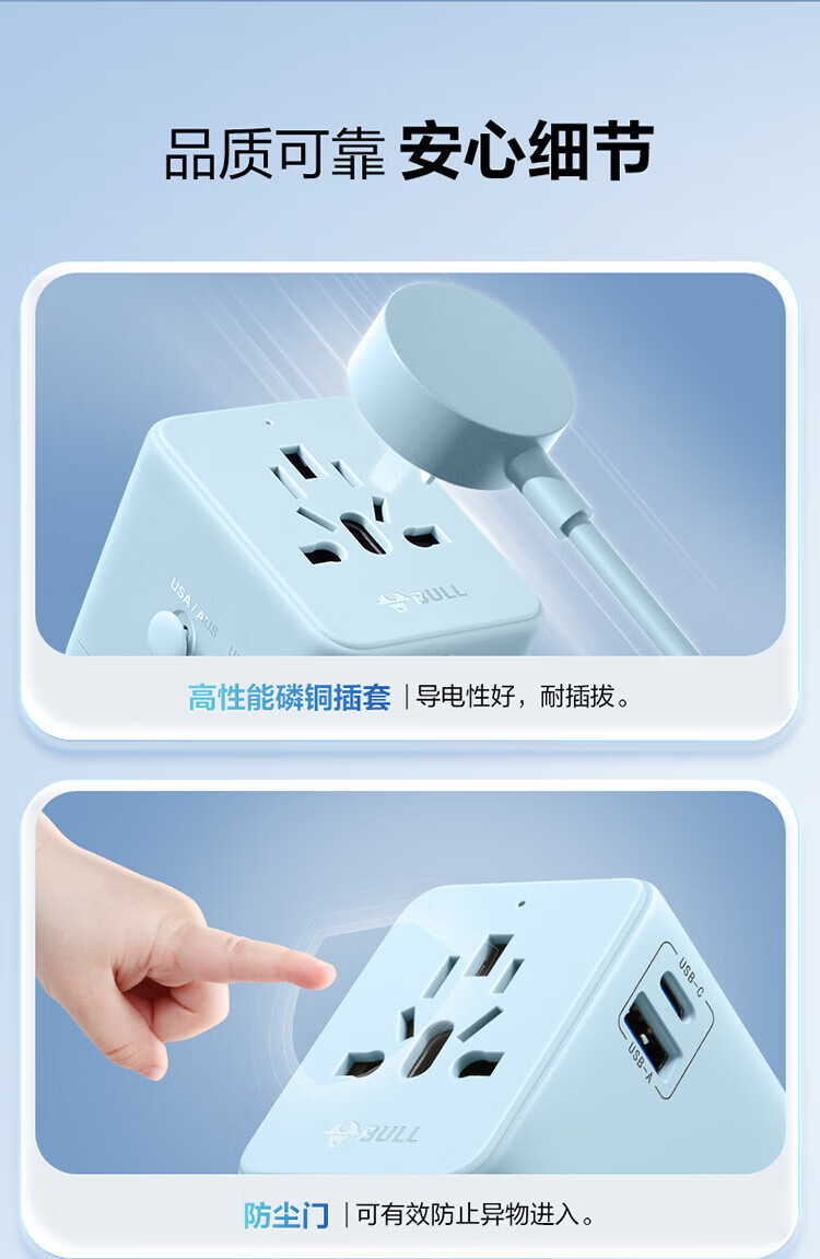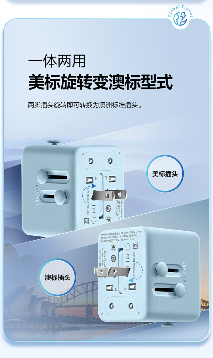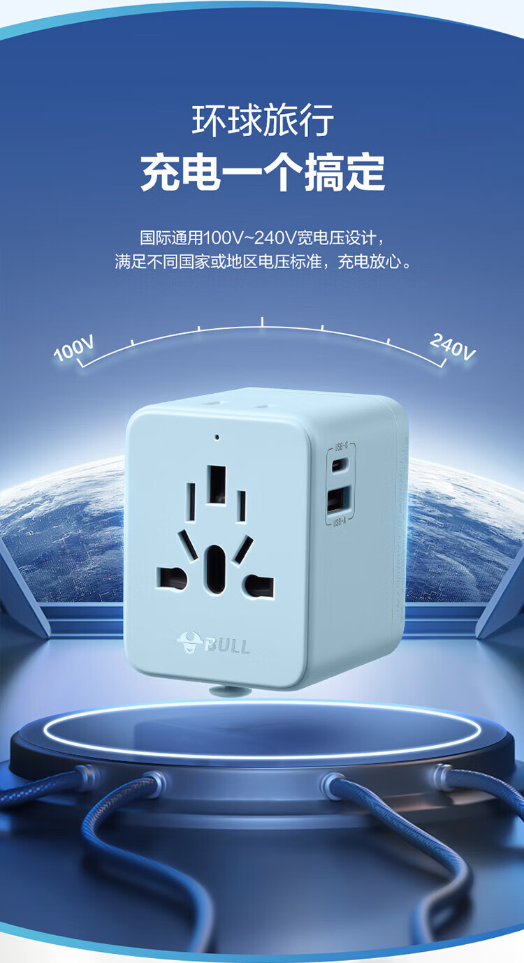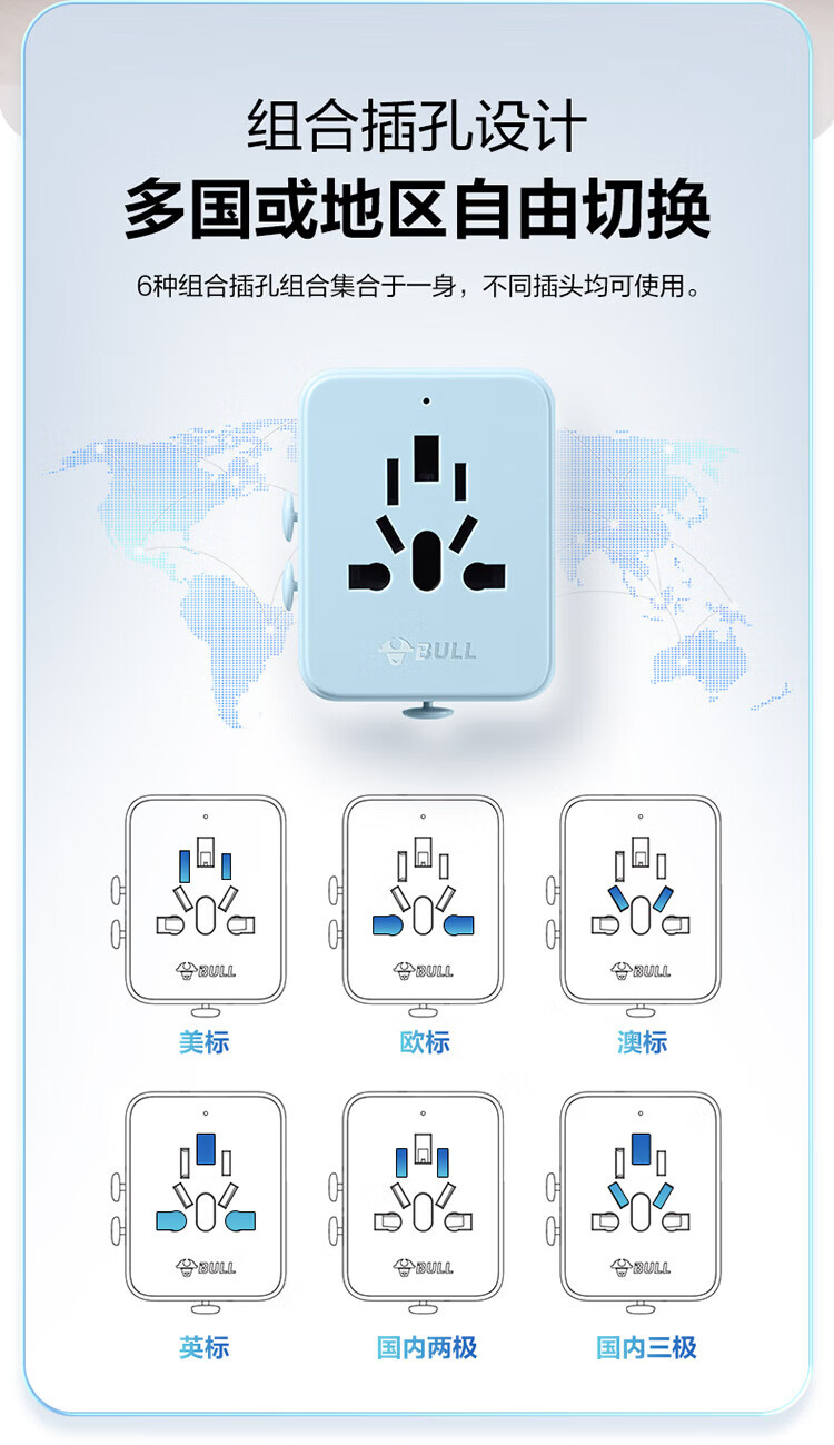 BULL 15W USB multinationale Reisesteckdose/Globaler Universal-Konverter-Steckerkonverter ausländischer und einiger Regionen europäischer Standard amerikanischer Standard australischer Standard britischer Standard GN-L10U15 ohne Schalter