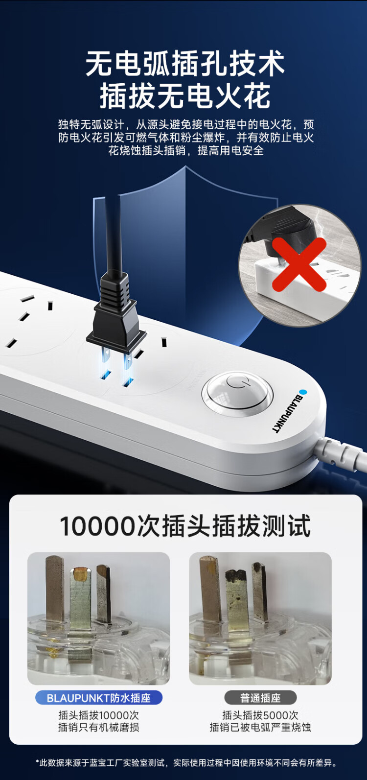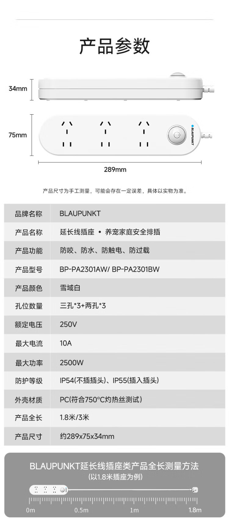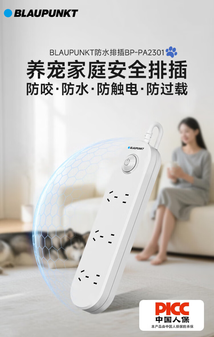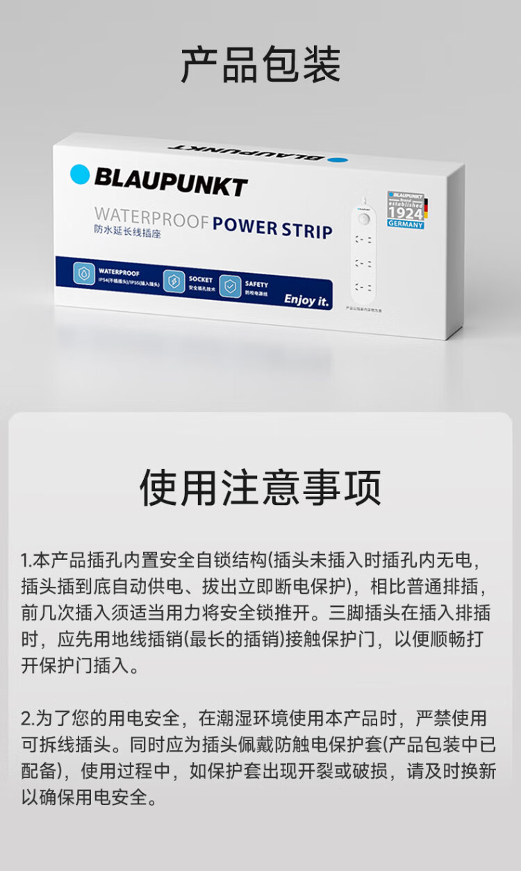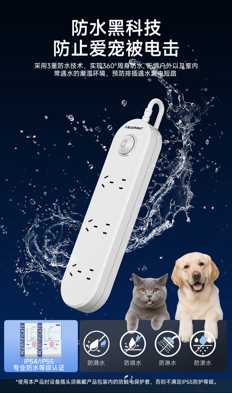 BLAUPUNKT regleta/enchufe impermeable nuevo estándar nacional regleta de seguridad de cinco orificios baño inodoro al aire libre antichoque regleta de alimentación y tira de arrastre de 1,8 metros