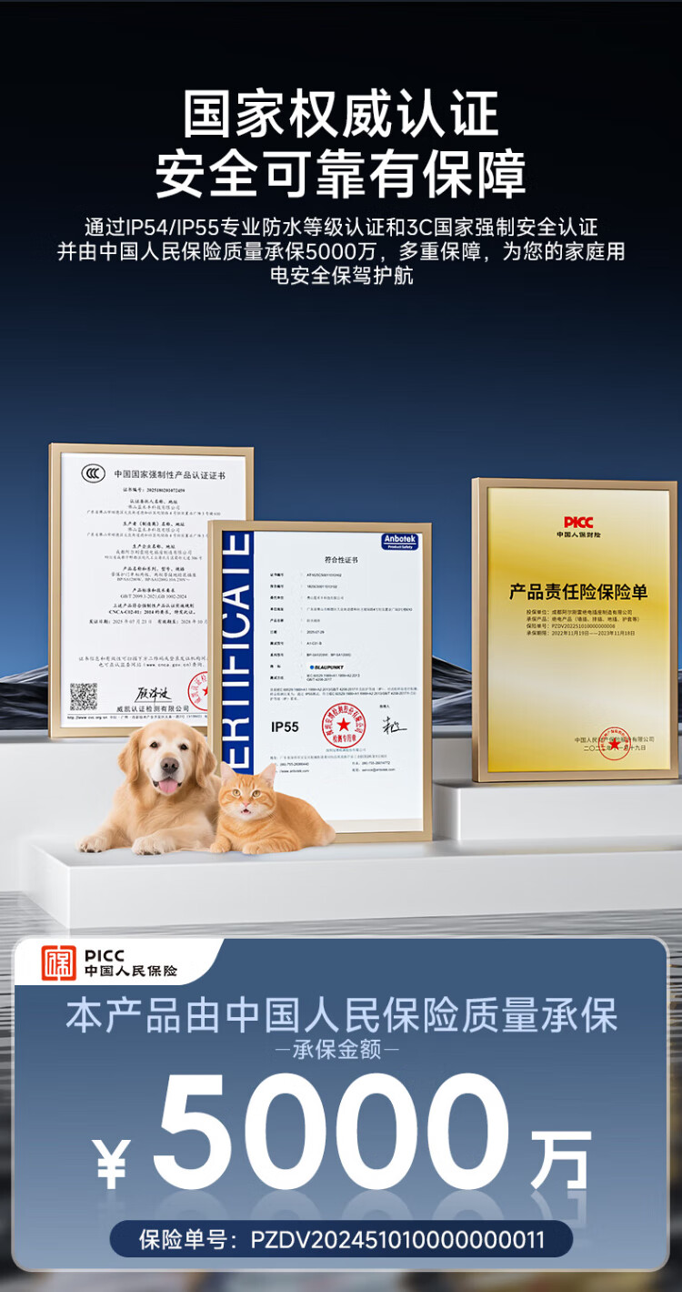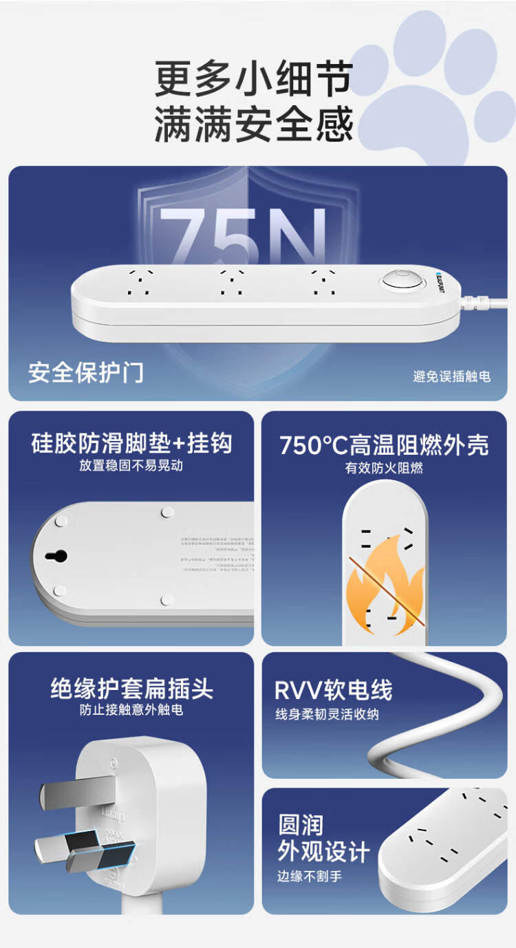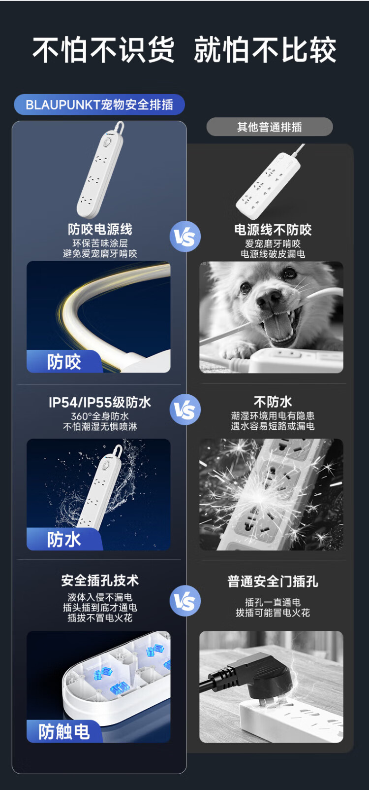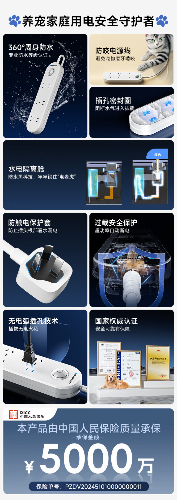 BLAUPUNKT regleta/enchufe impermeable nuevo estándar nacional regleta de seguridad de cinco orificios baño inodoro al aire libre antichoque regleta de alimentación y tira de arrastre de 1,8 metros