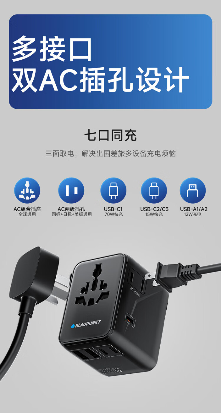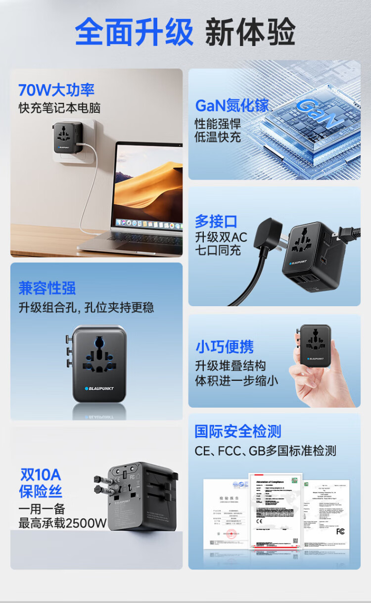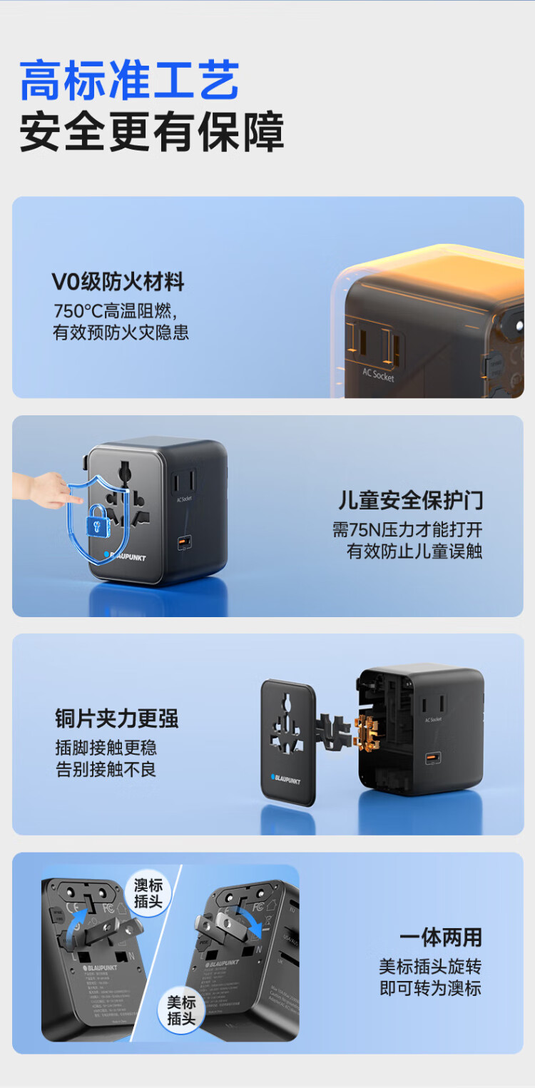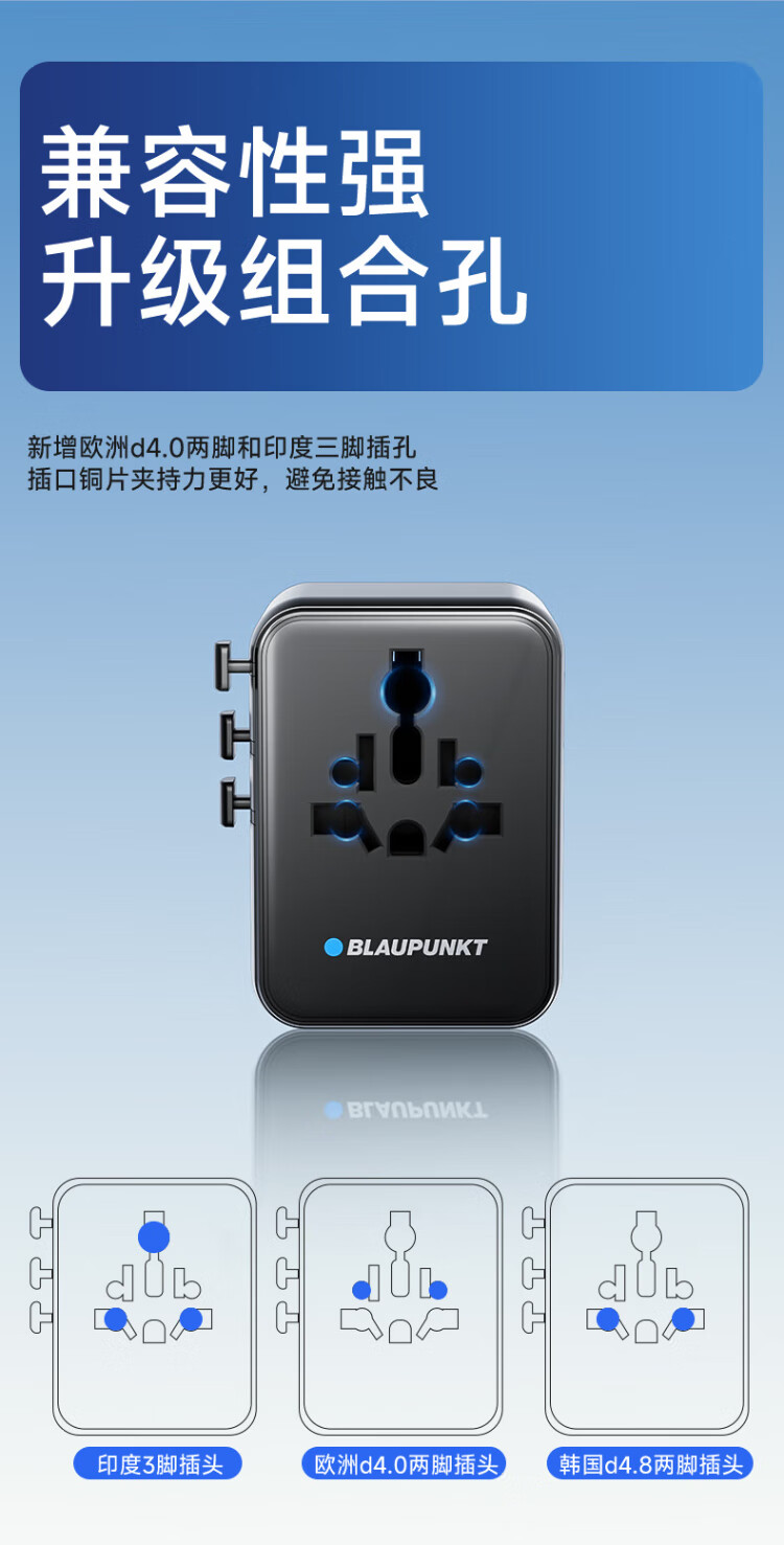 BLAUPUNKT Konvertierungsstecker Universal/Internationaler Steckerkonverter/Universal-Ladesteckdosenadapter/Britischer Standard USA, Australien, Europa, Japan, Südkorea, Hongkong, Macau, Thailand, Singapur