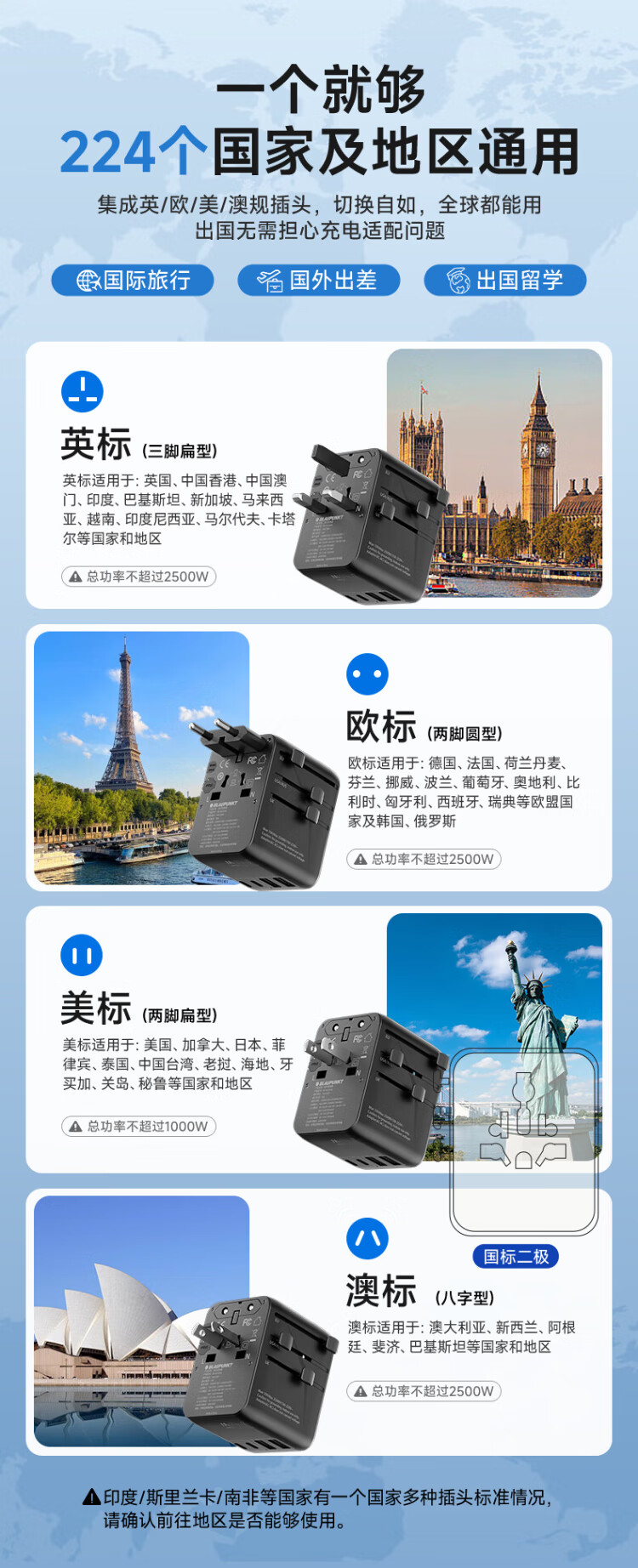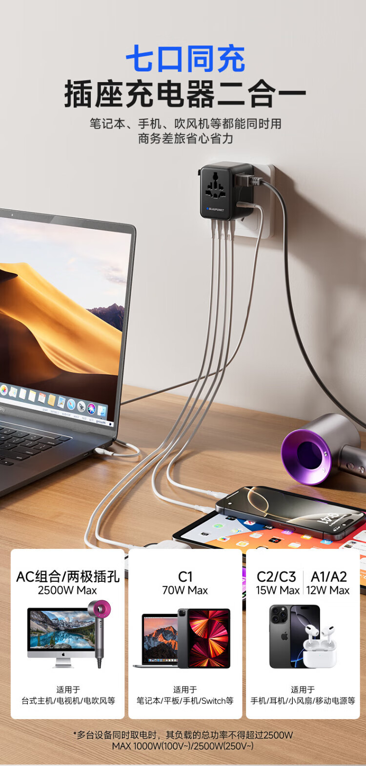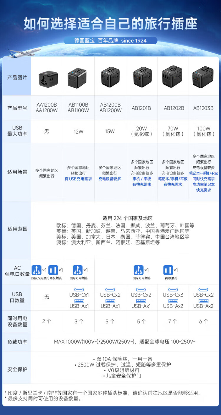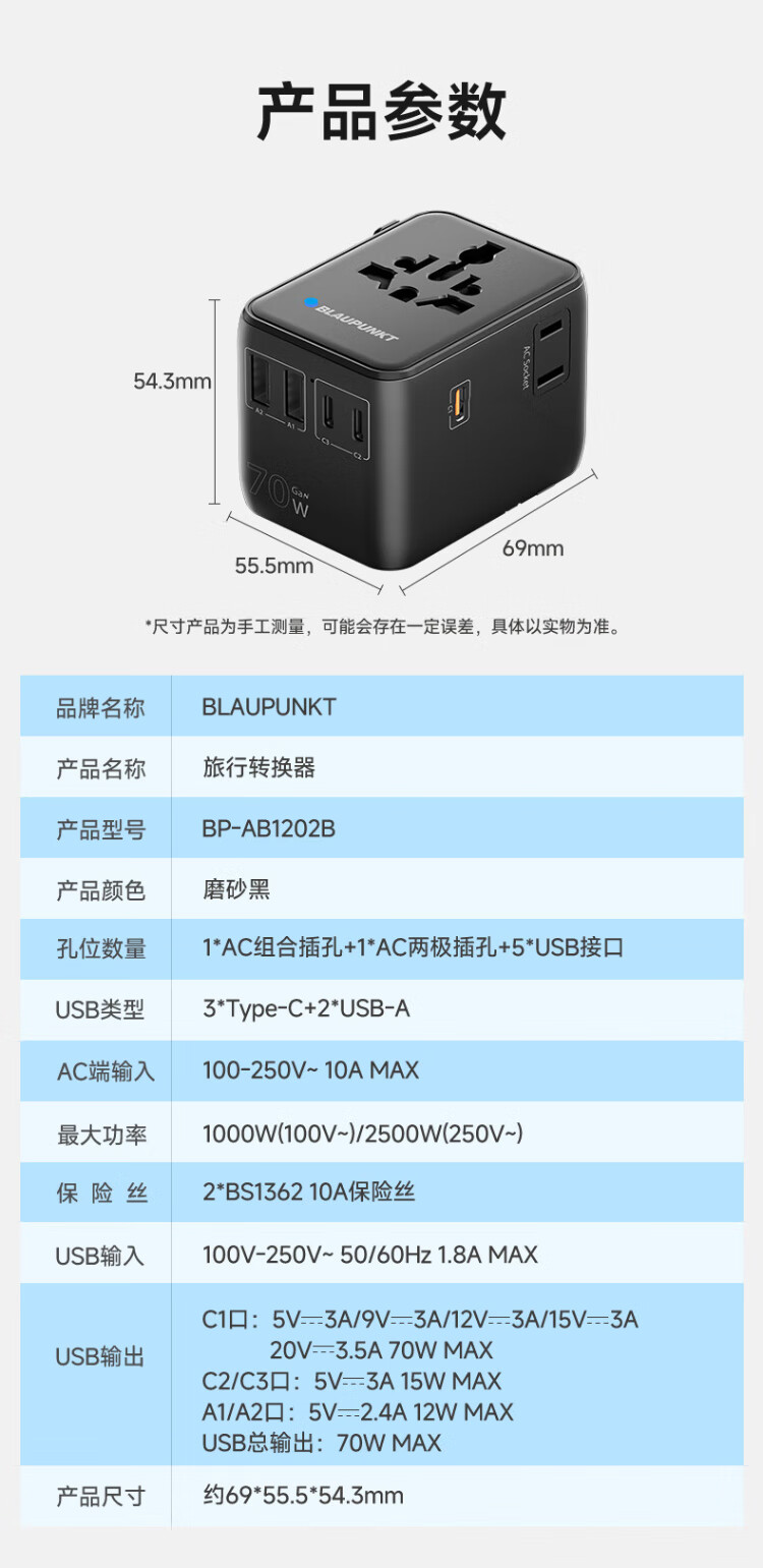 BLAUPUNKT Konvertierungsstecker Universal/Internationaler Steckerkonverter/Universal-Ladesteckdosenadapter/Britischer Standard USA, Australien, Europa, Japan, Südkorea, Hongkong, Macau, Thailand, Singapur