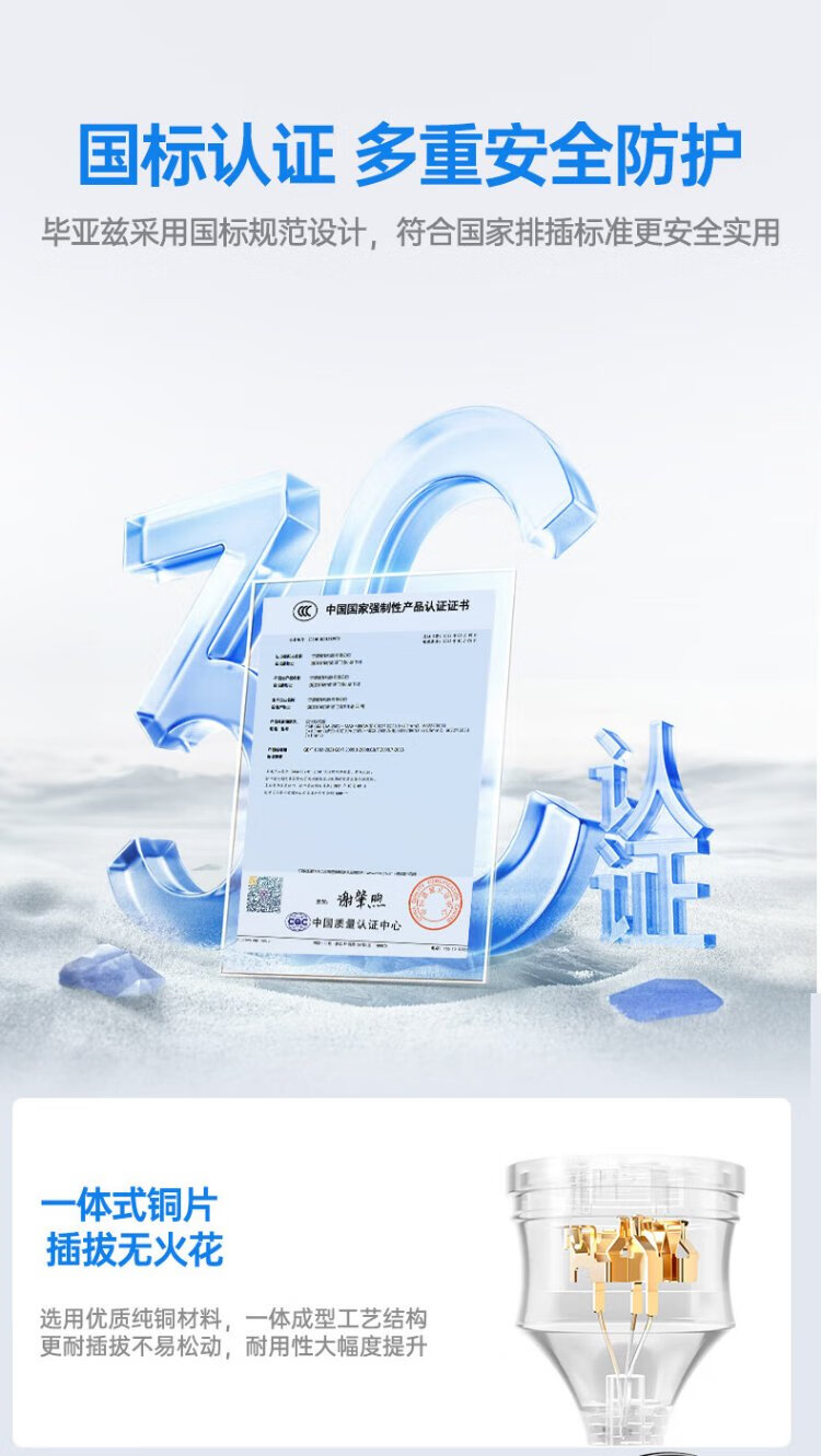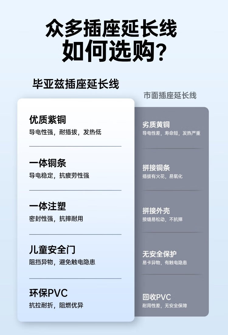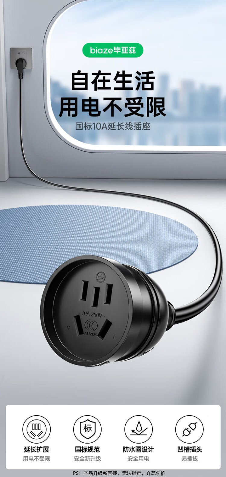 Biaz power socket extension cord/wire socket/terminal board 10A three-hole/five-hole three-plug electric vehicle charging extension cord new national standard plug-in board/plug strip/row plug total length 1 meter