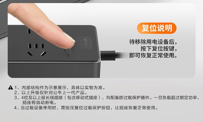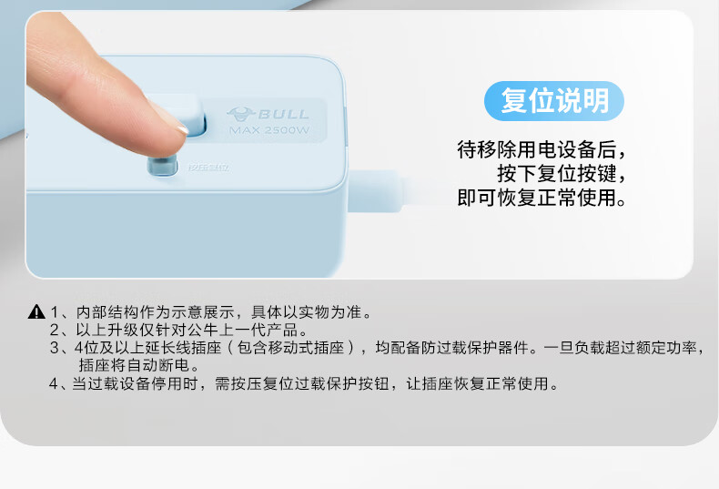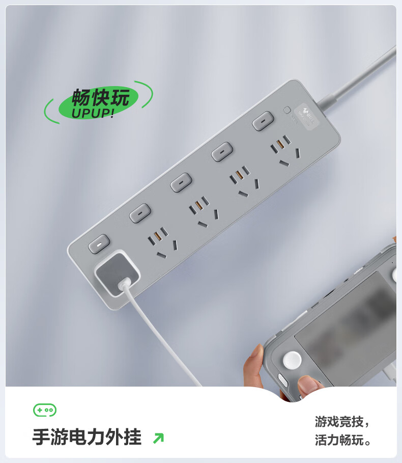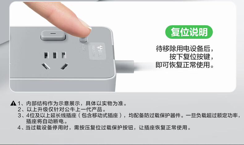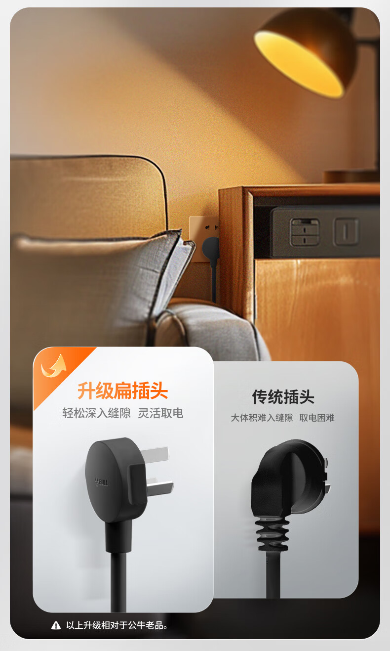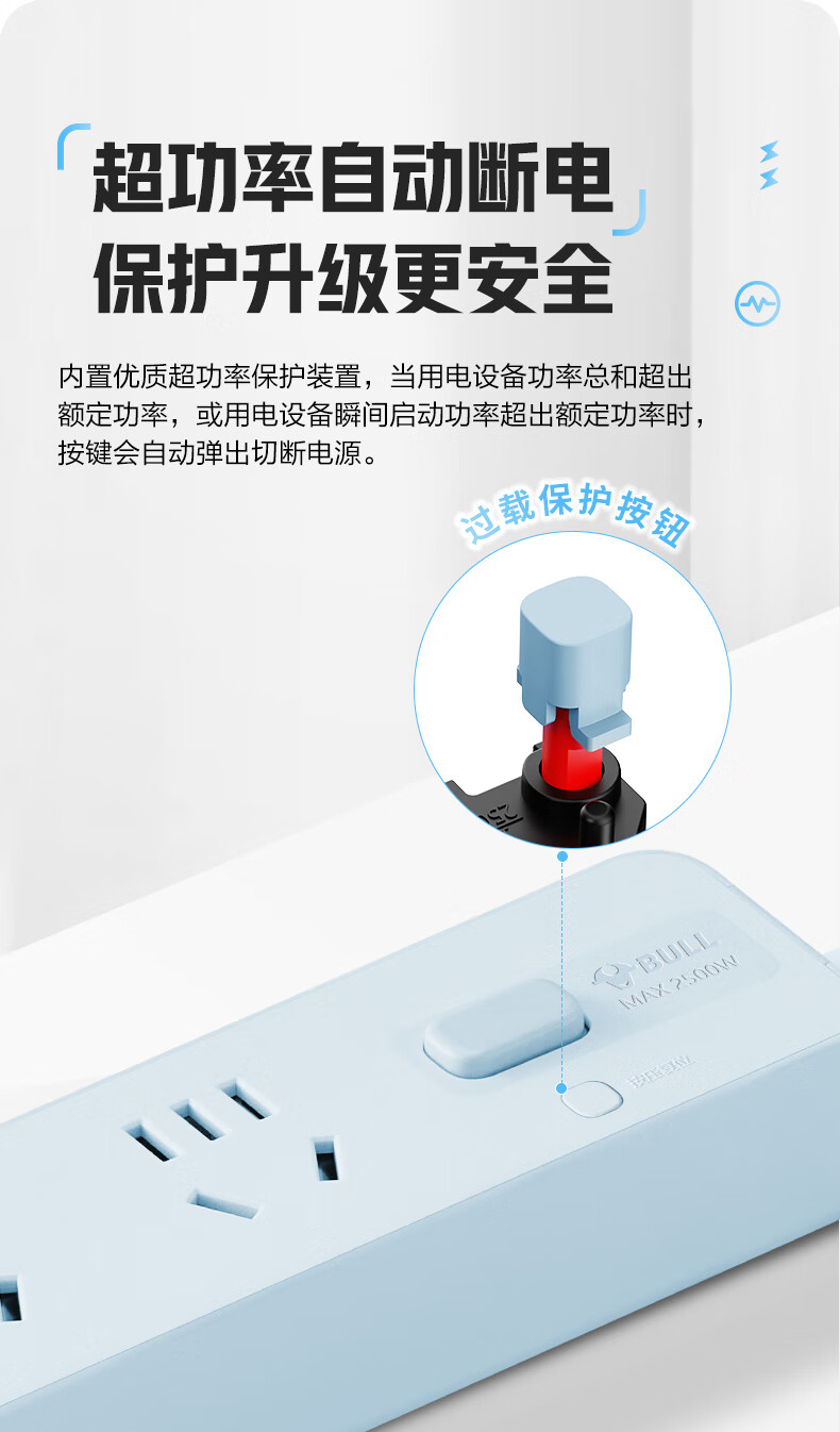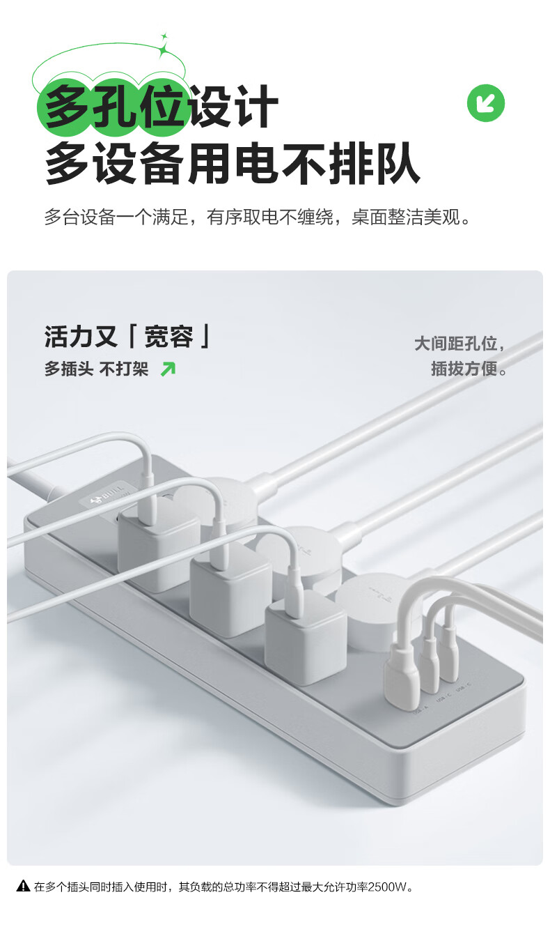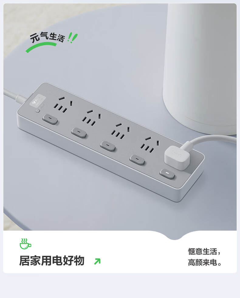 Bull (BULL) socket basic model master control switch drag strip porous long line multi-functional electrical plug-in board with child protection door/new national standard/row plug/wiring board gray Z generation series four-socket master control 1 meter-Z1221J meteorite gray