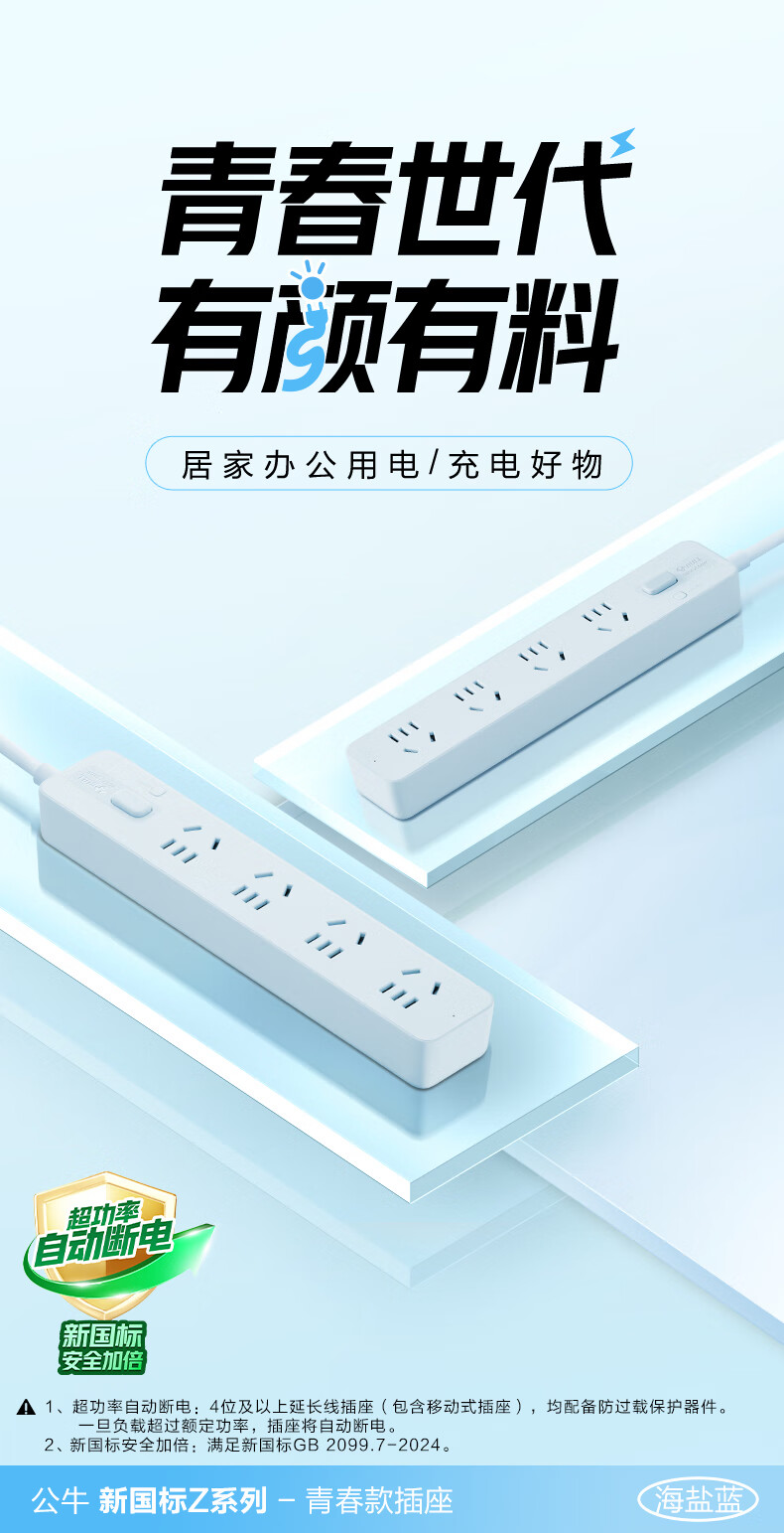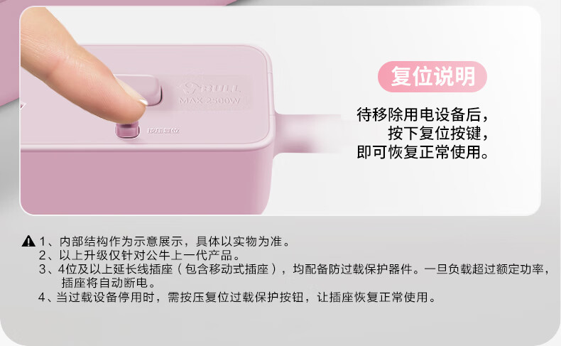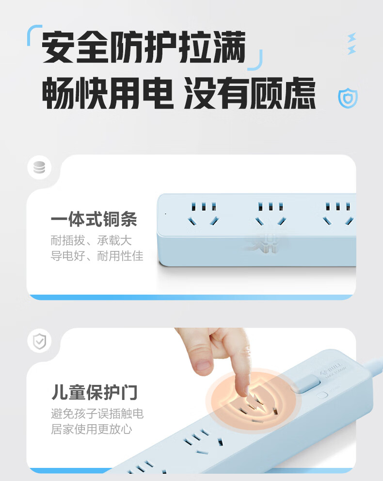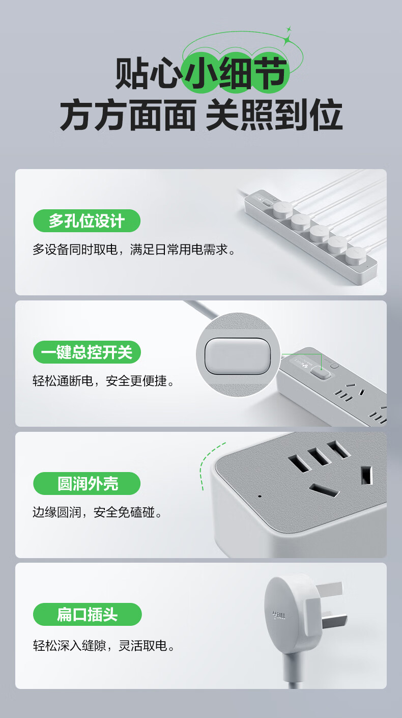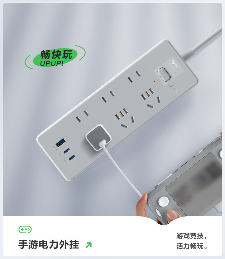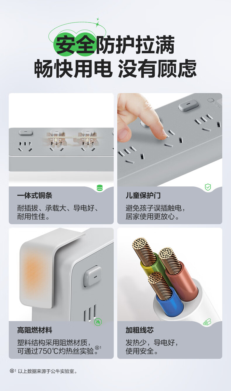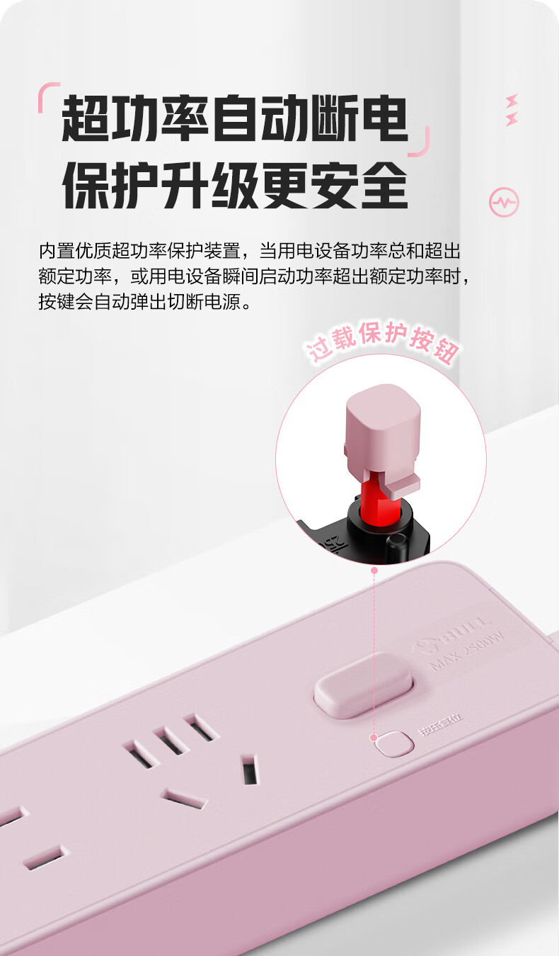 Bull (BULL) socket basic model master control switch drag strip porous long line multi-functional electrical plug-in board with child protection door/new national standard/row plug/wiring board gray Z generation series four-socket master control 1 meter-Z1221J meteorite gray