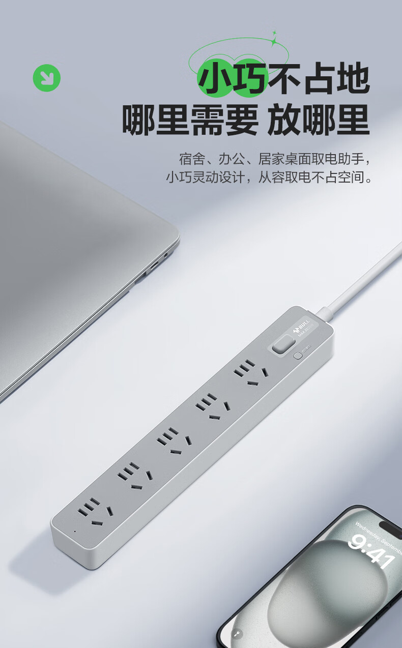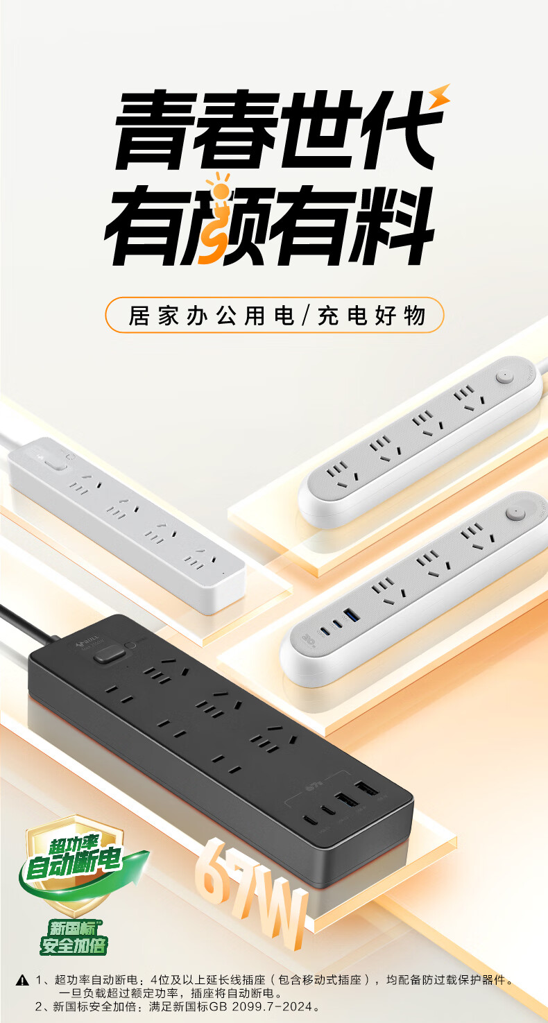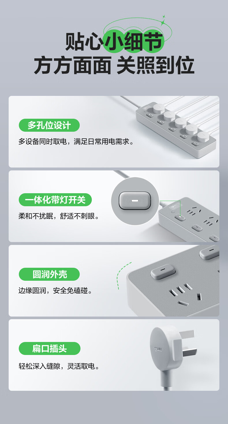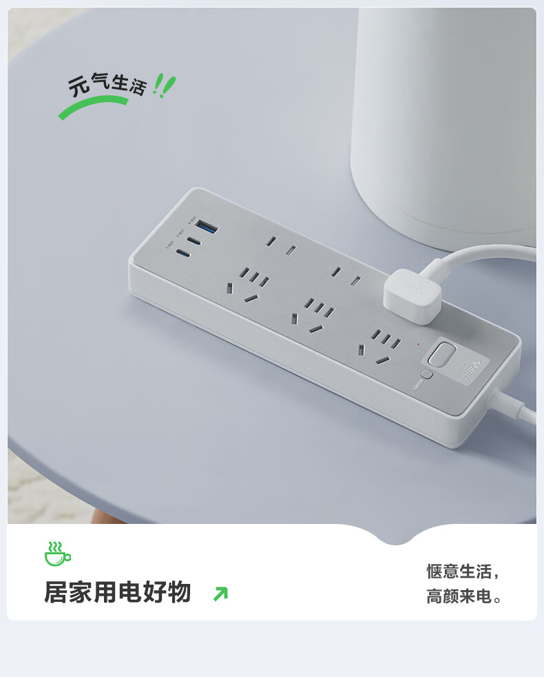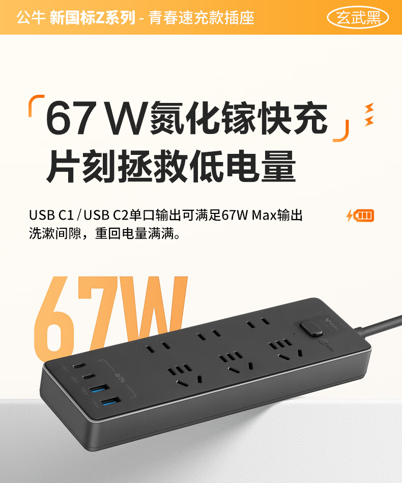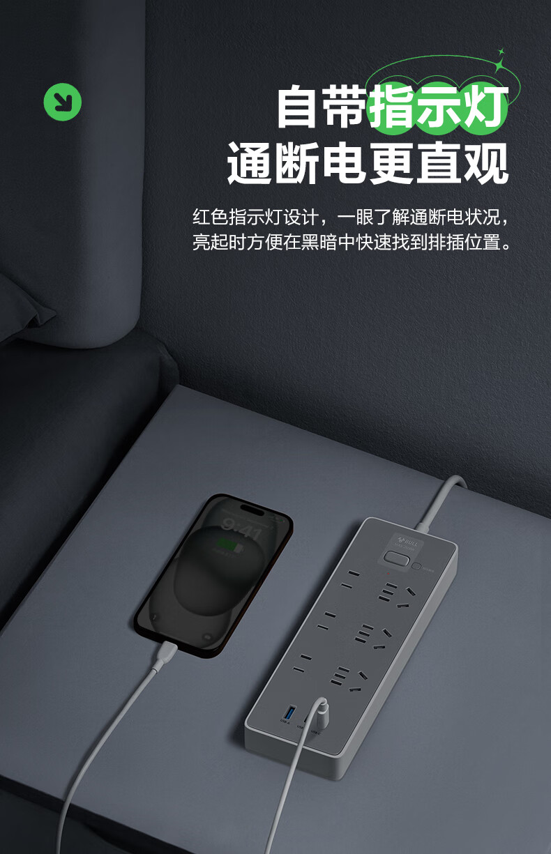 Bull (BULL) socket basic model master control switch drag strip porous long line multi-functional electrical plug-in board with child protection door/new national standard/row plug/wiring board gray Z generation series four-socket master control 1 meter-Z1221J meteorite gray