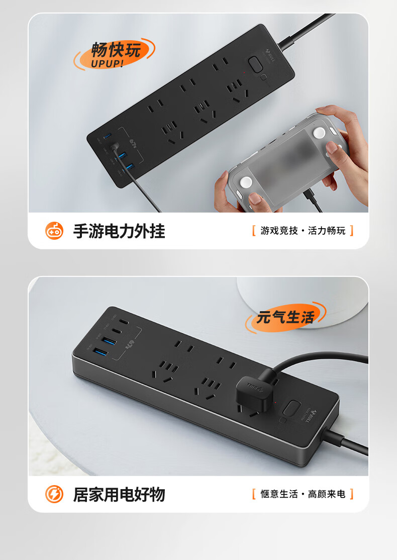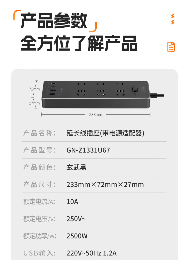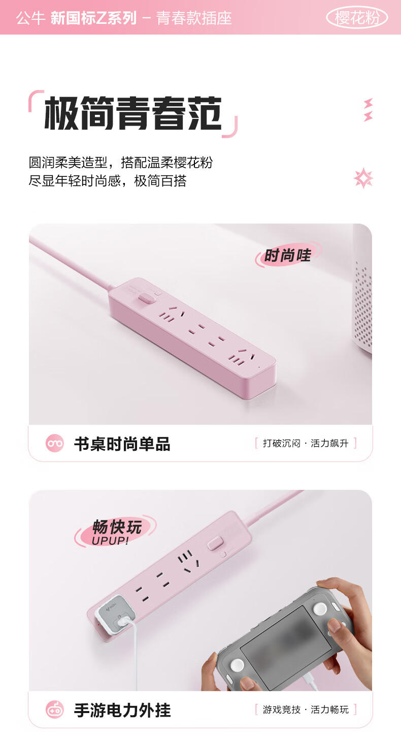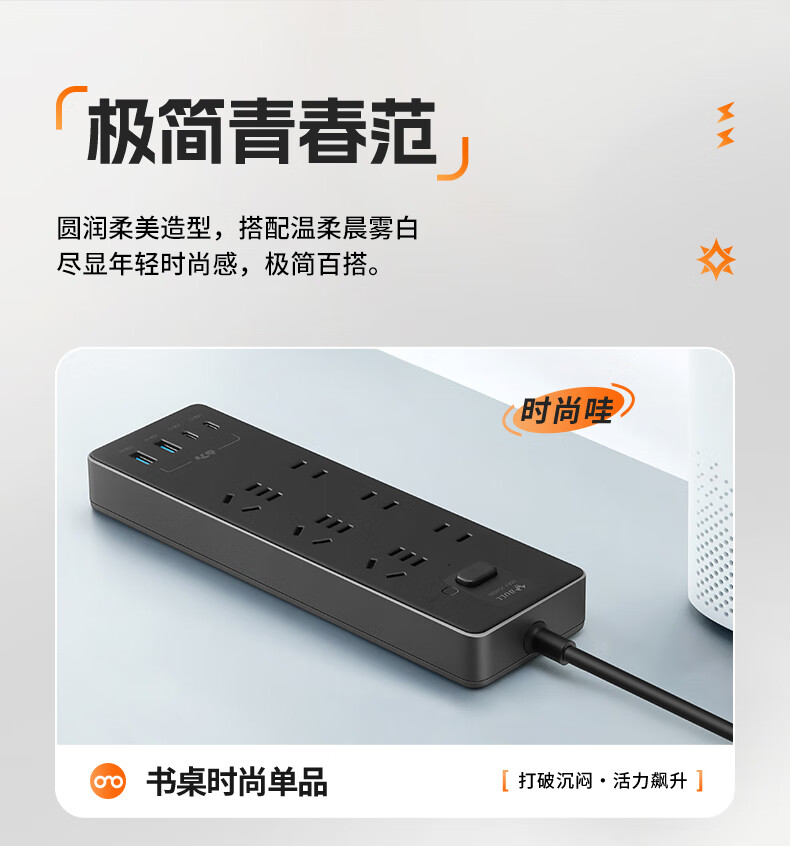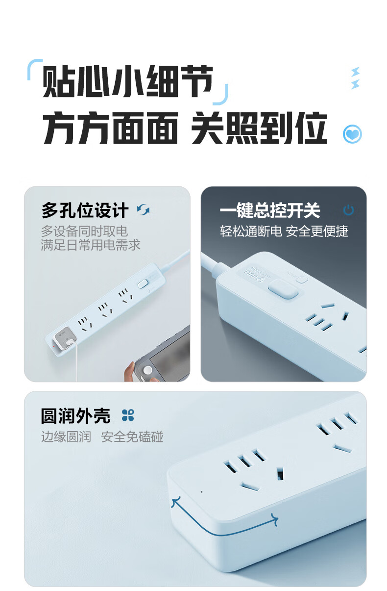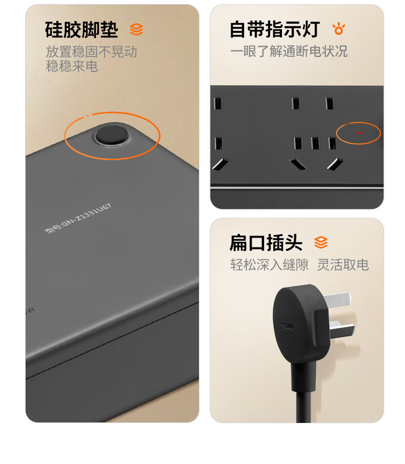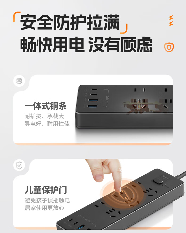 Bull (BULL) socket basic model master control switch drag strip porous long line multi-functional electrical plug-in board with child protection door/new national standard/row plug/wiring board gray Z generation series four-socket master control 1 meter-Z1221J meteorite gray