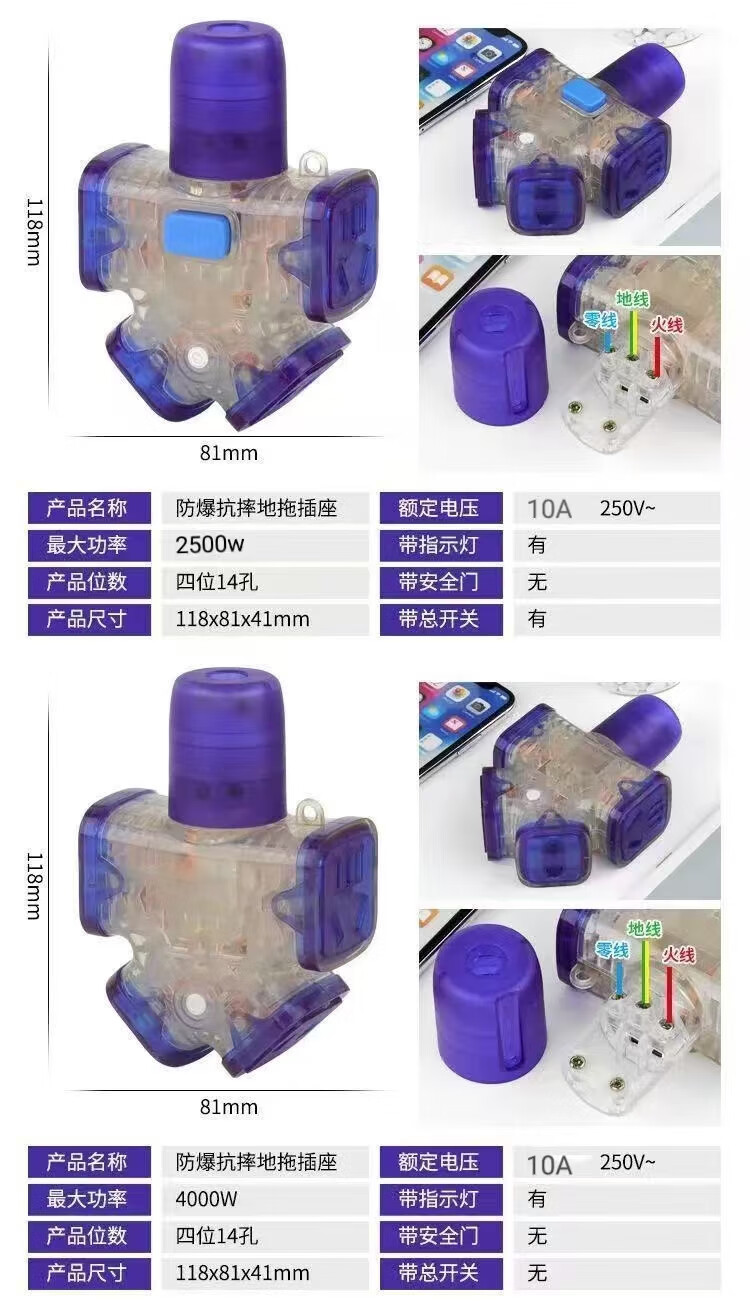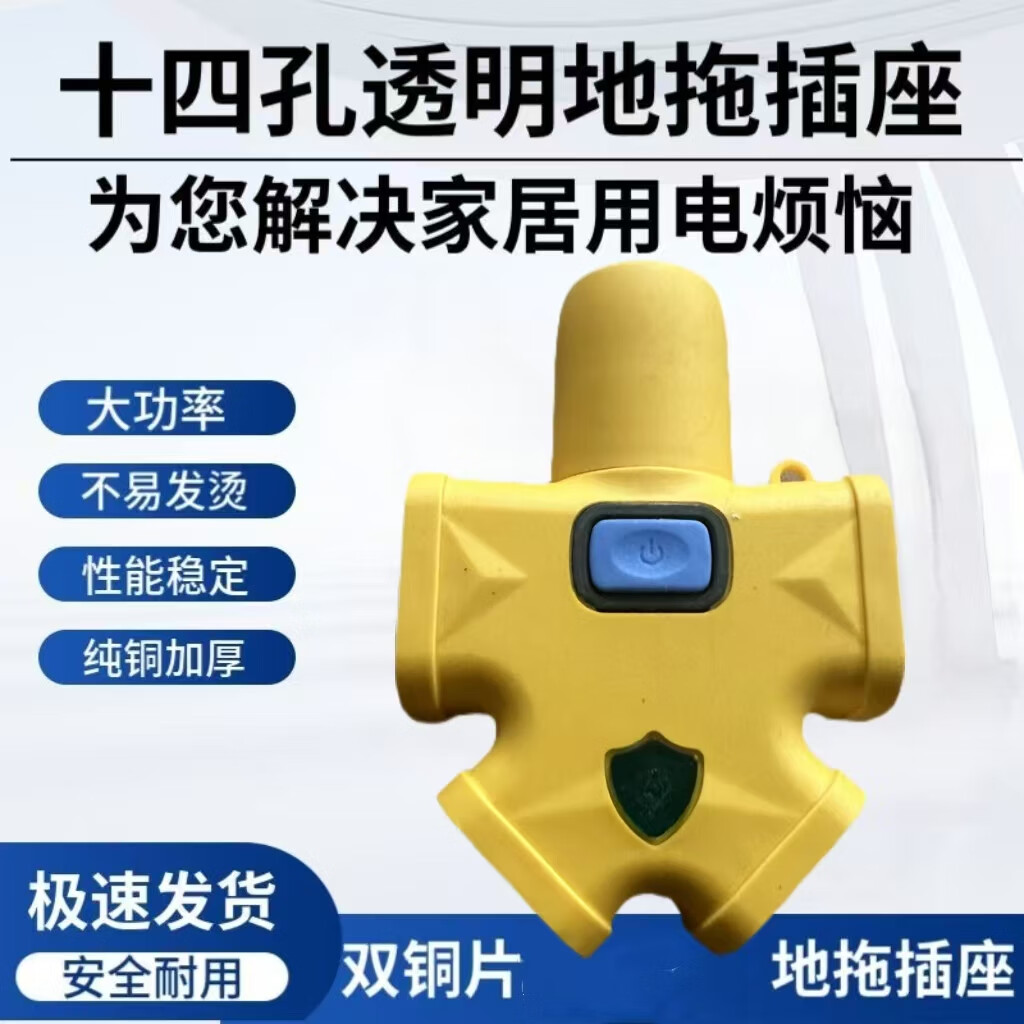 Multiprise haute puissance étanche et durable 14 trous anti-chute, anti-pression et antidéflagrant norme nationale ingénierie certifiée 3C multiprise extérieure anti-pluie pour vadrouille à câblage automatique livrée avec porte de sécurité jaune modèle sans fil 14 trous
