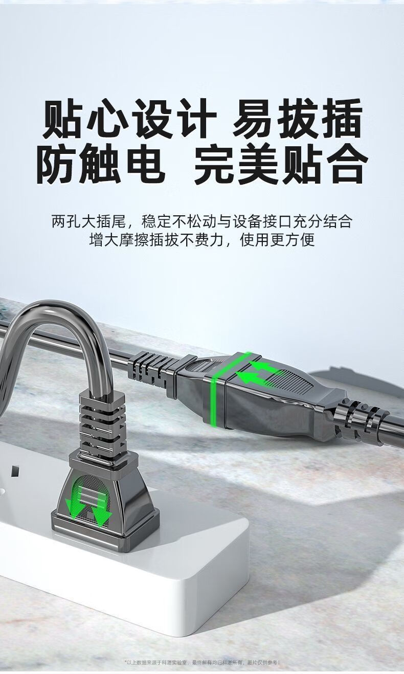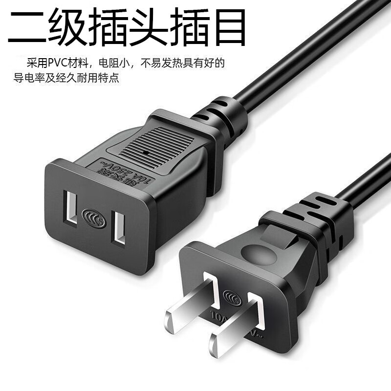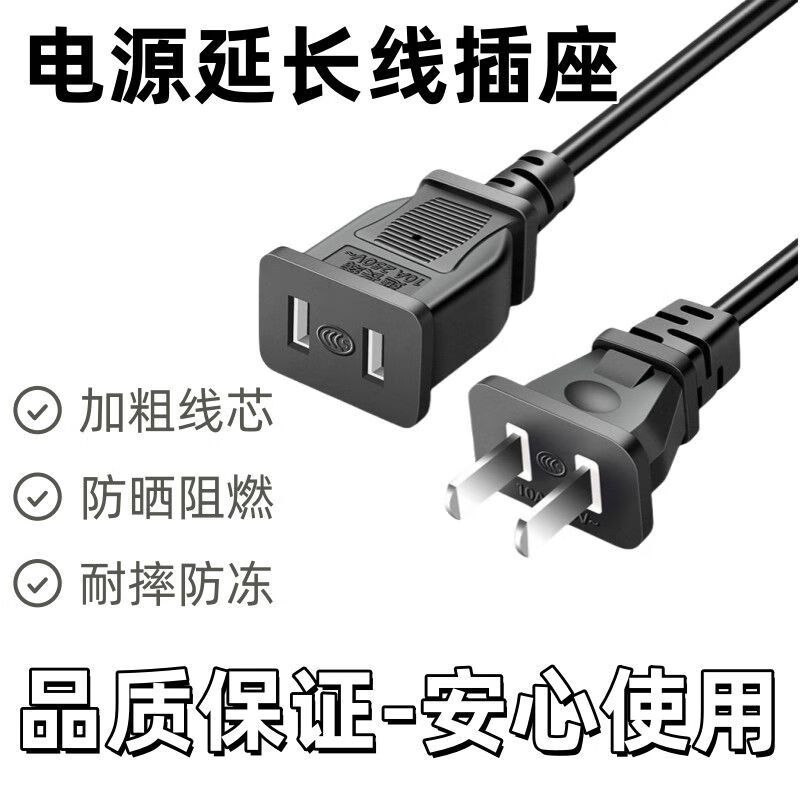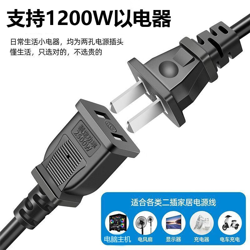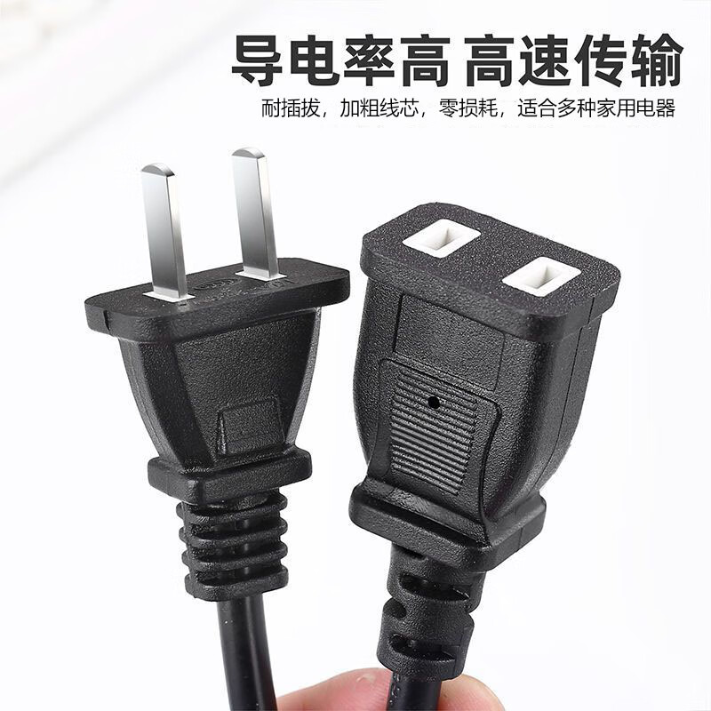 Jingdong Logistics Socket extension cord extension cord fan small ceiling fan two-hole power cord electric vehicle computer mobile phone charger extension cord straight plug into both ends black anti-freeze cord anti-aging - cord length 2 meters