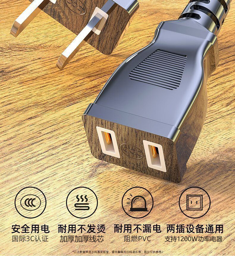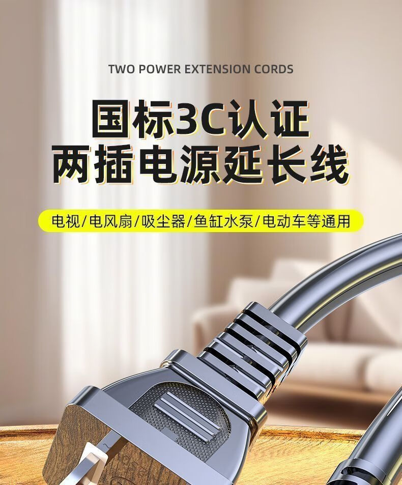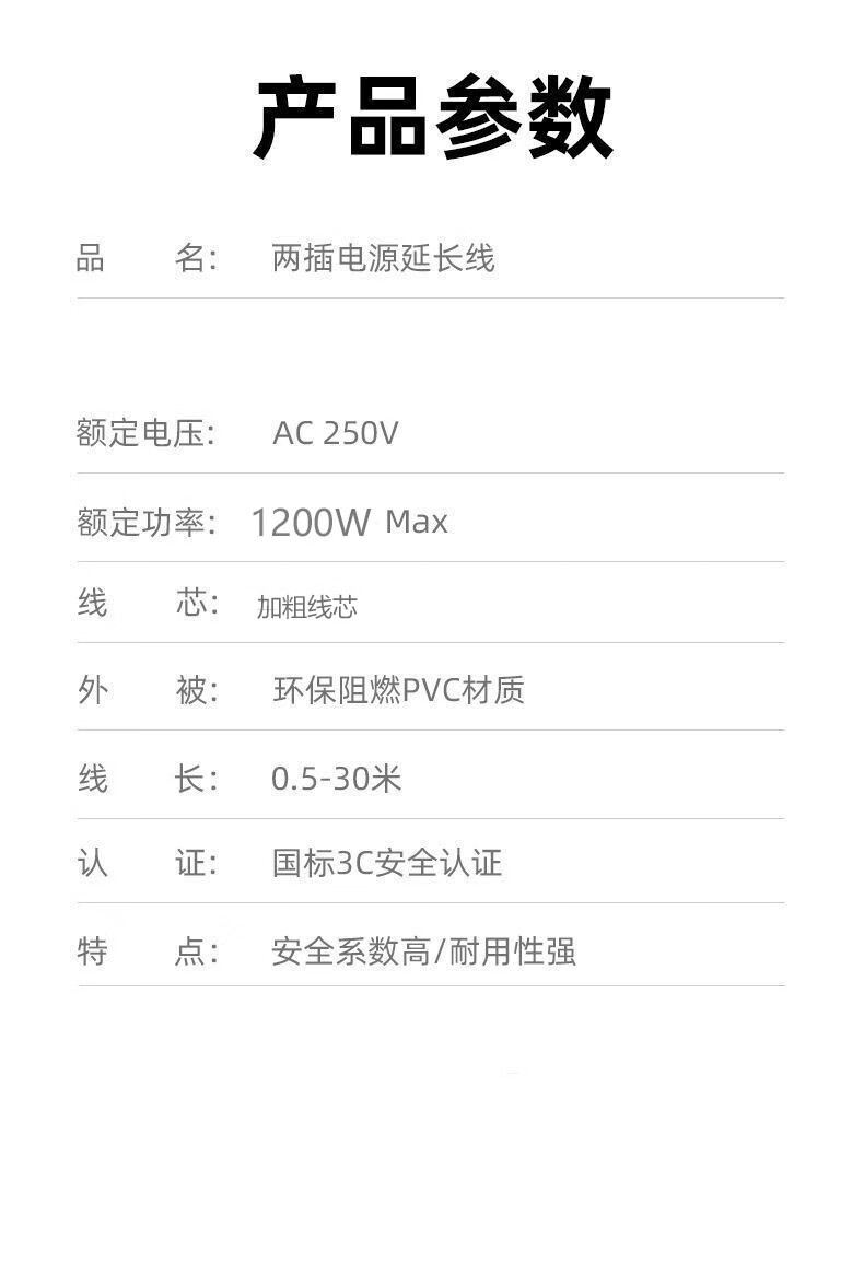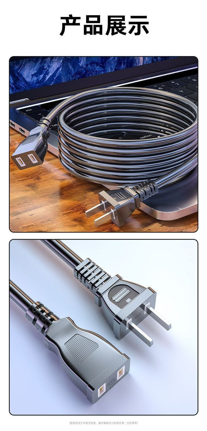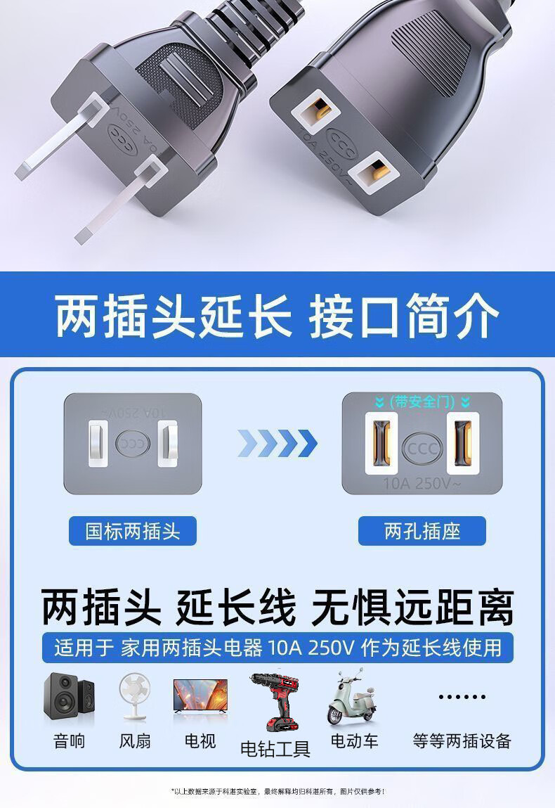 Jingdong Logistics Socket extension cord extension cord fan small ceiling fan two-hole power cord electric vehicle computer mobile phone charger extension cord straight plug into both ends black anti-freeze cord anti-aging - cord length 2 meters