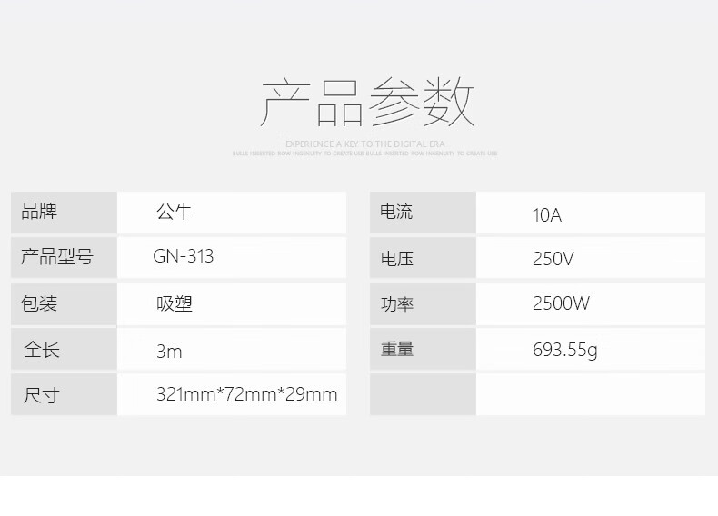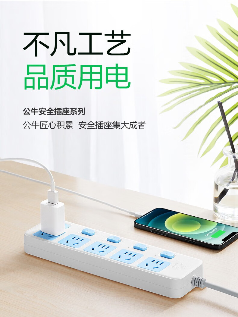 Bull (BULL) prise de commutation alimentation indépendante à 5 positions sous-contrôle nouvelle norme nationale longue ligne multifonction multi-trous carte/rangée de prise bornier bande de traînée domestique cinq positions sous-contrôle GN316-3 mètres