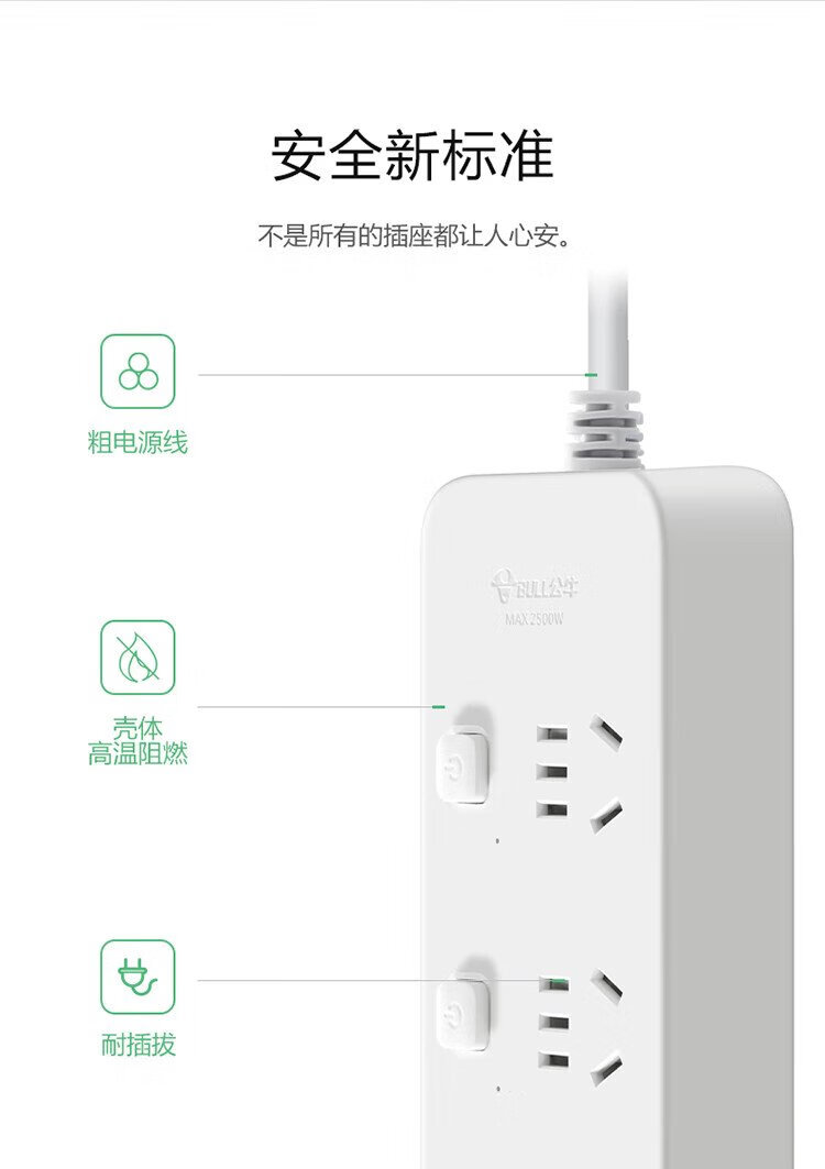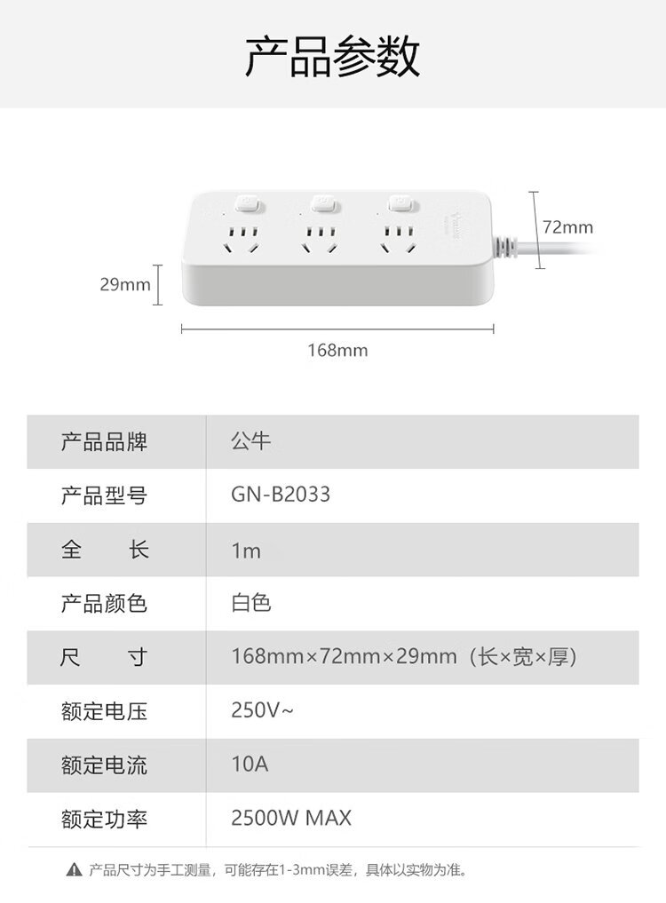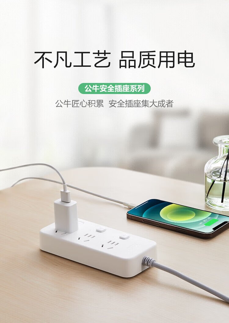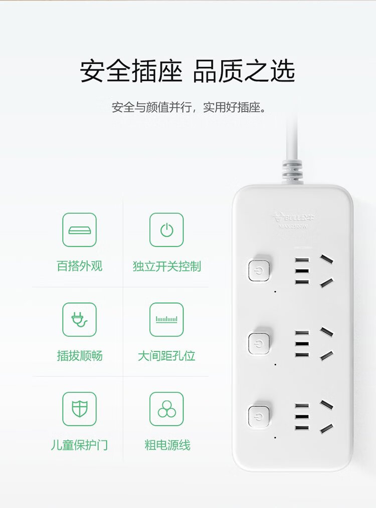 BULL sub-control socket/socket board/socket strip/socket strip/terminal board/pull line board 3C certification 3-position sub-control total length 1 meter independent switch GN-B2033