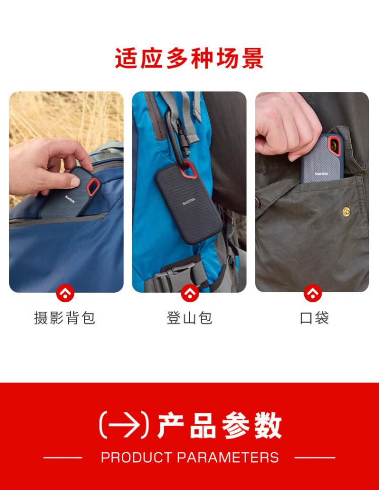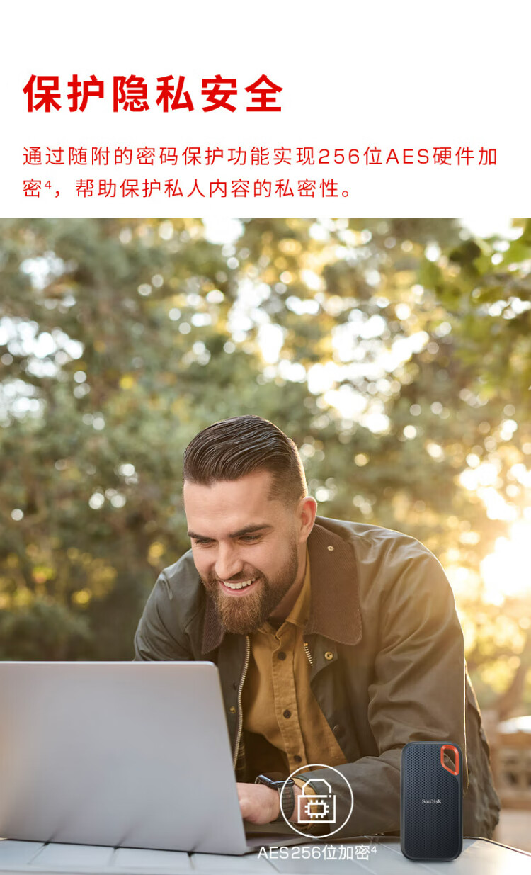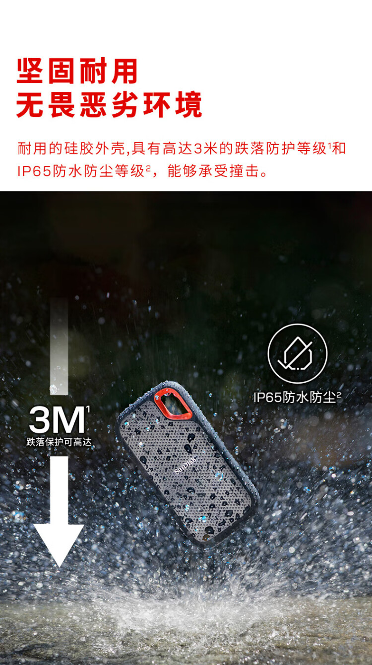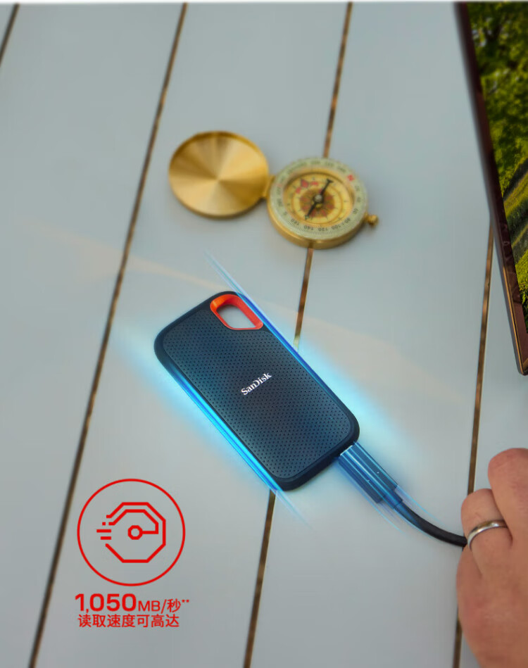 闪迪(SanDisk)2TB Type-c USB3.2 NVMe移动固态硬盘(PSSD)E61卓越版 1050MB/s三防保护 手机笔记本电脑外接SSD