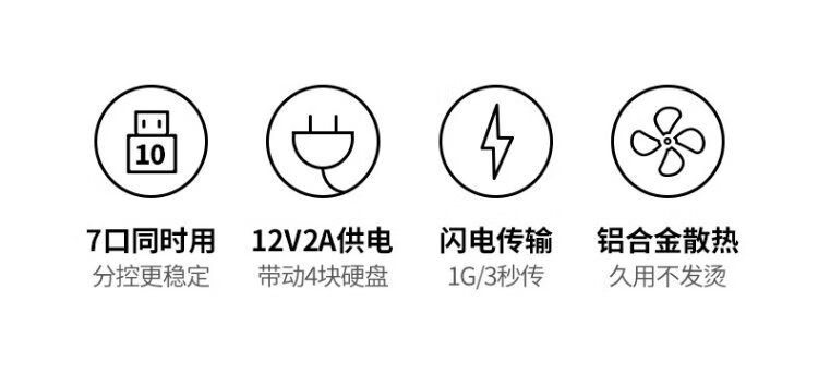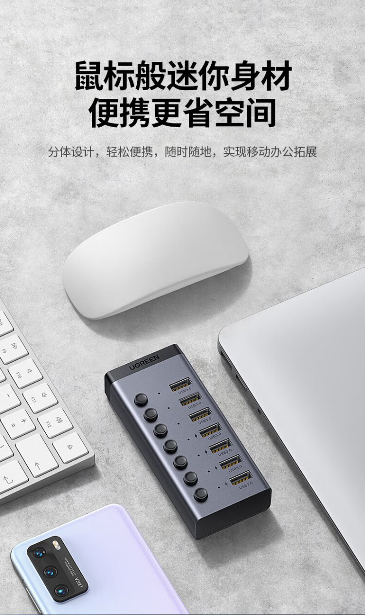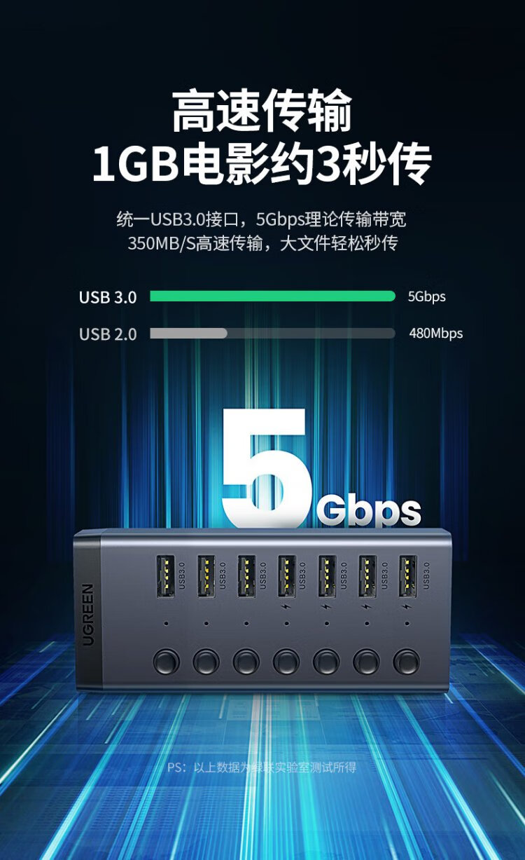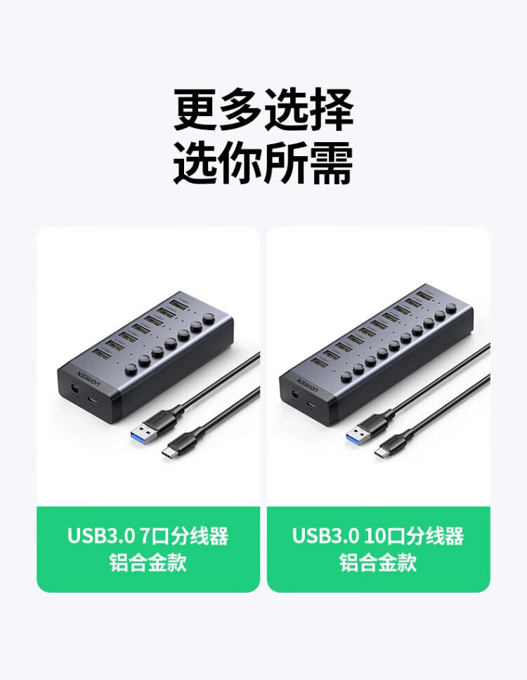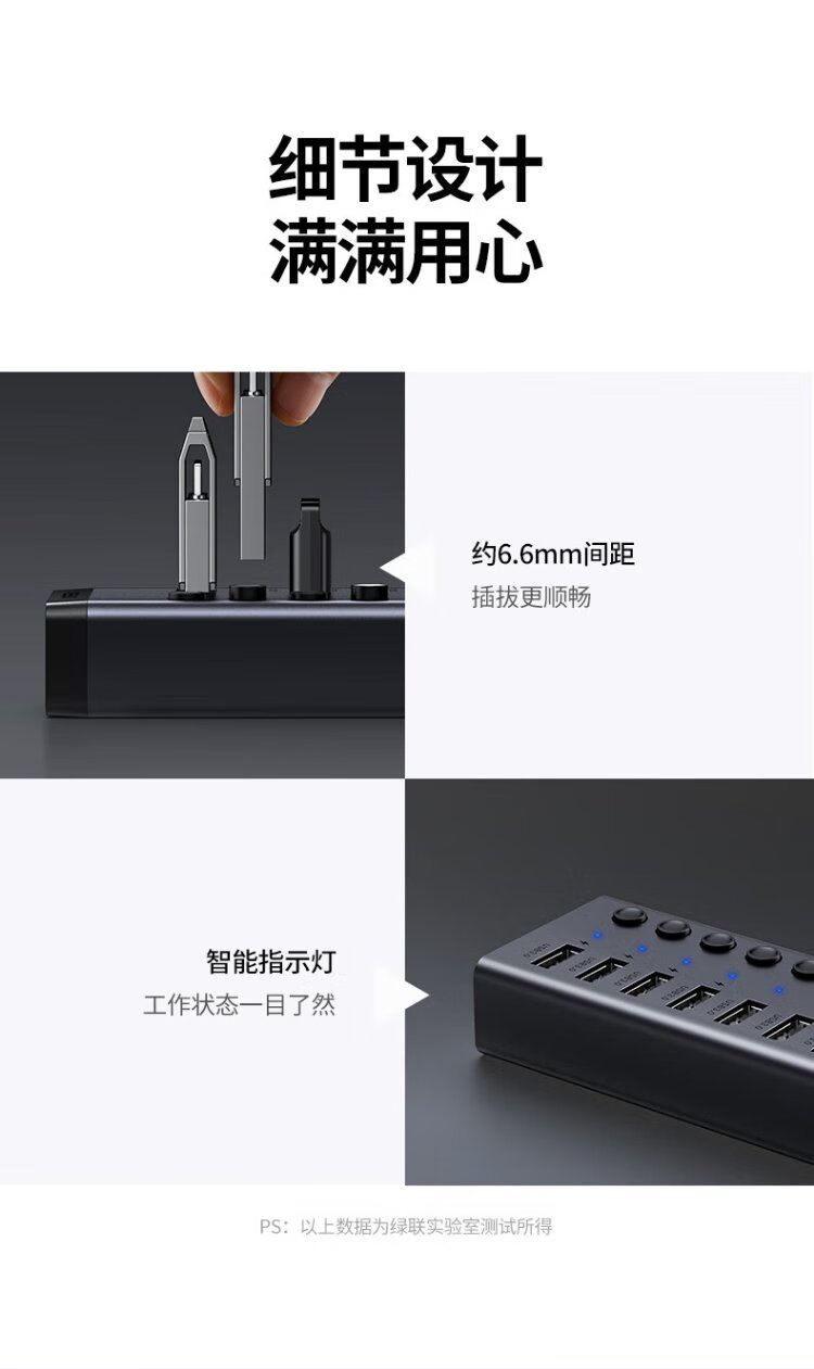 绿联 USB3.0扩展器分线器一拖七口高速扩展坞 笔记本台式电脑接硬盘键鼠HUB延长线拓展坞配12V2A电源