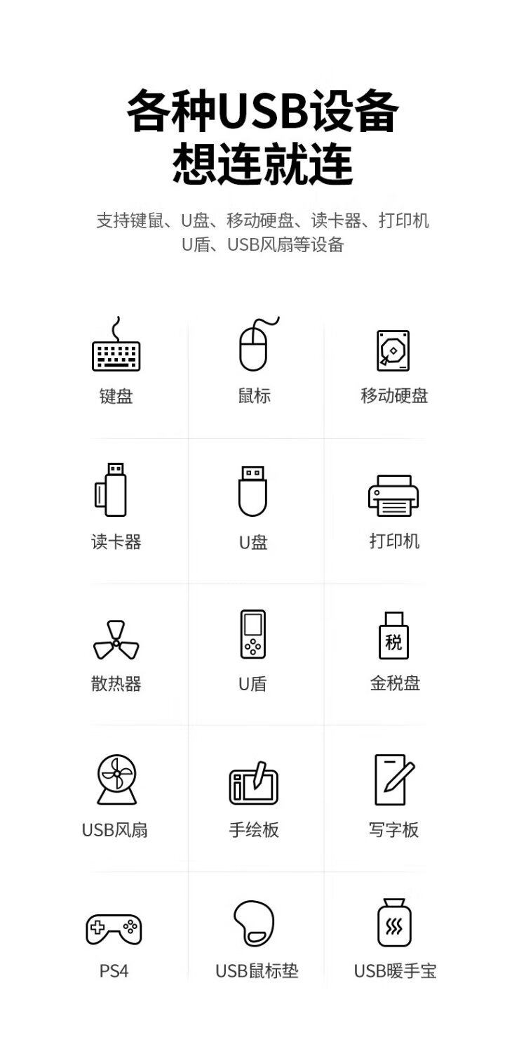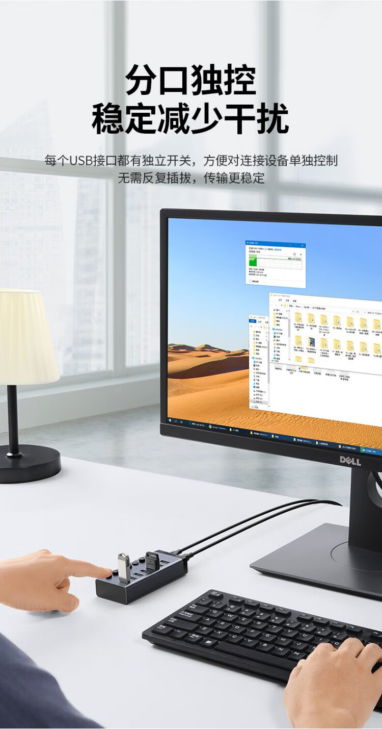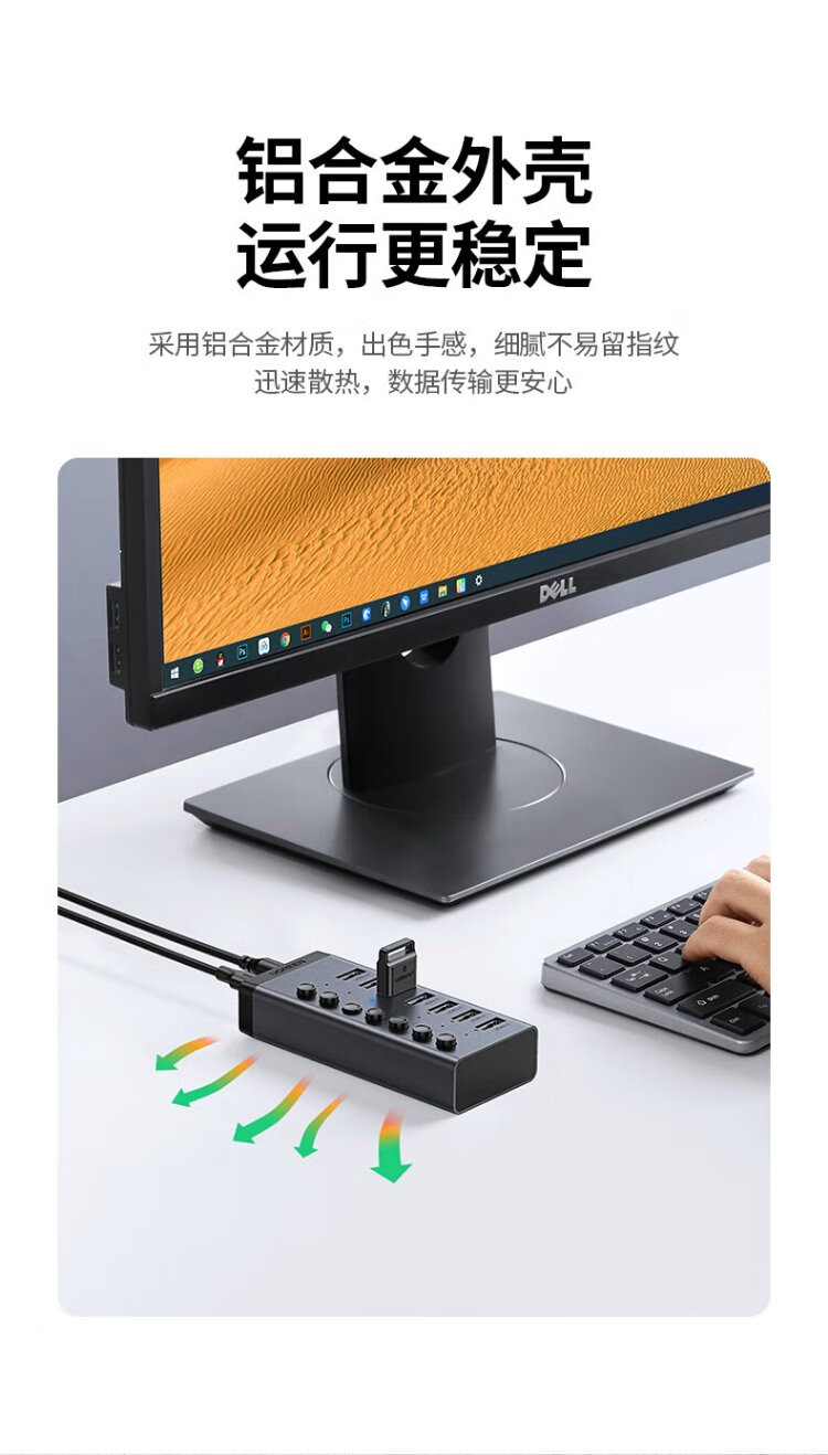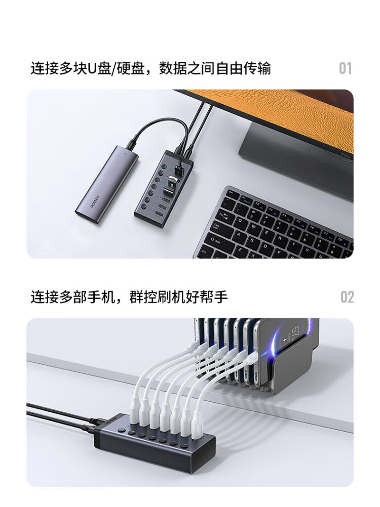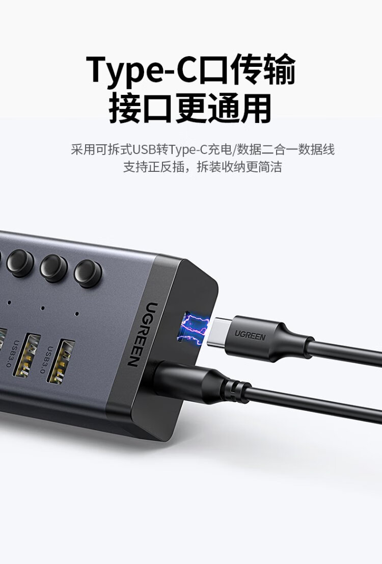 绿联 USB3.0扩展器分线器一拖七口高速扩展坞 笔记本台式电脑接硬盘键鼠HUB延长线拓展坞配12V2A电源