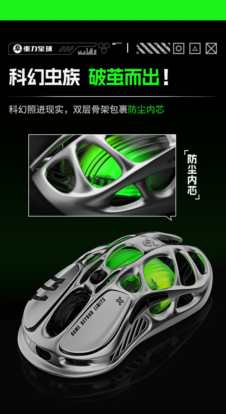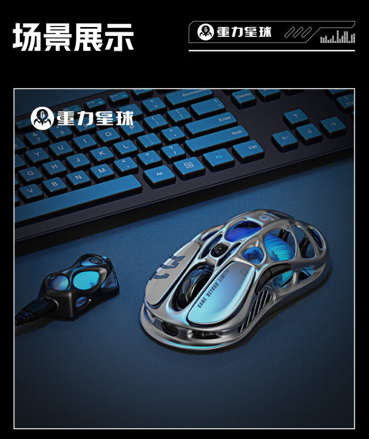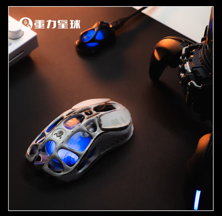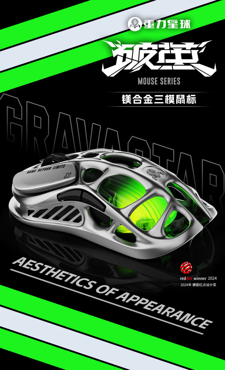 Gravity Planet Breaks the Cocoon Heimmaus, kabellos/kabelgebunden, Bluetooth, E-Sport, Drei-Modus-Gaming-Maus, Magnesiumlegierung, 29 Löcher, leicht, hohl, 3395, langer Akku, Makrotaste, RGB, professionell, Silber