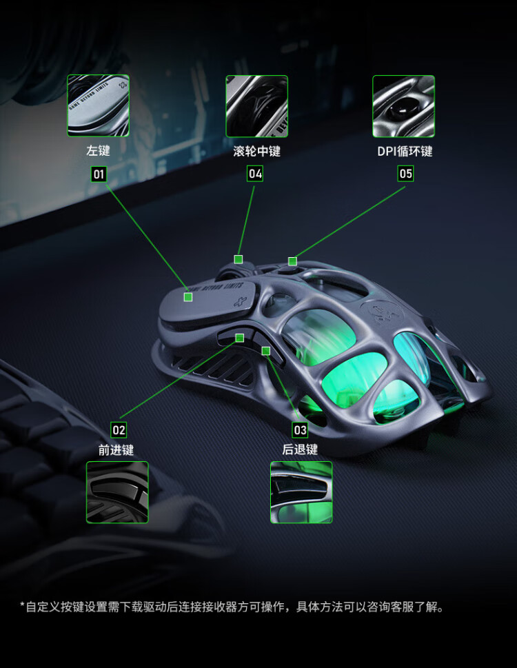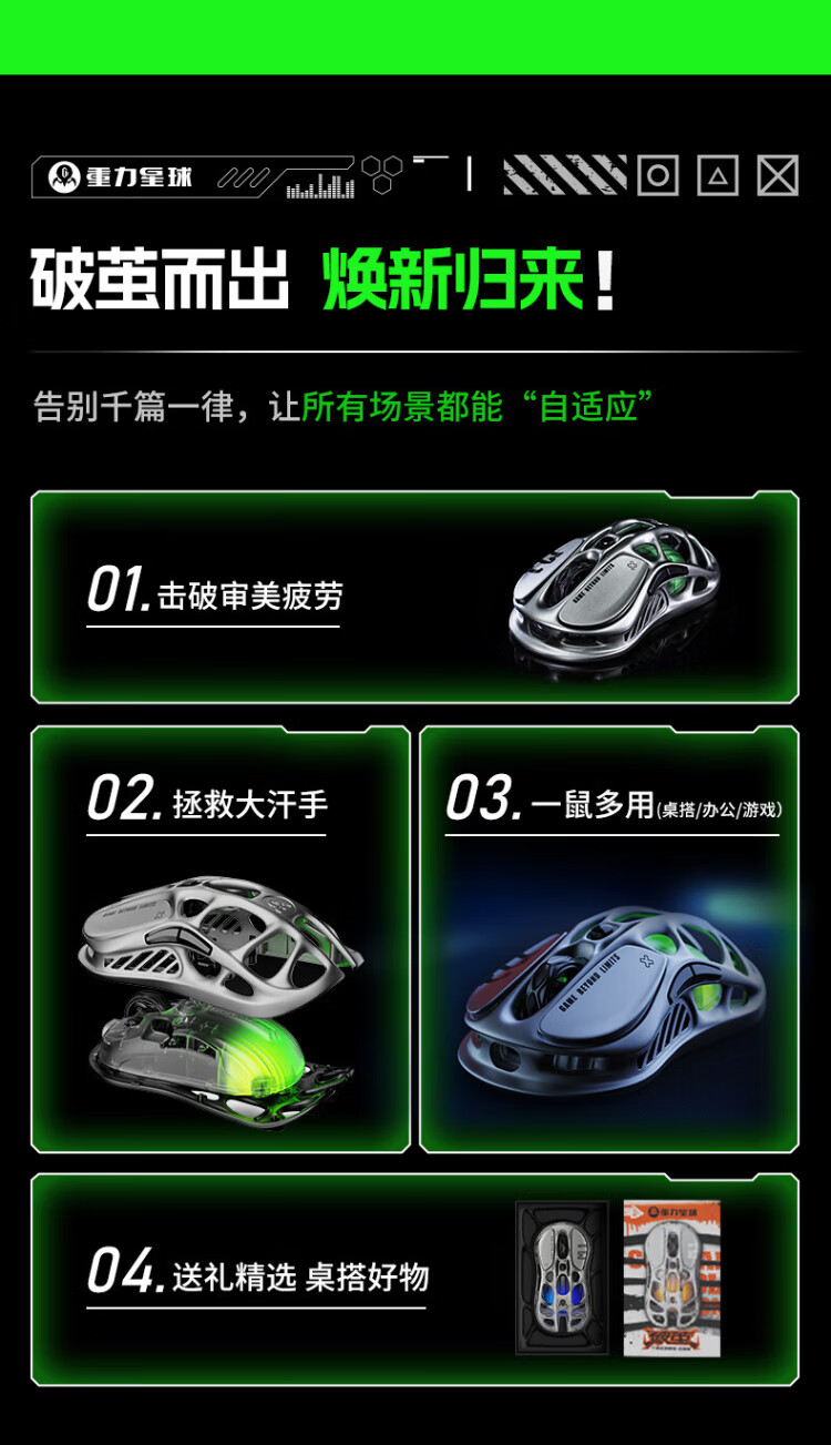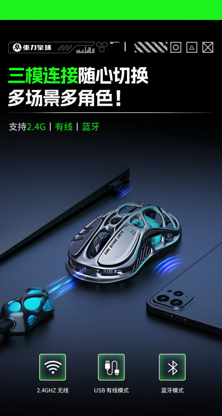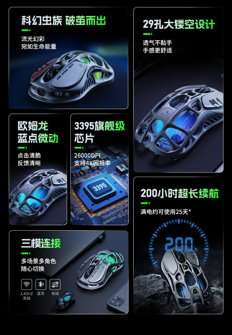 Gravity Planet Breaks the Cocoon Heimmaus, kabellos/kabelgebunden, Bluetooth, E-Sport, Drei-Modus-Gaming-Maus, Magnesiumlegierung, 29 Löcher, leicht, hohl, 3395, langer Akku, Makrotaste, RGB, professionell, Silber